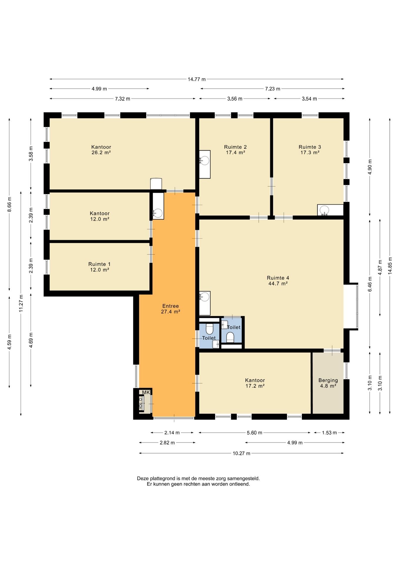 - Oppervlakte kantoor ca. 128 m2