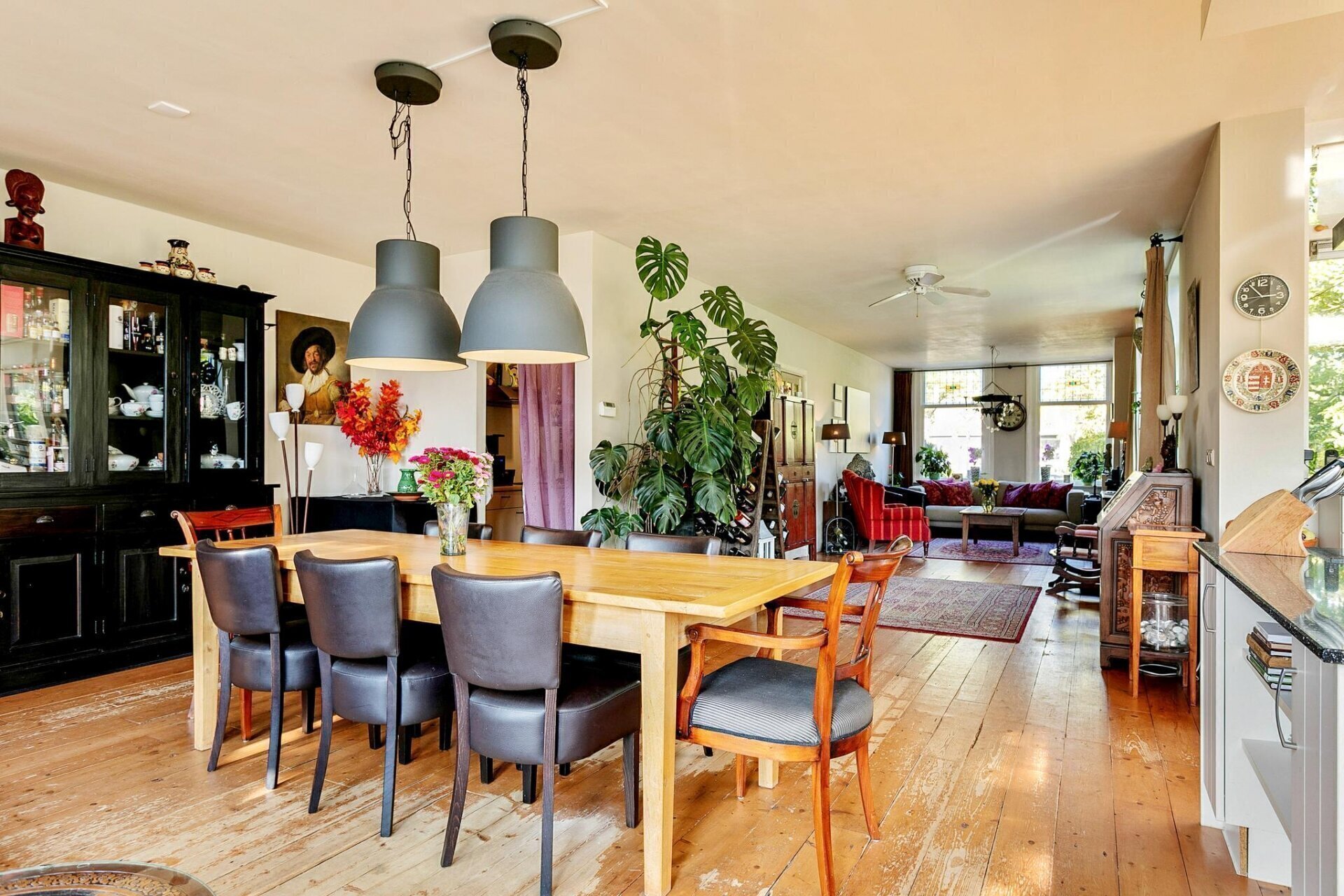 Imposante intreden met veel originele details zoals het “Melkmeisjes kozijn” met origineel glas in lood, het trappenhuis welk u toegang geeft nar de etage en tot de ruimtes op de begane grond. woning waaronder het toilet, de kelder en woonkamer.