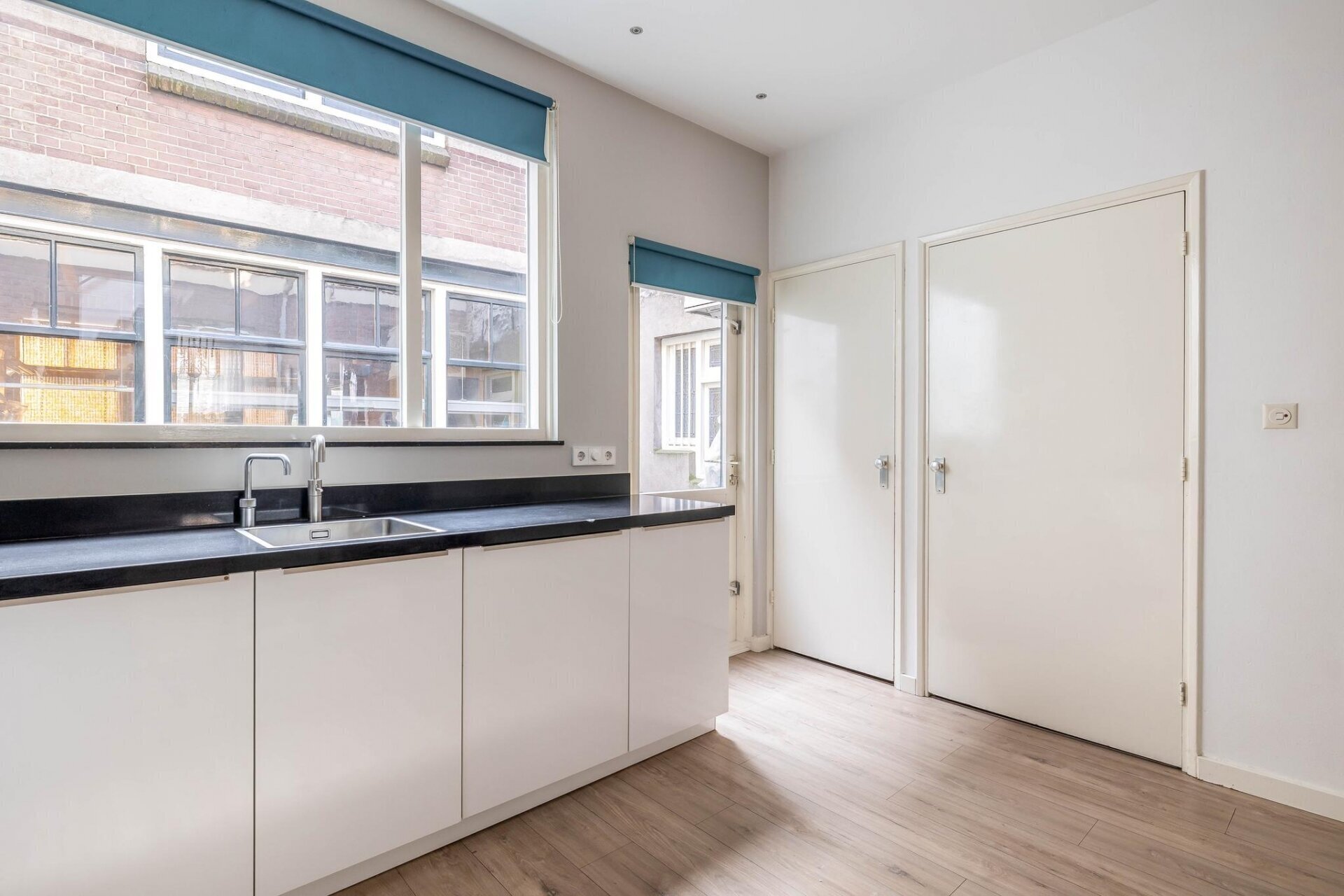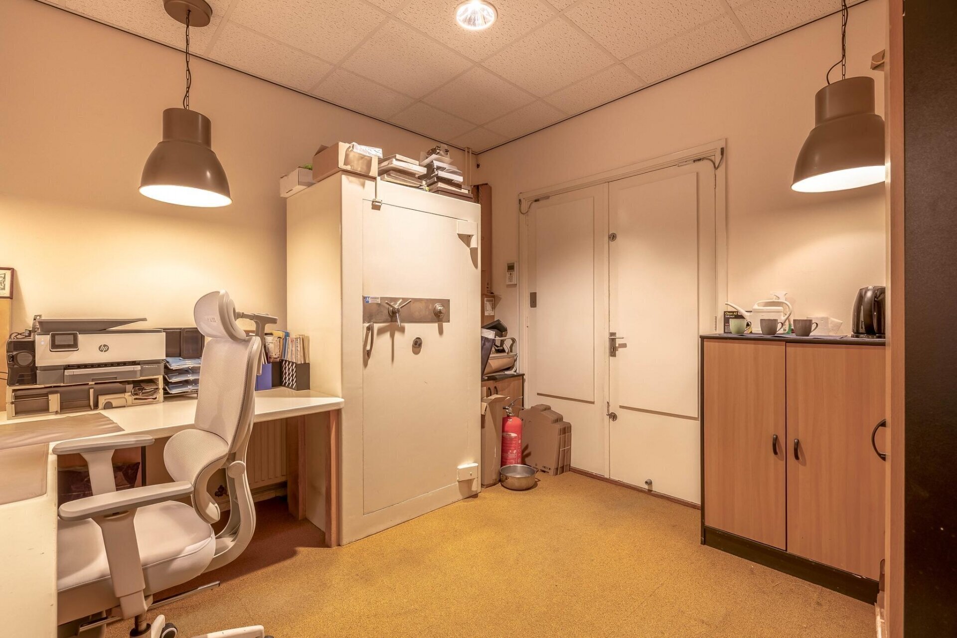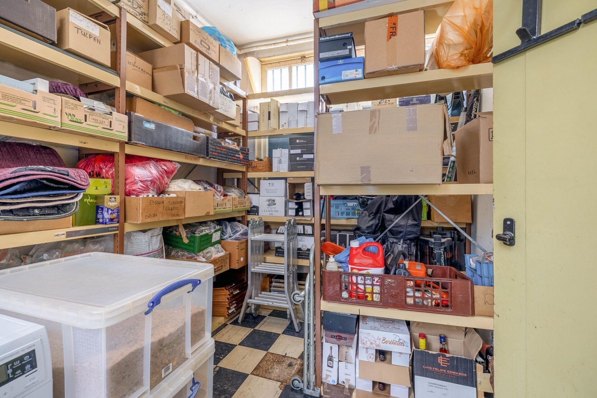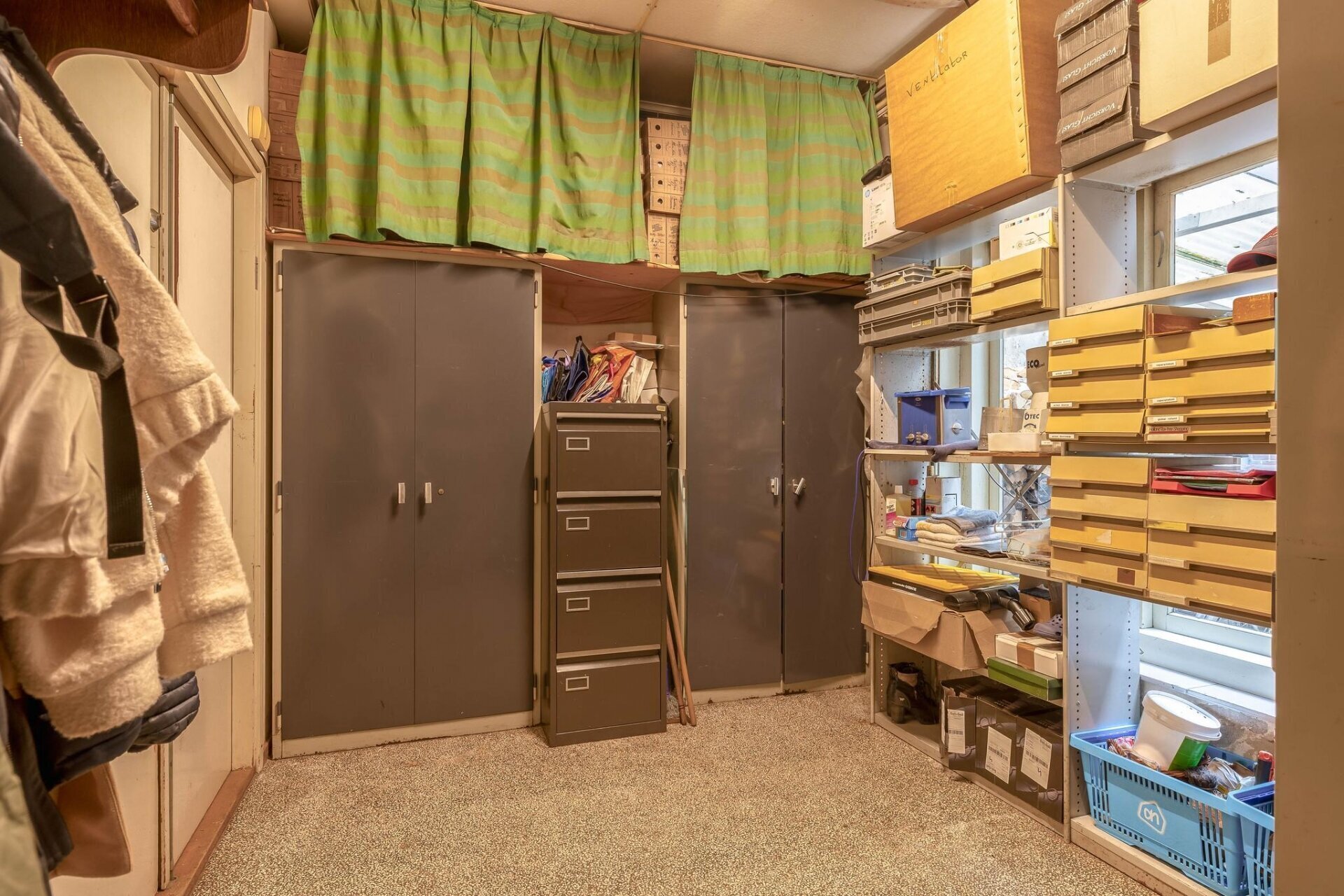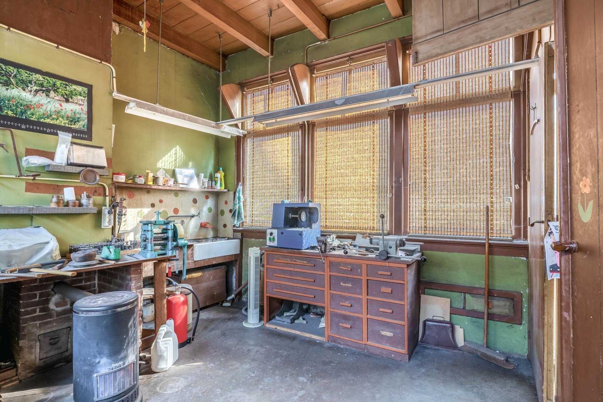 Werkkamer met vaste kasten. Het achterhuis is nog niet gemoderniseerd en biedt volop potentie: denk aan het creëren van een zelfstandig appartement, een B&B, werkruimte of extra slaapkamers. Het kan eventueel intern worden verbonden met het voorhuis.