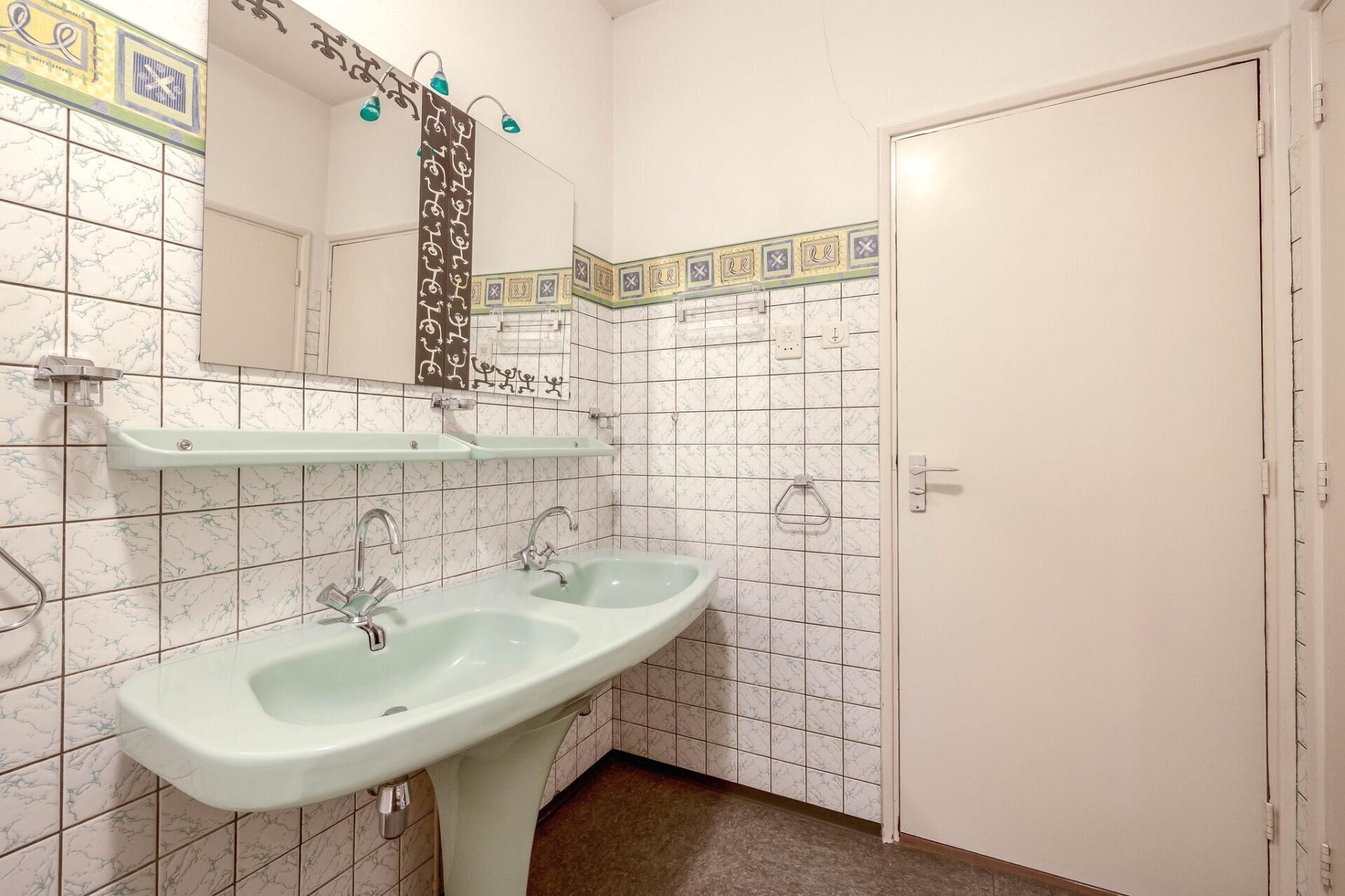 Verder beschikt het object over een toilet en een trapopgang naar het voorhuis. Via een separate achteringang is een tweede hal bereikbaar, eveneens met granito-vloer, met toegang tot het achterhuis. De voormalige keukenruimte wordt momenteel gebruikt als berging en bevat nog een origineel keukenblok met warm en koud stromend water (close-in boiler).