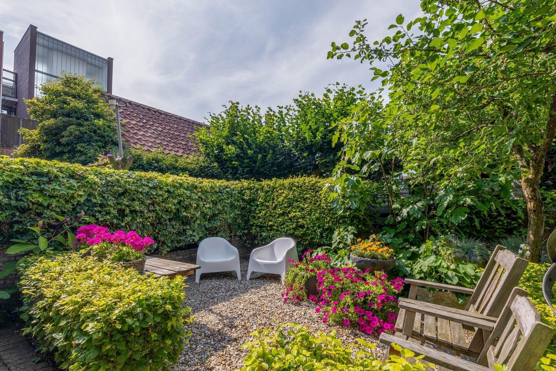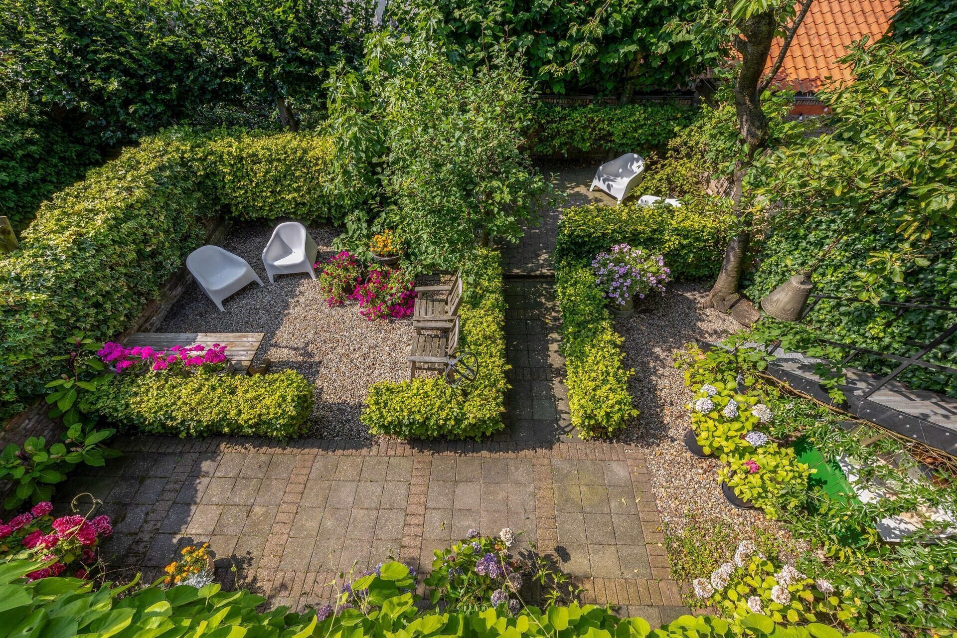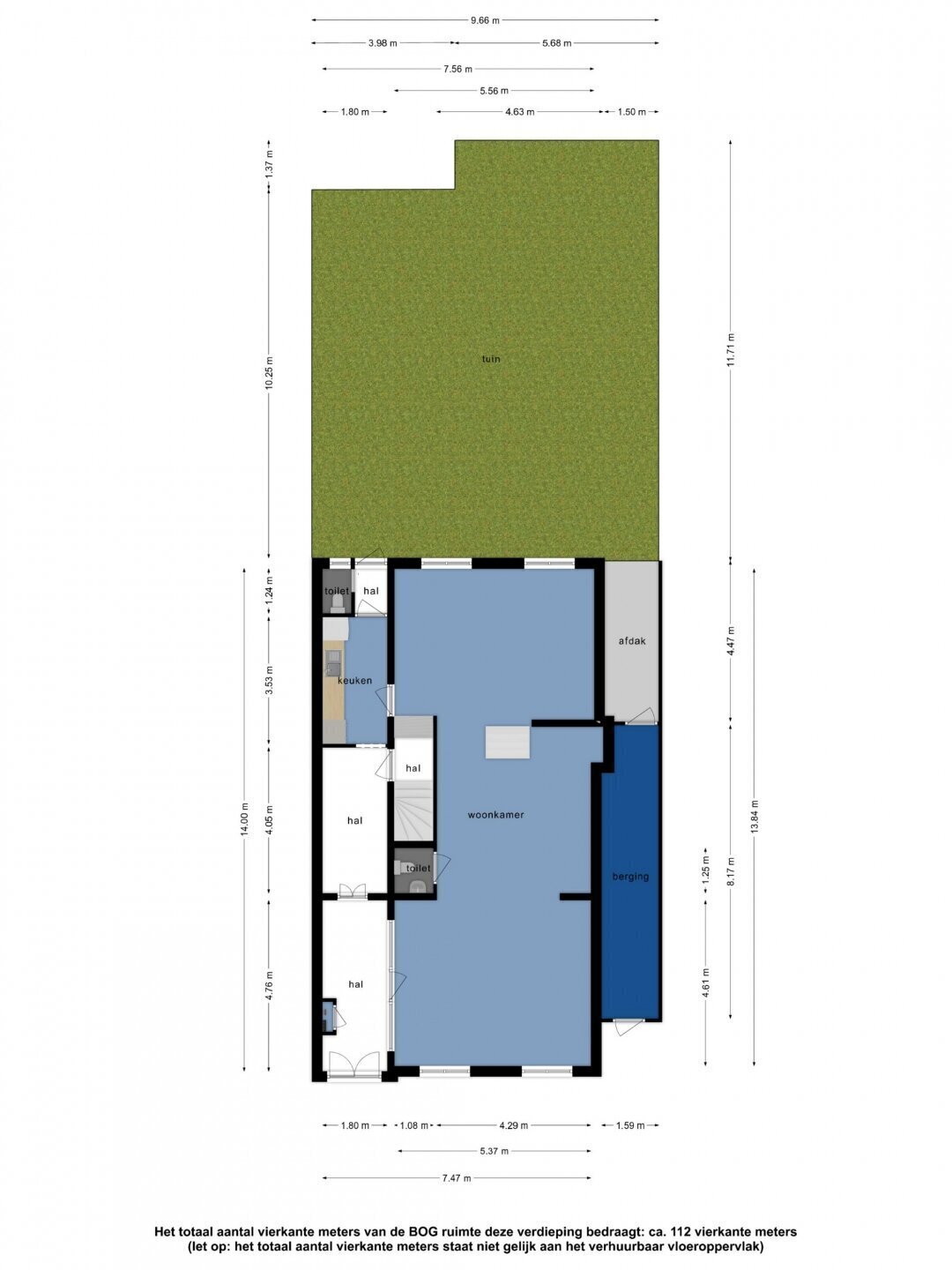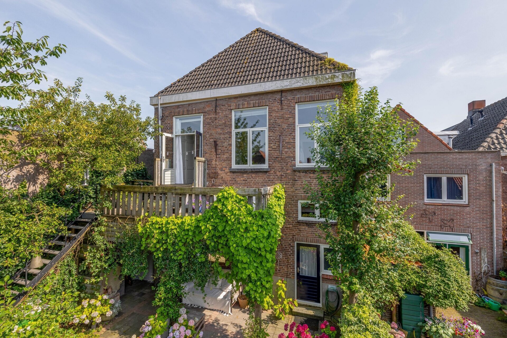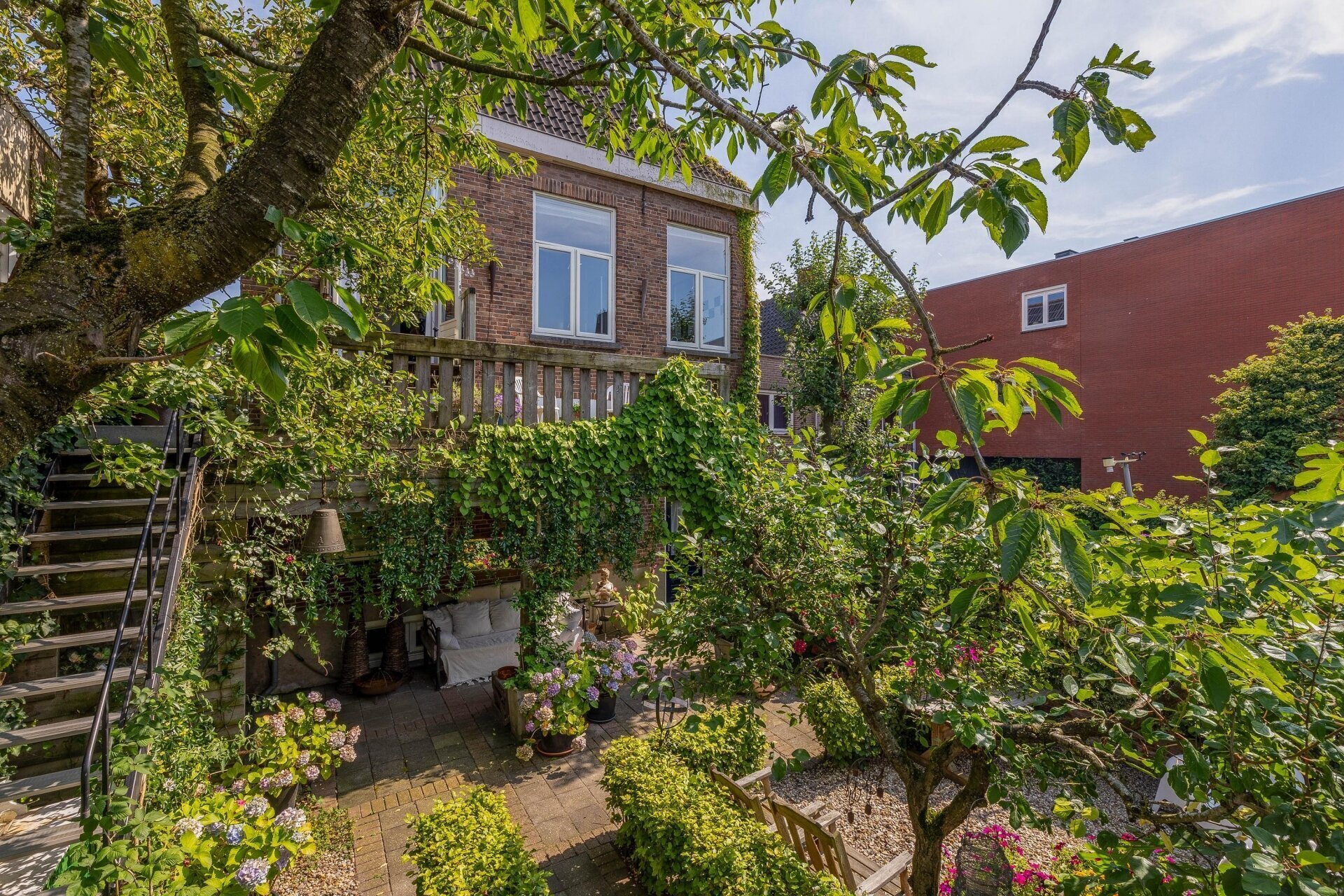 - Achtertuin van ca. 113 m² op noordwesten met achterom;