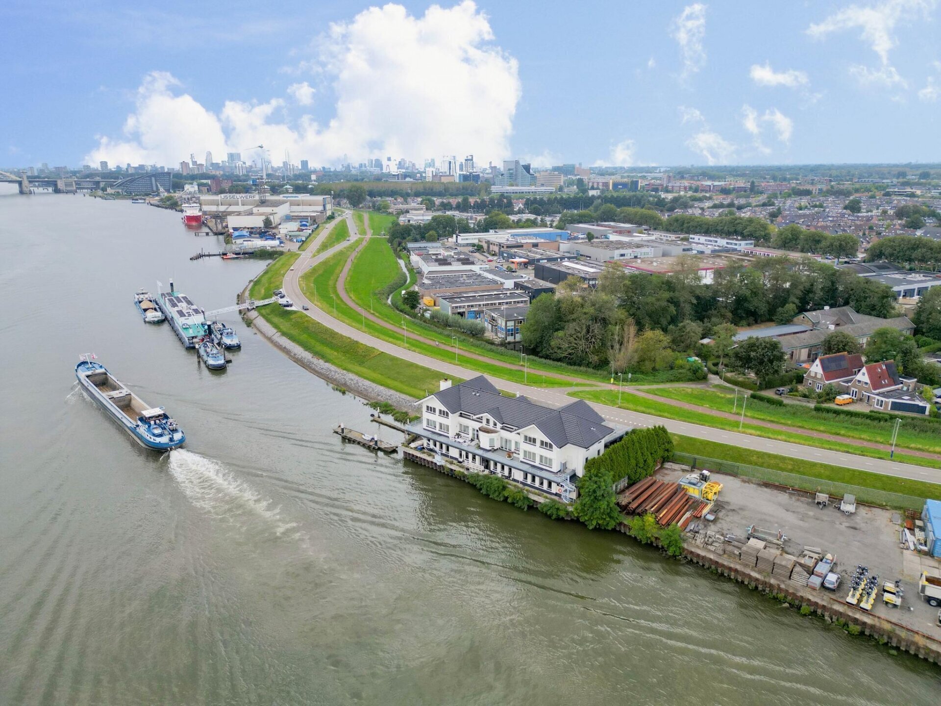 De watertaxi meert af aan de privé steiger van deze kantoorvilla en brengt u binnen 10 minuten naar hartje Rotterdam. Er stopt een bus voor de deur en de oprit A16 is binnen 3 minuten bereikbaar. Tevens is er een klein winkelcentrum op loopafstand welke in uw dagelijkse boodschappen kan voorzien. De bovenverdieping wordt bewoond door de eigenaar. Naastgelegen zijn er nog een tweetal kantoren welke thans zijn verhuurd. Optioneel kunt u een ligplaats separaat bij huren zodat de mogelijkheid bestaat om samen met uw relaties te genieten van de prachtige omgeving van de Rotterdamse Havens.