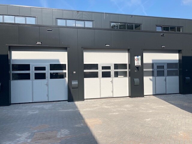 - elektrische bediende geïsoleerde sectionaaldeur (3.2 m1 b. x 3.6 m1 h.) met loopdeur;