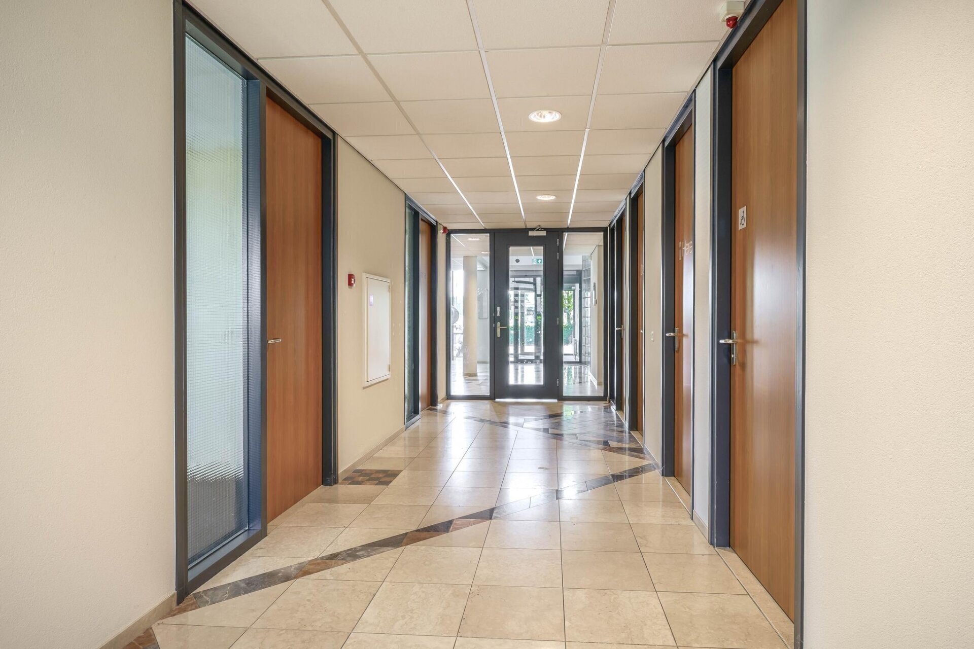 Het entreegebied van het gebouw is gemeenschappelijk met de gebruiker van de 1e en de 2e verdieping.