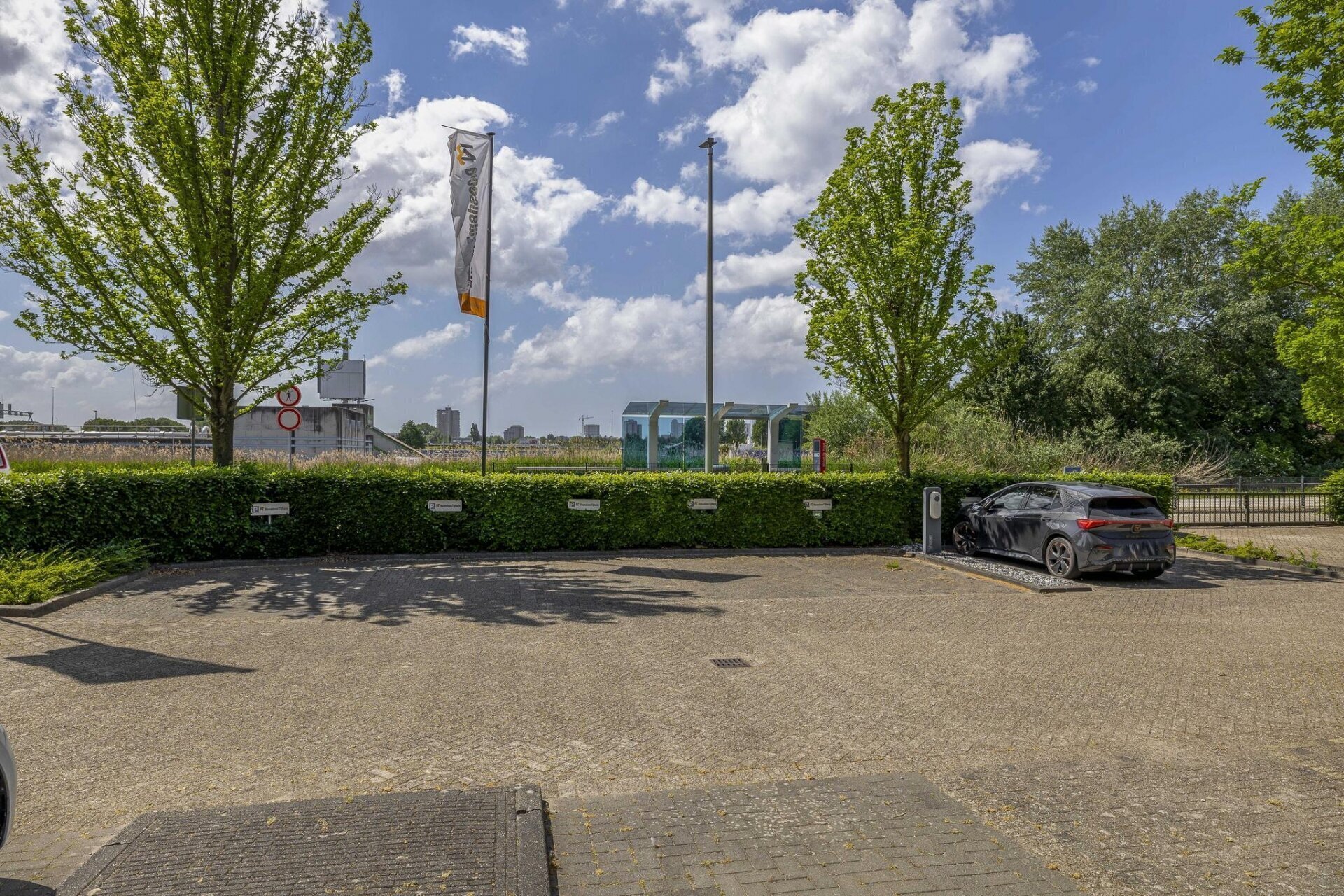 Op eigen terrein zijn 8 parkeerplaatsen beschikbaar, waarvan een deel met laadpalen voor elektrische voertuigen.