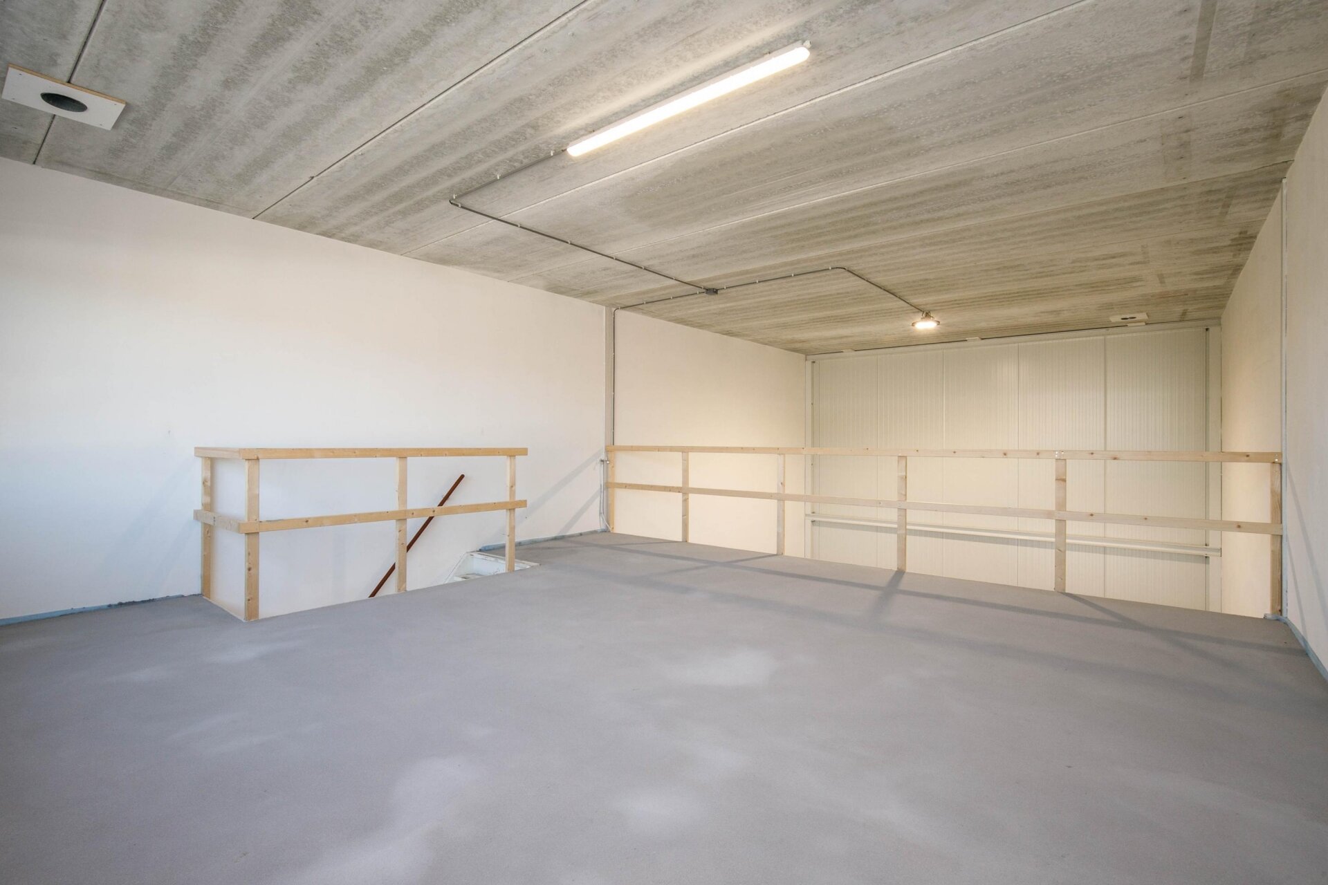 - monoliet afgewerkte betonvloer met een maximale vloerbelasting van 2.000 kg/m², de verdiepingsvloer heeft een
