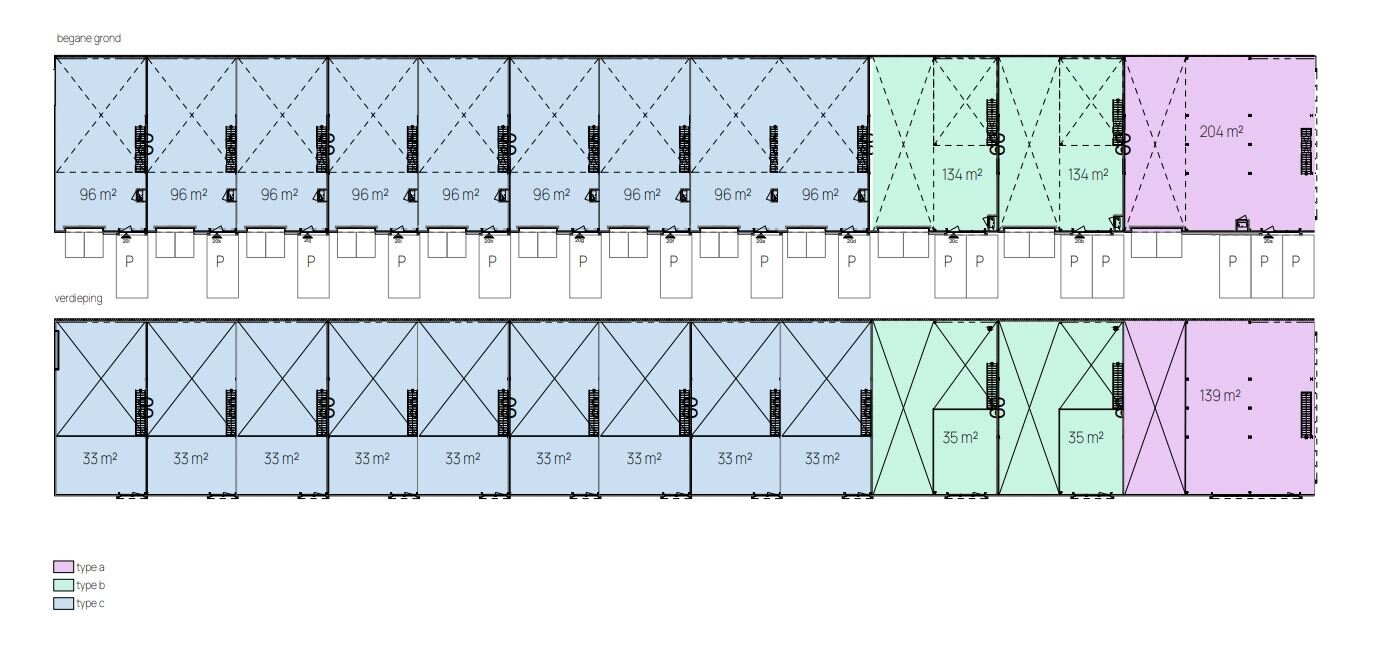 De bedrijfsunit heeft een totale oppervlakte van circa 129 m², verdeeld over twee bouwlagen, waarvan circa 96 m² op de begane grond en circa 33 m² op de verdiepingsvloer aan de voorzijde van het pand zijn gesitueerd. Daarnaast beschikt de unit over circa 40 m² buitenterrein, inclusief parkeerplaats. De ruimte is voorzien van een elektrische overheaddeur, een afgewerkte verdiepingsvloer, krachtstroom, basis elektra-aansluitingen, verlichting en een toilet. De indeling is flexibel en biedt ruimte voor uiteenlopende bedrijfsactiviteiten.