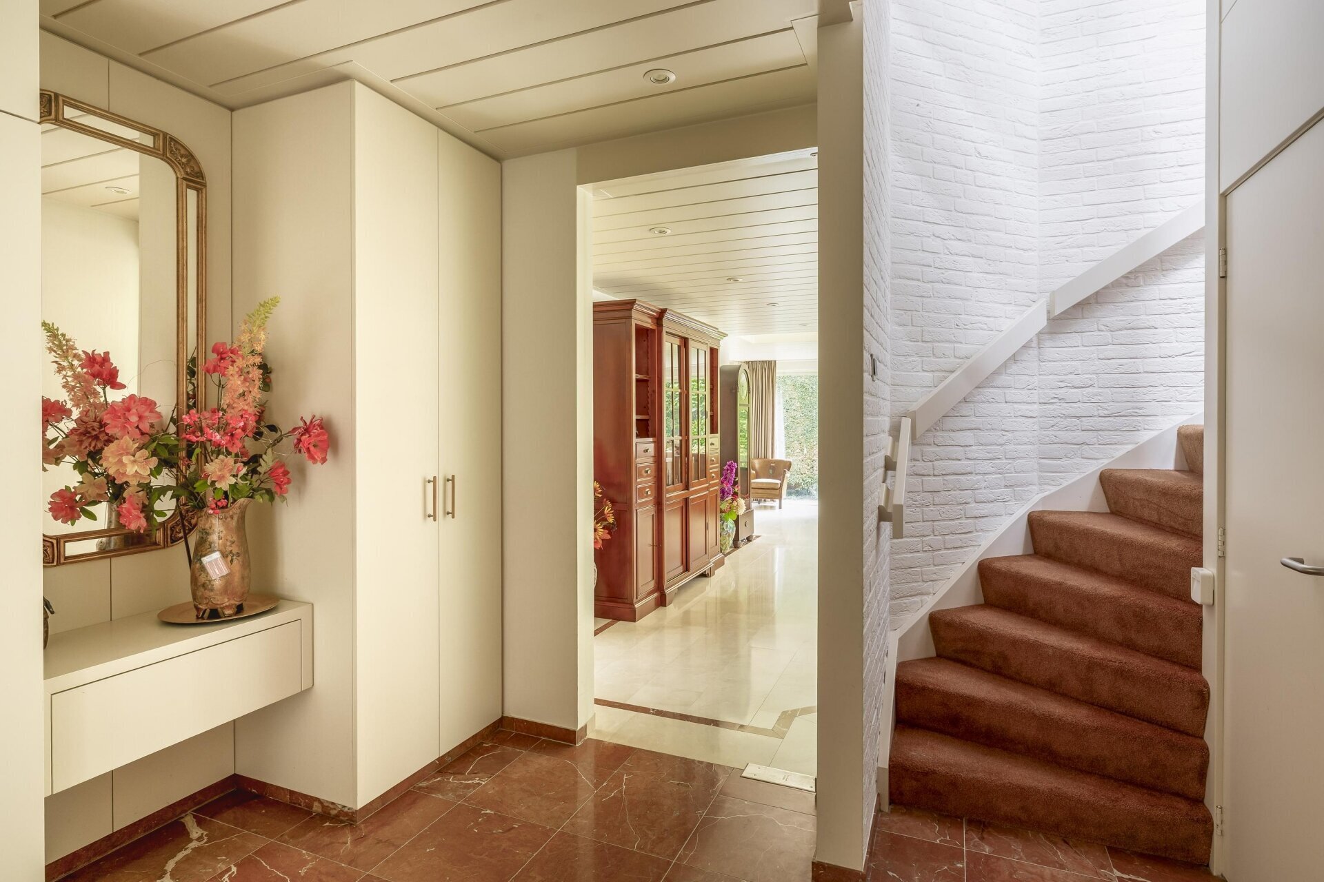 Je komt binnen via een overdekte entree in een royale hal met directe doorgang naar de woonkamer.