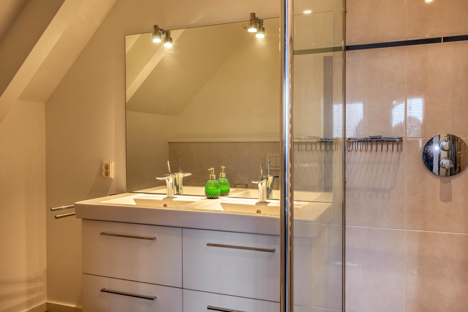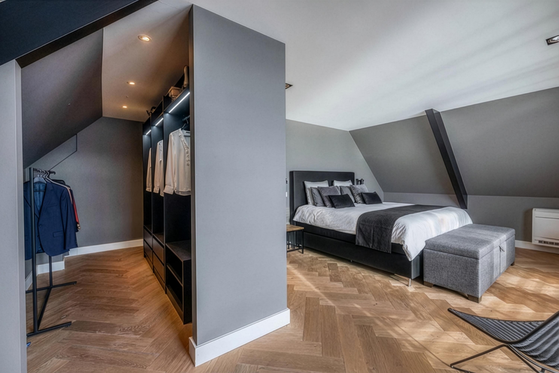 De villa beschikt over drie zeer royale slaapkamers, verdeeld over de verdiepingen. Elke slaapkamer heeft een eigen luxe badkamer en een inloopkast. Dit zorgt voor optimaal comfort en privacy, zowel voor bewoners als gasten. De grootste slaapkamer is een echte suite, met ruimte, rust en een fraai uitzicht over het water. De badkamers zijn stijlvol afgewerkt en van alle gemakken voorzien, waardoor het gevoel van een luxe hotel hier elke dag aanwezig is.