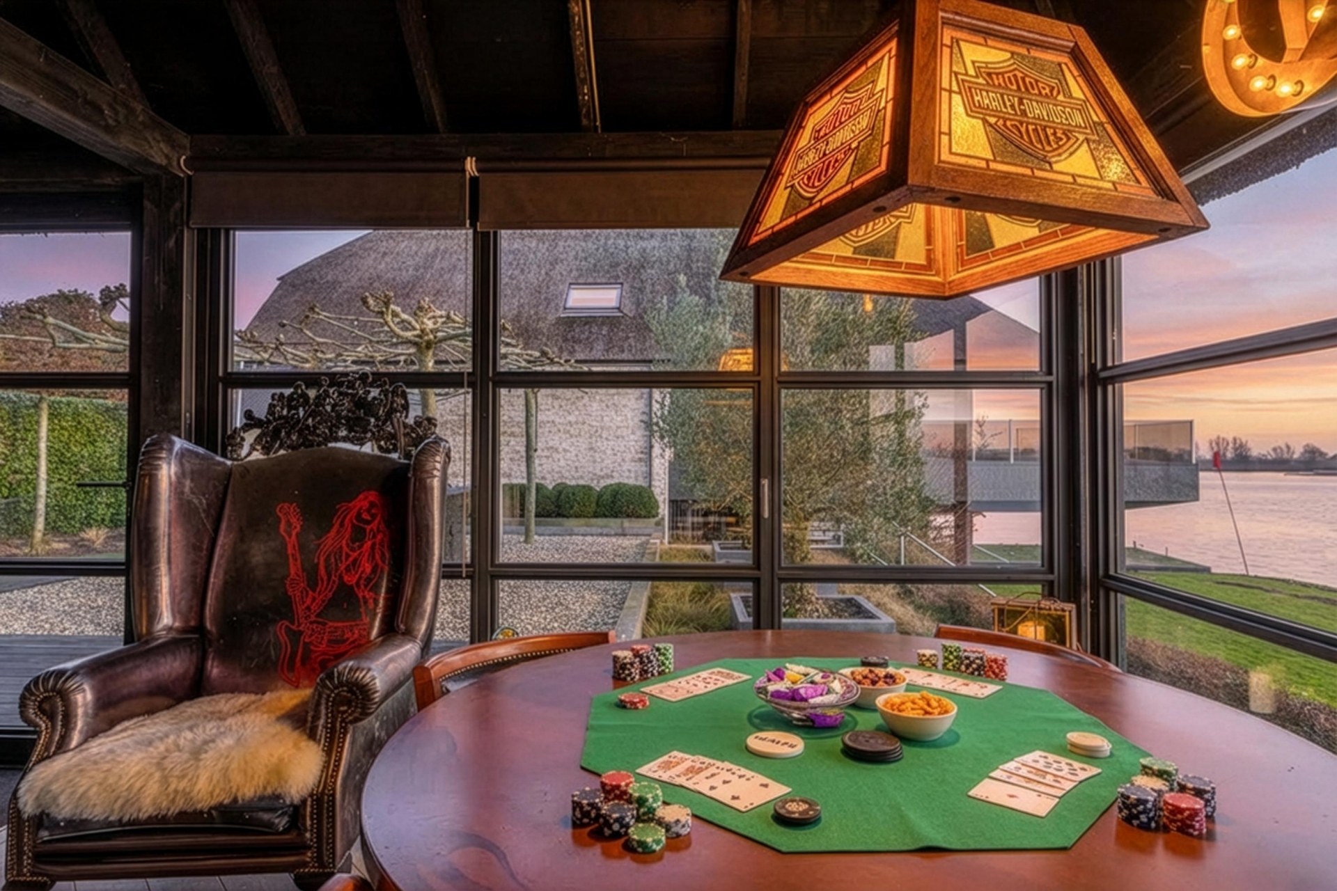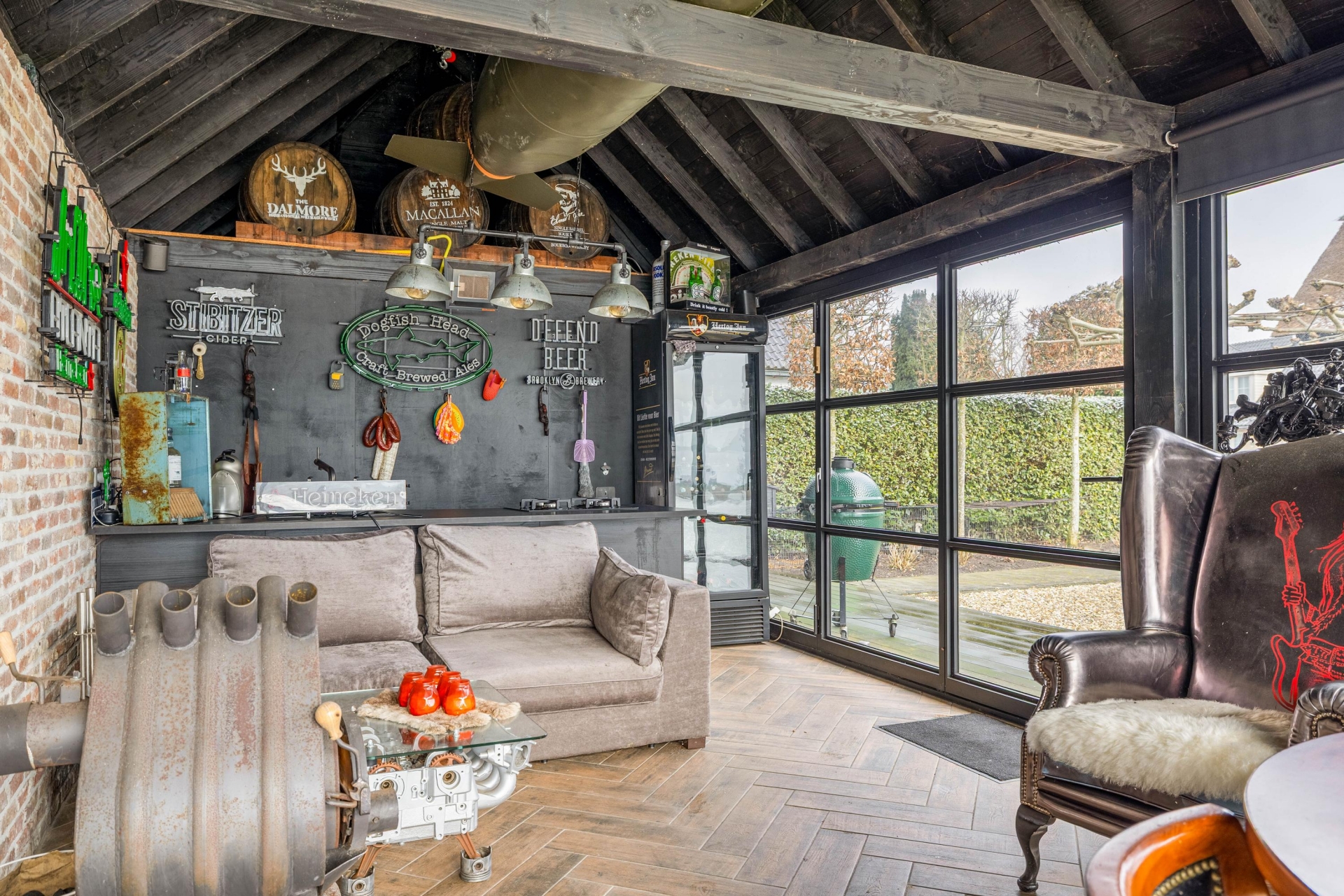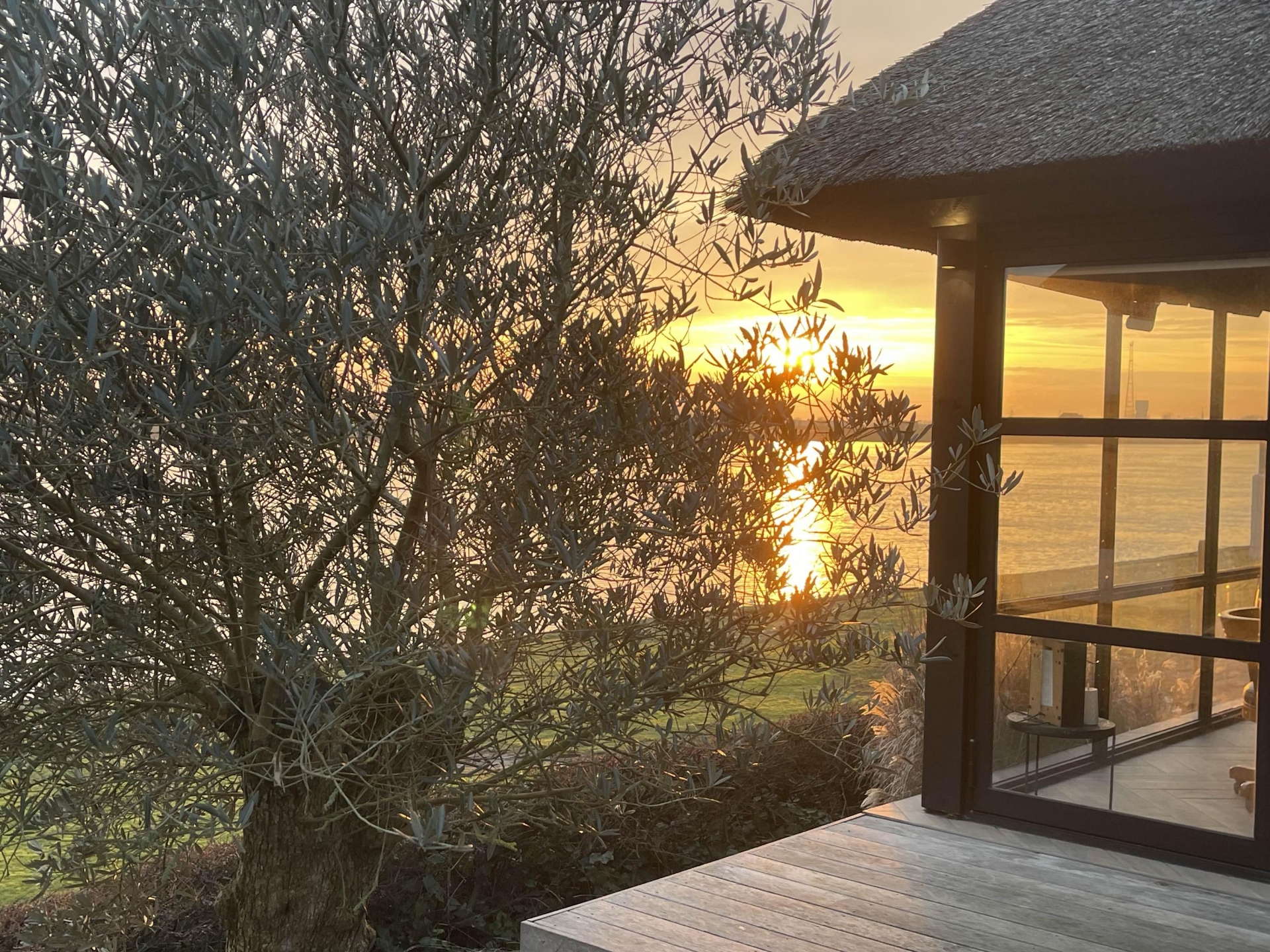 De tuin rondom de villa is met zorg aangelegd en biedt meerdere plekken om van het buitenleven te genieten. Absoluut hoogtepunt is het nieuwe buitenverblijf met bar en open haard. Hier zit je beschut en sfeervol, ook wanneer de avonden langer worden en de temperatuur daalt. Dit is de plek voor lange diners, borrels met vrienden en ontspannen momenten met uitzicht op de Lek.