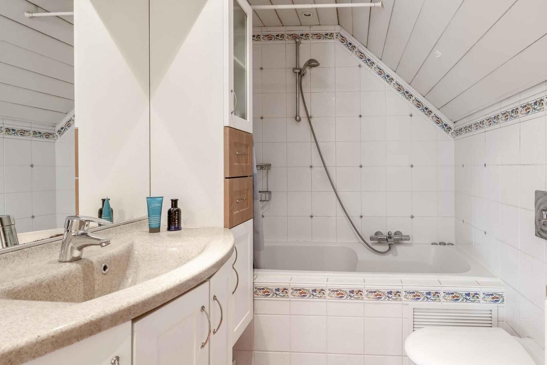 De verdieping biedt daarnaast nog een tweede badkamer en een praktische hobbyruimte of werkplek. Via een vaste trap bereik je de tweede verdieping: een verrassend ruime zolderverdieping met sauna, extra berging en hobbyruimte. Hier zijn nog extra (slaap)kamers mogelijk!