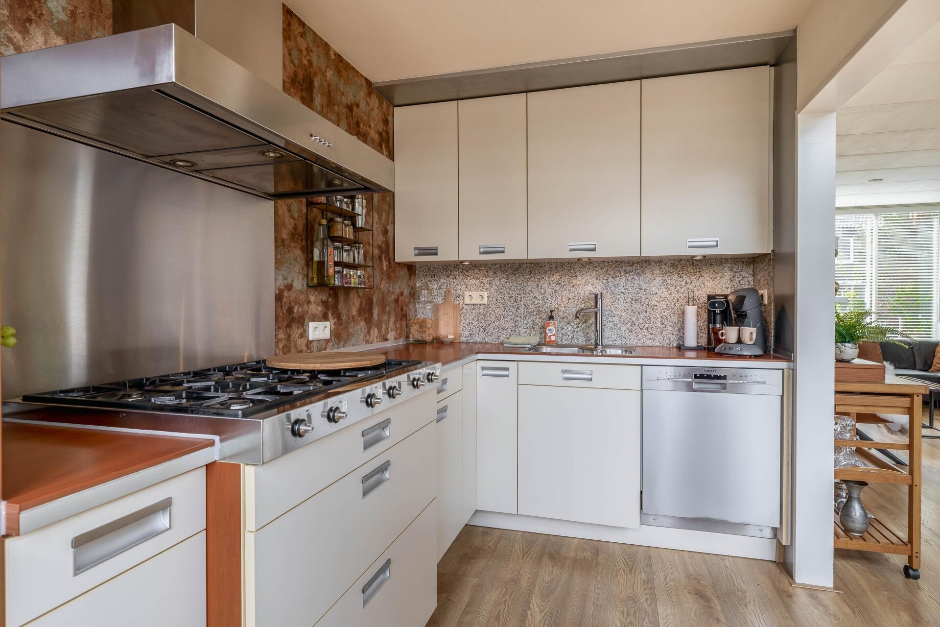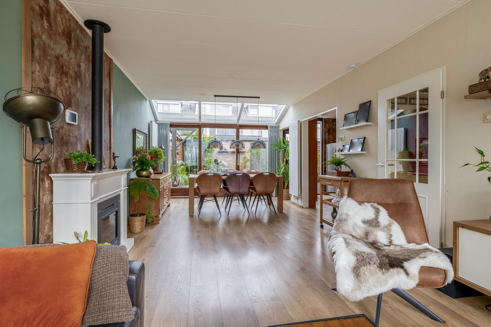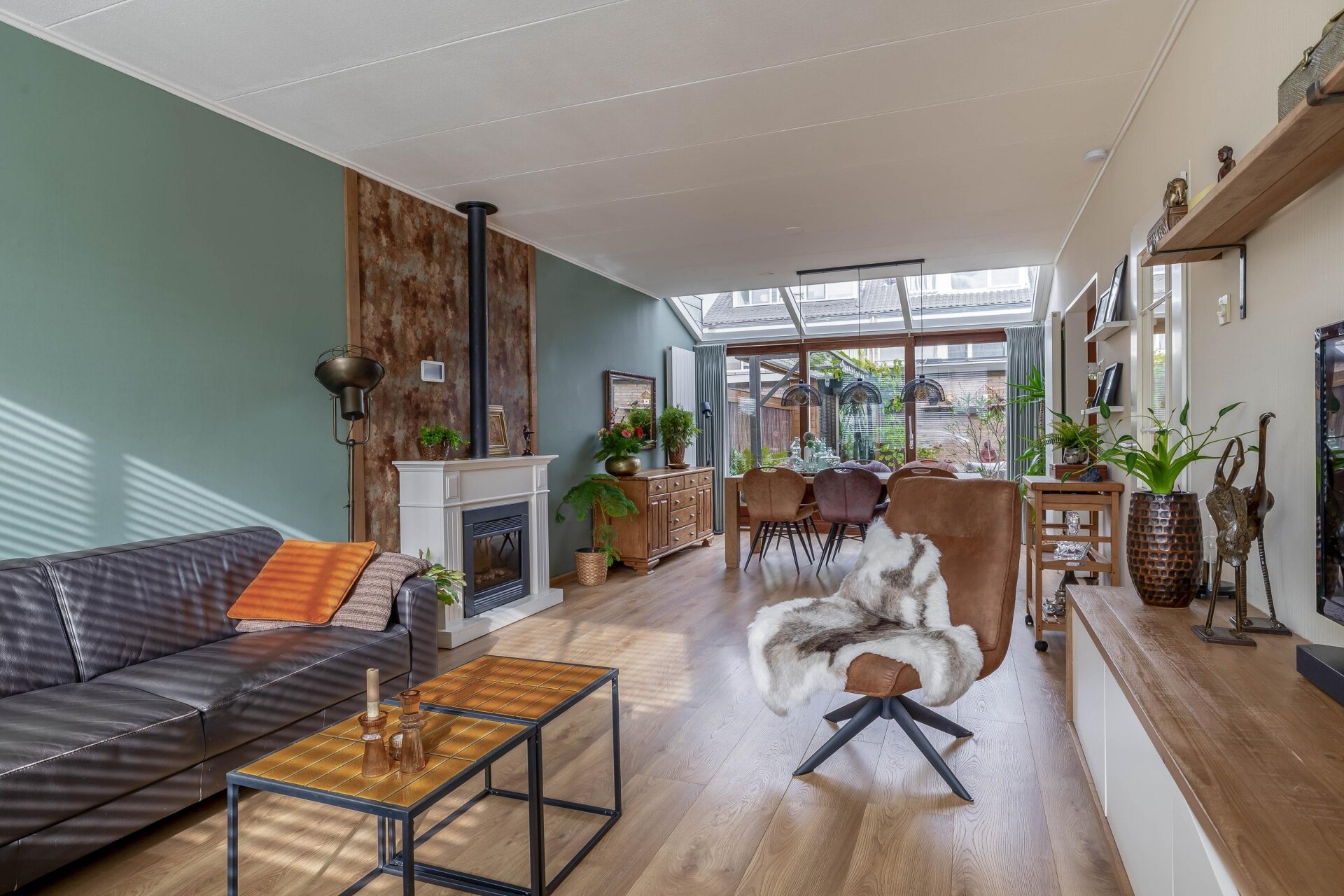 Binnenkomen voelt meteen goed. Dankzij de uitbouw met lichtstraten aan de achterzijde heeft de ruime living van 32 m² veel natuurlijk daglicht. De woonkamer is royaal opgezet, met plek voor een fijne zithoek én grote eettafel. De open sfeer, gecombineerd met de warme vloer en de tuingerichte ligging, maakt dit een heerlijke plek om te ontspannen of gezellig samen te komen.