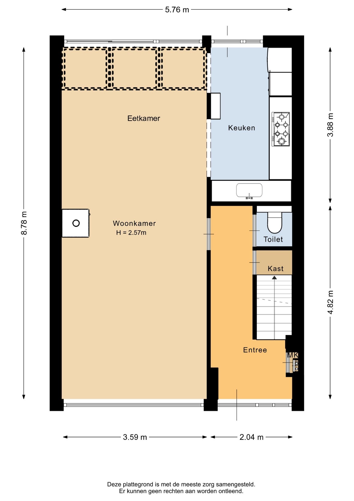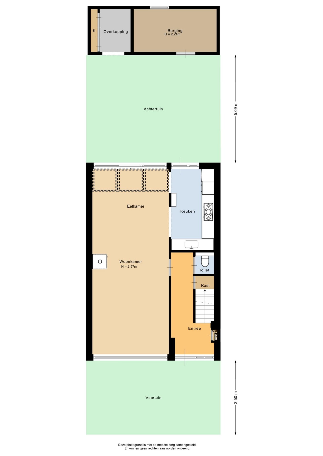 “Deze informatie is door ons met de nodige zorgvuldigheid samengesteld. Onzerzijds wordt echter geen enkele aansprakelijkheid aanvaard voor enige onvolledigheid, onjuistheid of anderszins, dan wel de gevolgen daarvan. Alle opgegeven maten en oppervlakten zijn indicatief.”