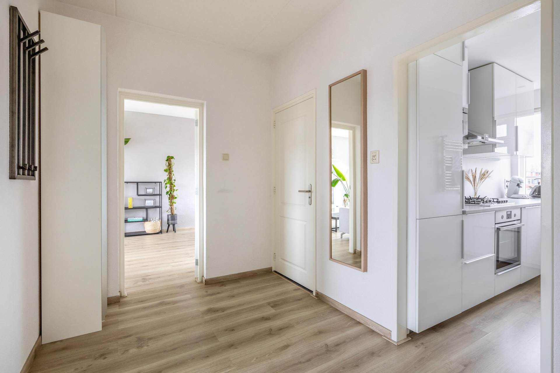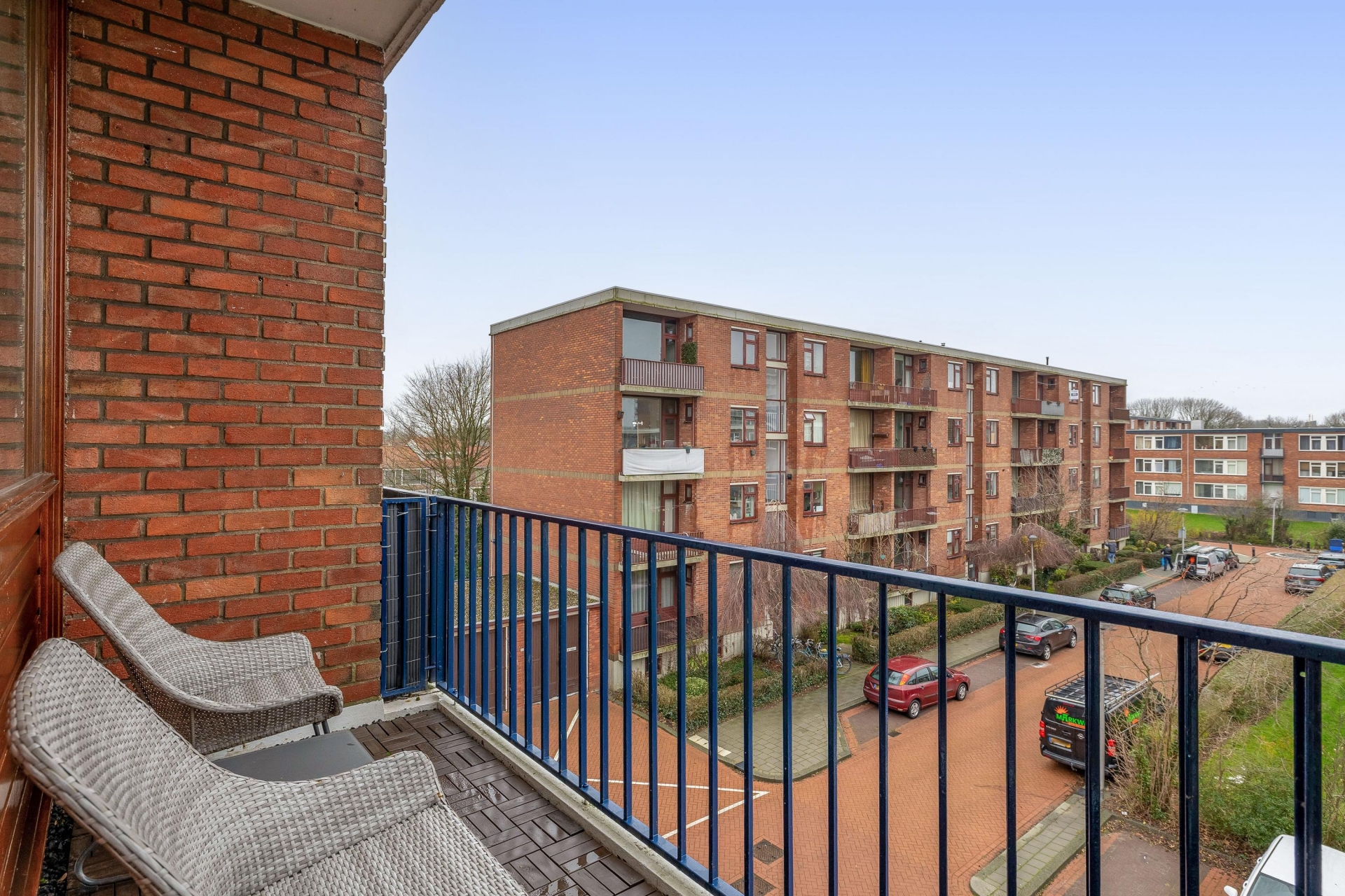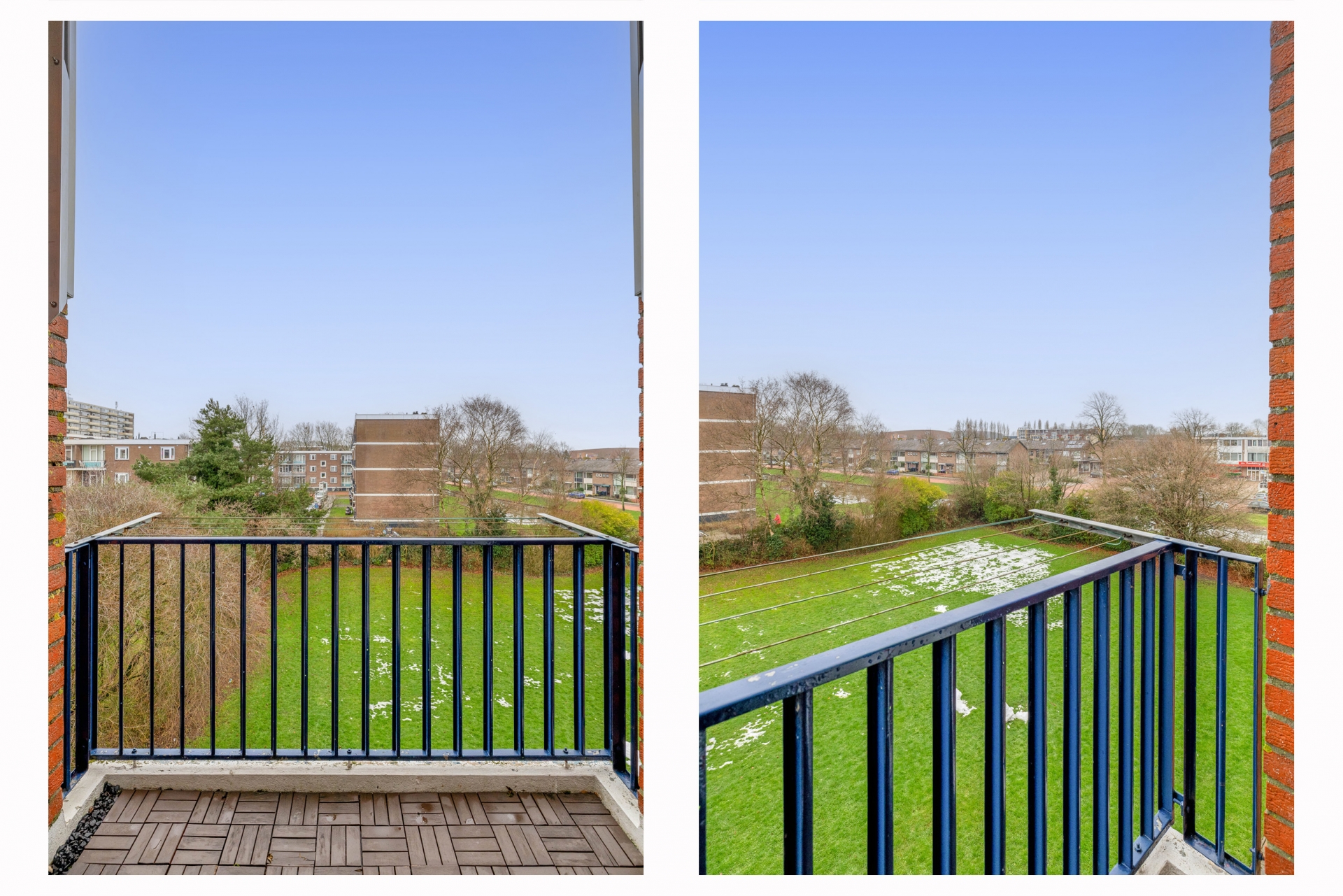 Wat ook prettig is: dankzij de ligging bovenin het gebouw, kijk je heerlijk vrij weg. Aan de voor- én achterzijde is buiten zitten mogelijk. Je hebt de ochtendzon op het balkon aan de achterzijde (zuidoosten), en vanaf de middag zon op het balkon aan de voorzijde (noordwesten).