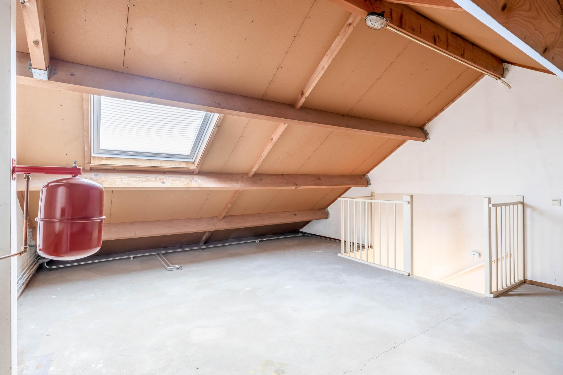 Via een vaste trap bereik je de zolderverdieping. Dit is een open ruimte die zich uitstekend leent als extra slaapkamer, hobbyruimte of thuiswerkplek. Door het plaatsen van een dakkapel of dakraam kun je hier nog meer ruimte en licht creëren.