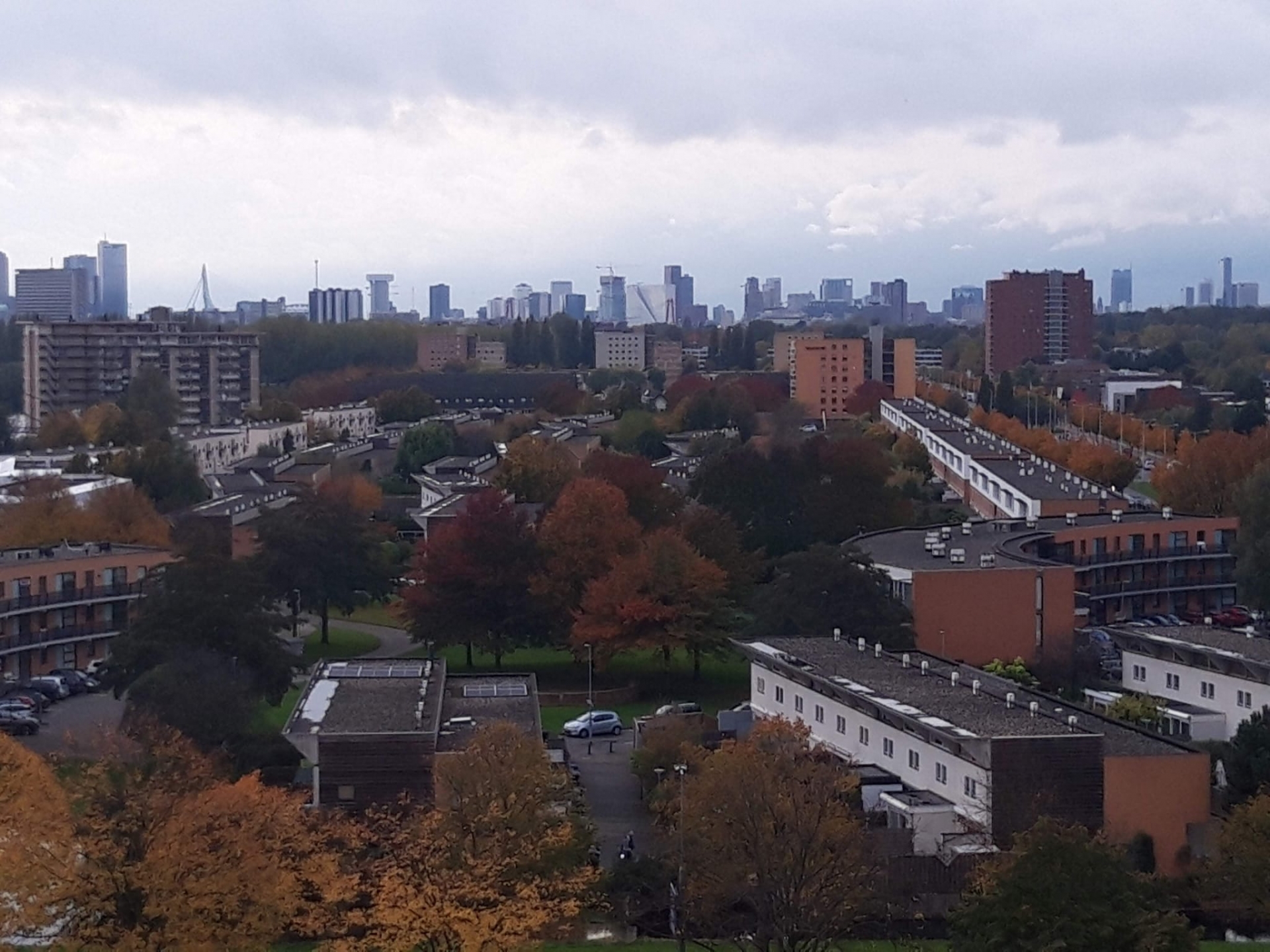 Wat dit appartement echt onderscheidt, is de combinatie van het vrije uitzicht en de centrale ligging. Vanuit de 9e verdieping kijk je ver weg over de omgeving, met als blikvanger de skyline van Rotterdam. Dit geeft een gevoel van ruimte en vrijheid dat je niet vaak tegenkomt.