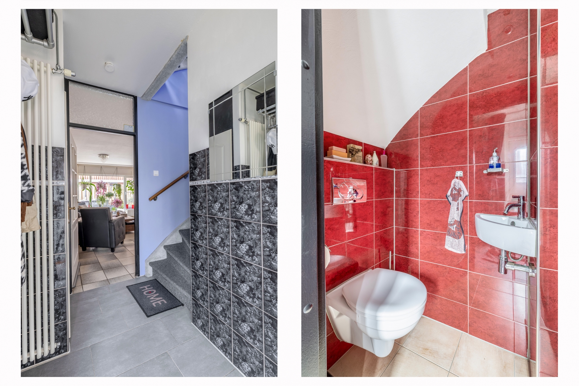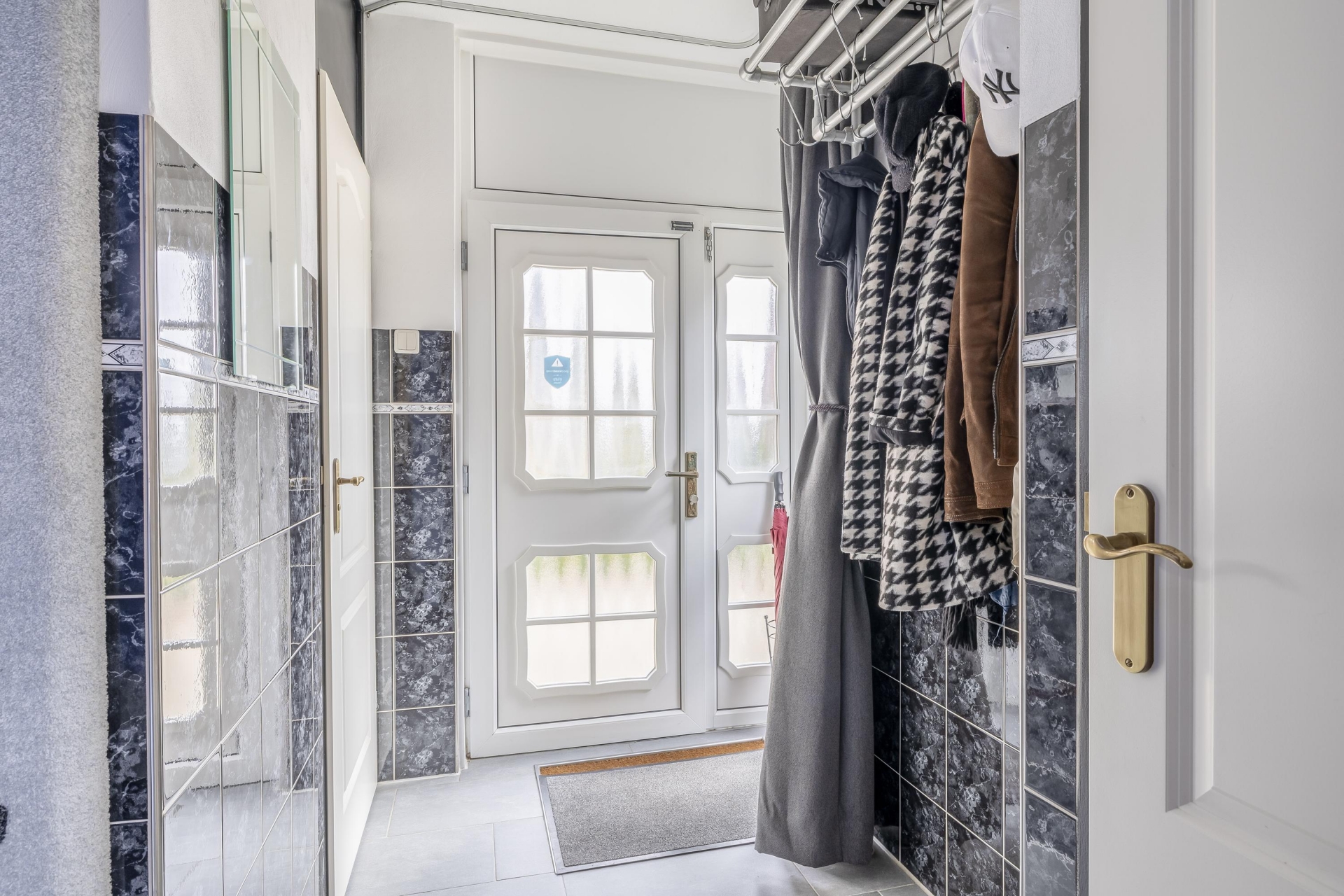 De entree is netjes verzorgd en voorzien van een toiletruimte en garderoberuimte. Alles voelt functioneel en comfortabel aan, precies zoals je dat wilt.