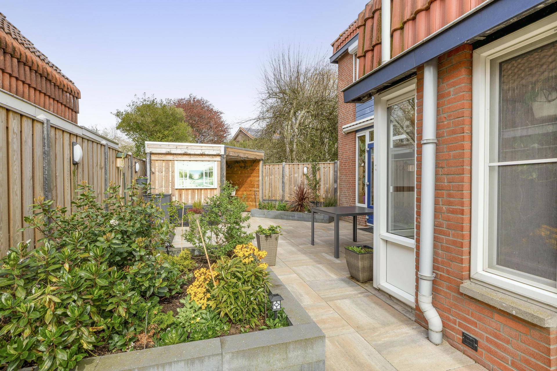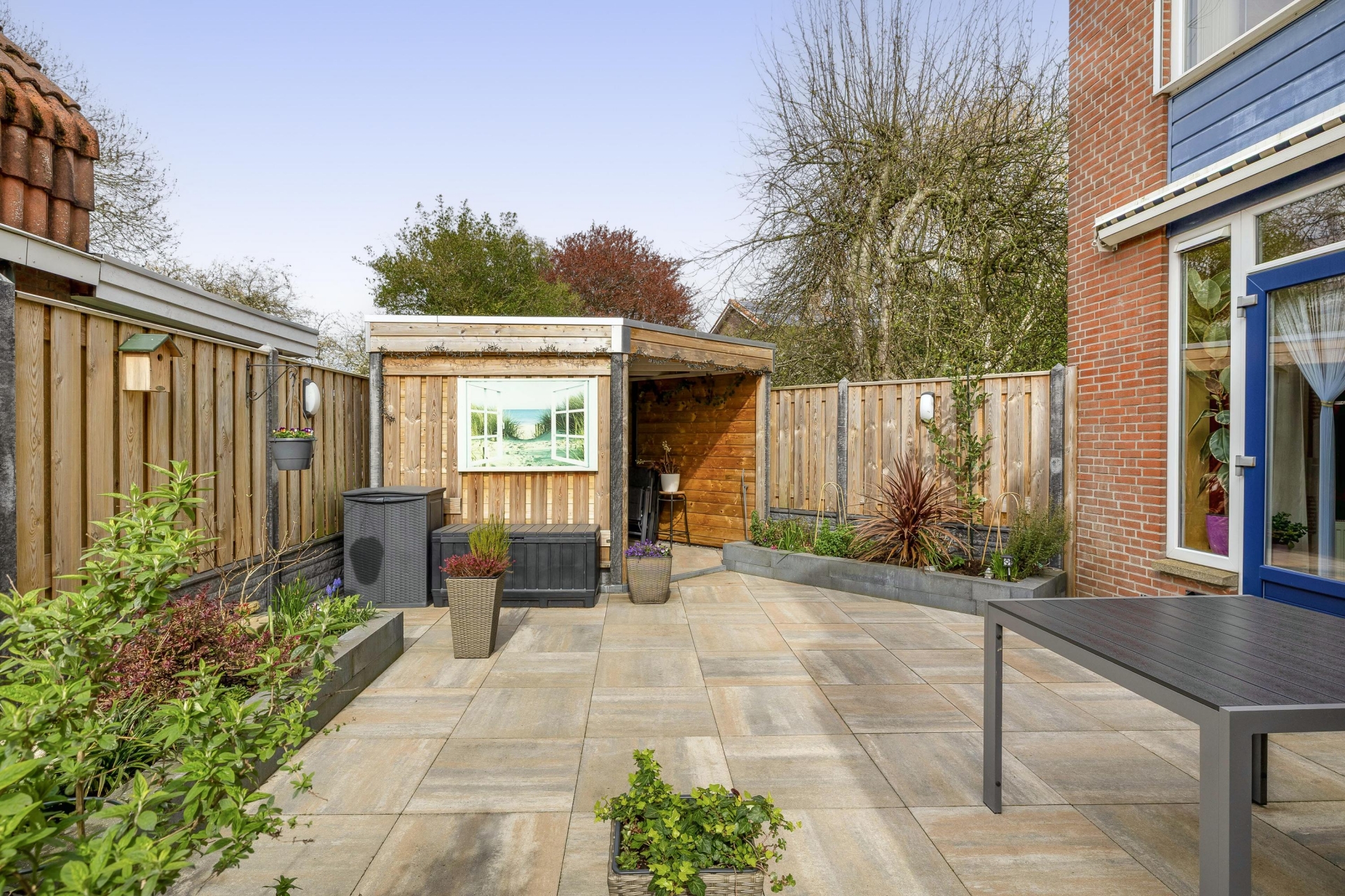De achtertuin is verzorgd aangelegd en ligt op het westen, waardoor je hier volop van de middag- en avondzon kunt genieten. Dankzij de combinatie van bestrating en groen is de tuin onderhoudsvriendelijk en toch sfeervol ingericht.