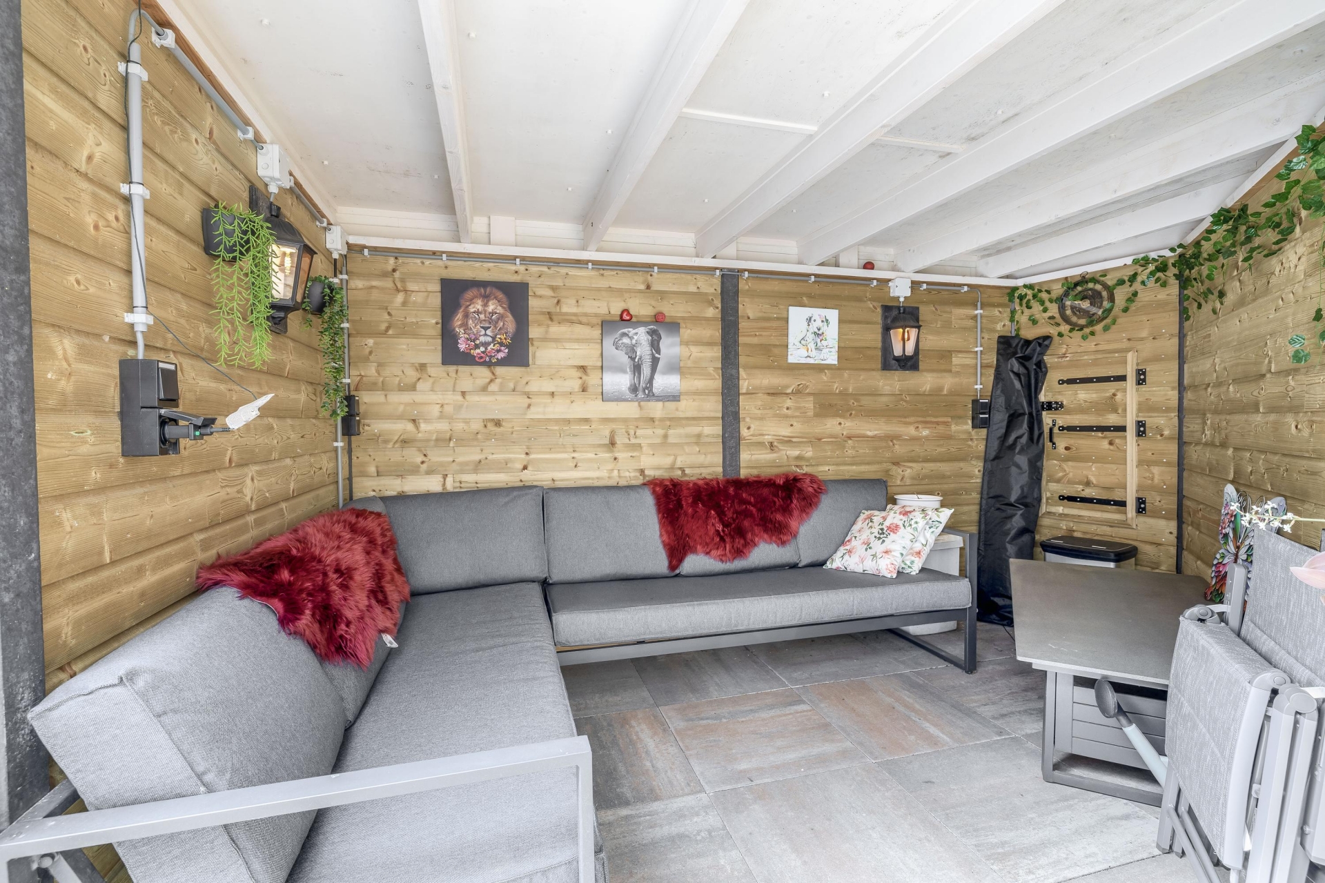 Achterin de tuin vind je een gezellige overkapping die zorgt voor extra leefruimte buiten. Of je nu beschut wilt zitten bij minder weer of juist langer wilt genieten op een zwoele zomeravond, deze plek maakt het mogelijk.