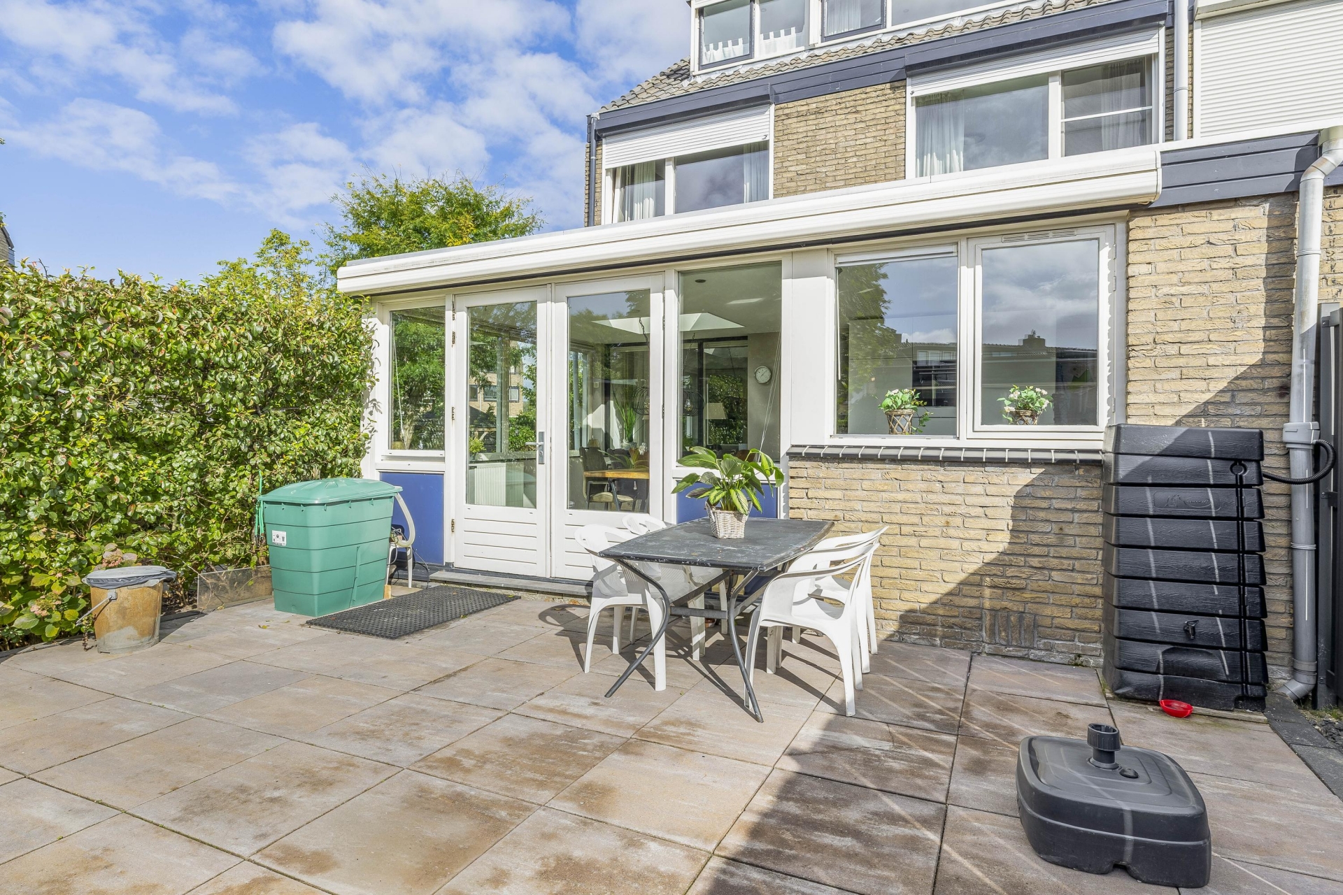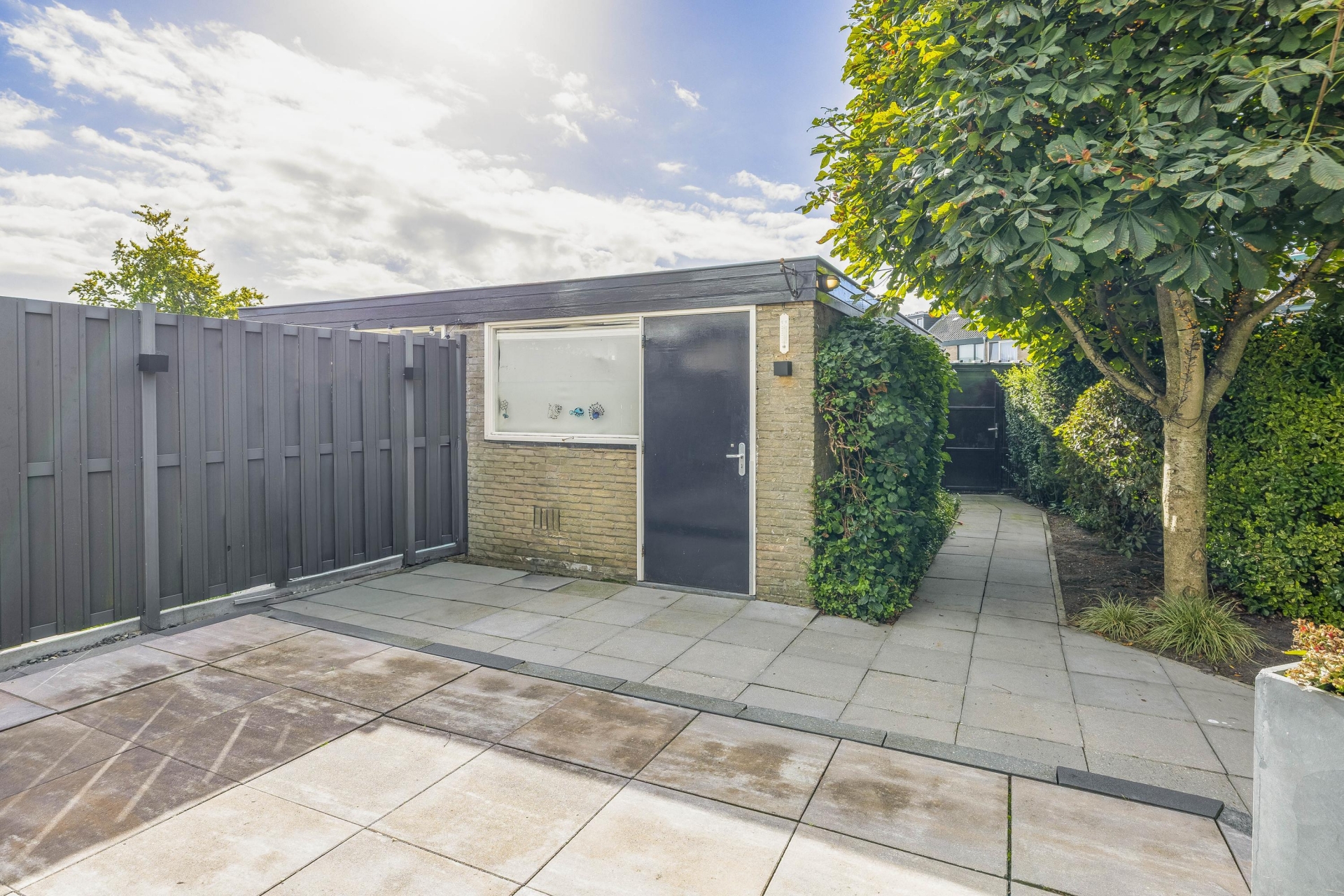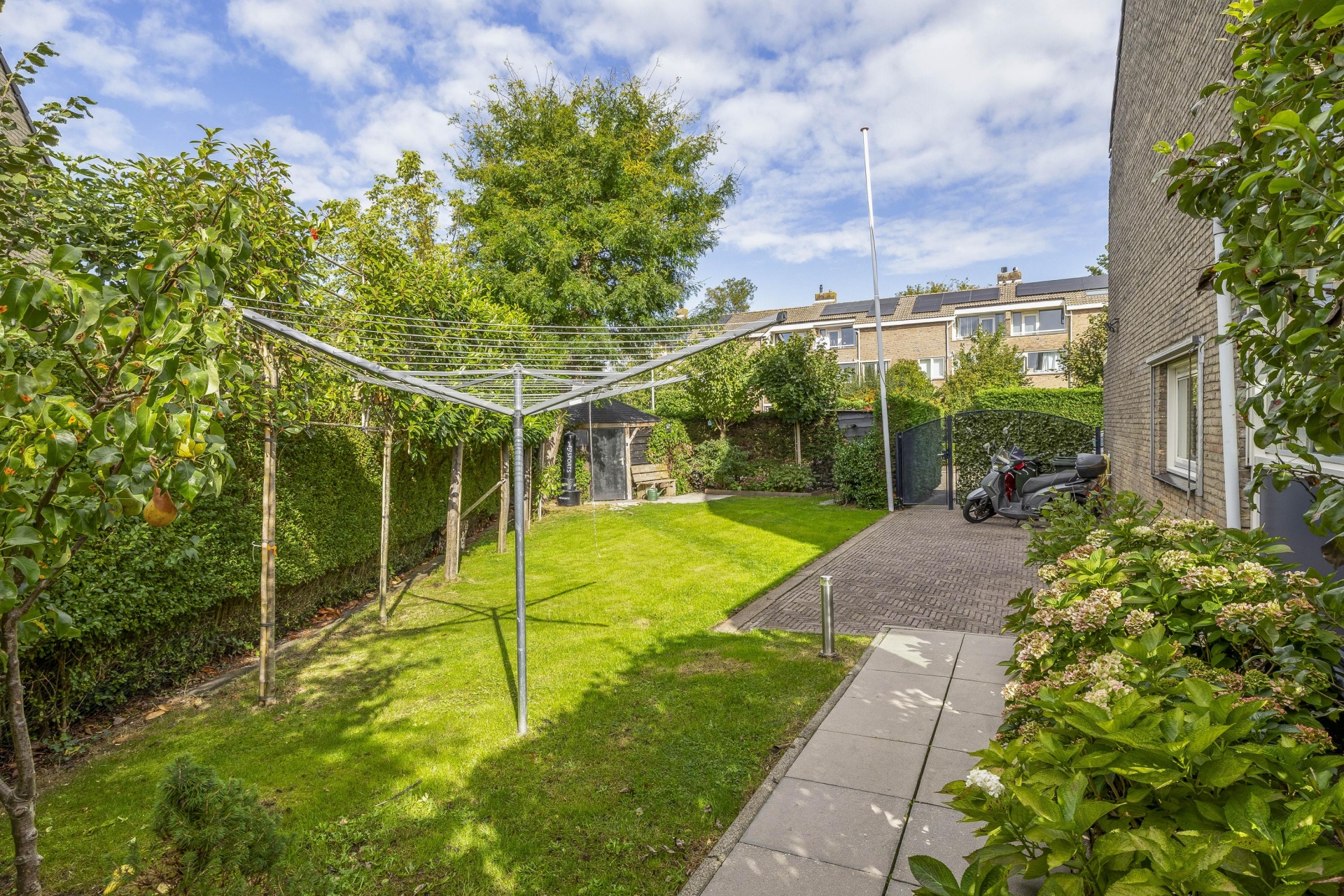 De royale tuin bij het huis is een van de grote pluspunten. Door de hoekligging is er veel privacy én extra buitenruimte. De tuin is verzorgd, groen en lekker ruim, heerlijk zonnig gelegen op het zuid-westen: dus tot laat in de middag en avond kun je overal genieten van de zon. Er is meer dan genoeg plek voor een loungeset, gras om op te spelen en eventueel een overkapping of veranda. Aan de achterkant vind je de stenen garage, ideaal voor je auto, fietsen of als klusruimte. In de voortuin is tevens ook nog voldoende ruimte om op eigen terrein te parkeren.