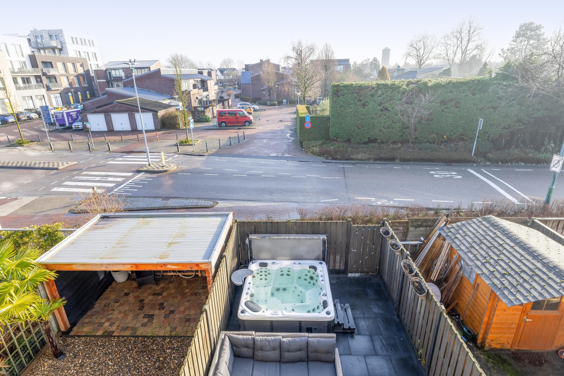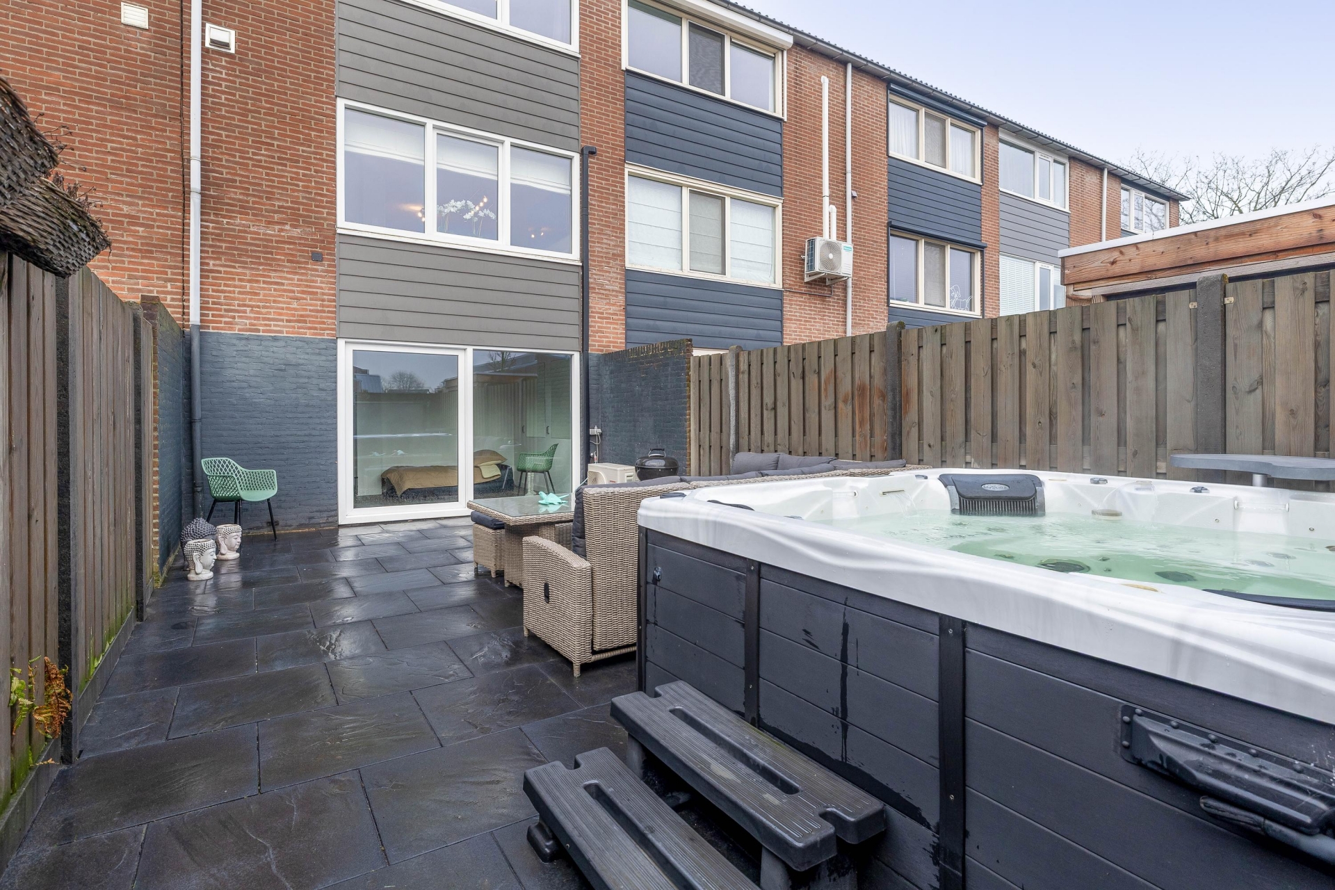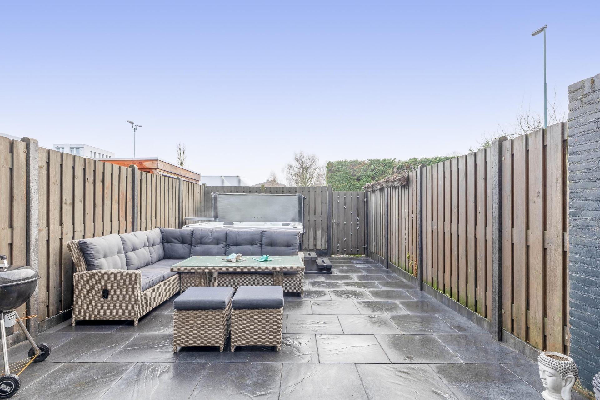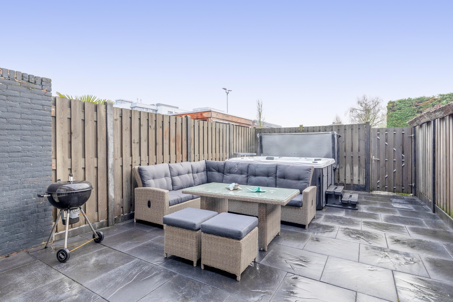 De achtertuin is onderhoudsvriendelijk aangelegd en volledig betegeld. Hier geniet je in de ochtend en vroege middag van de zon, doordat de tuin op het oosten ligt. De jacuzzi is aangesloten op een eigen groep en er is elektra aanwezig. Aan de voorzijde parkeer je eenvoudig op je eigen oprit, waar al een aansluiting voor een laadpaal is voorbereid.