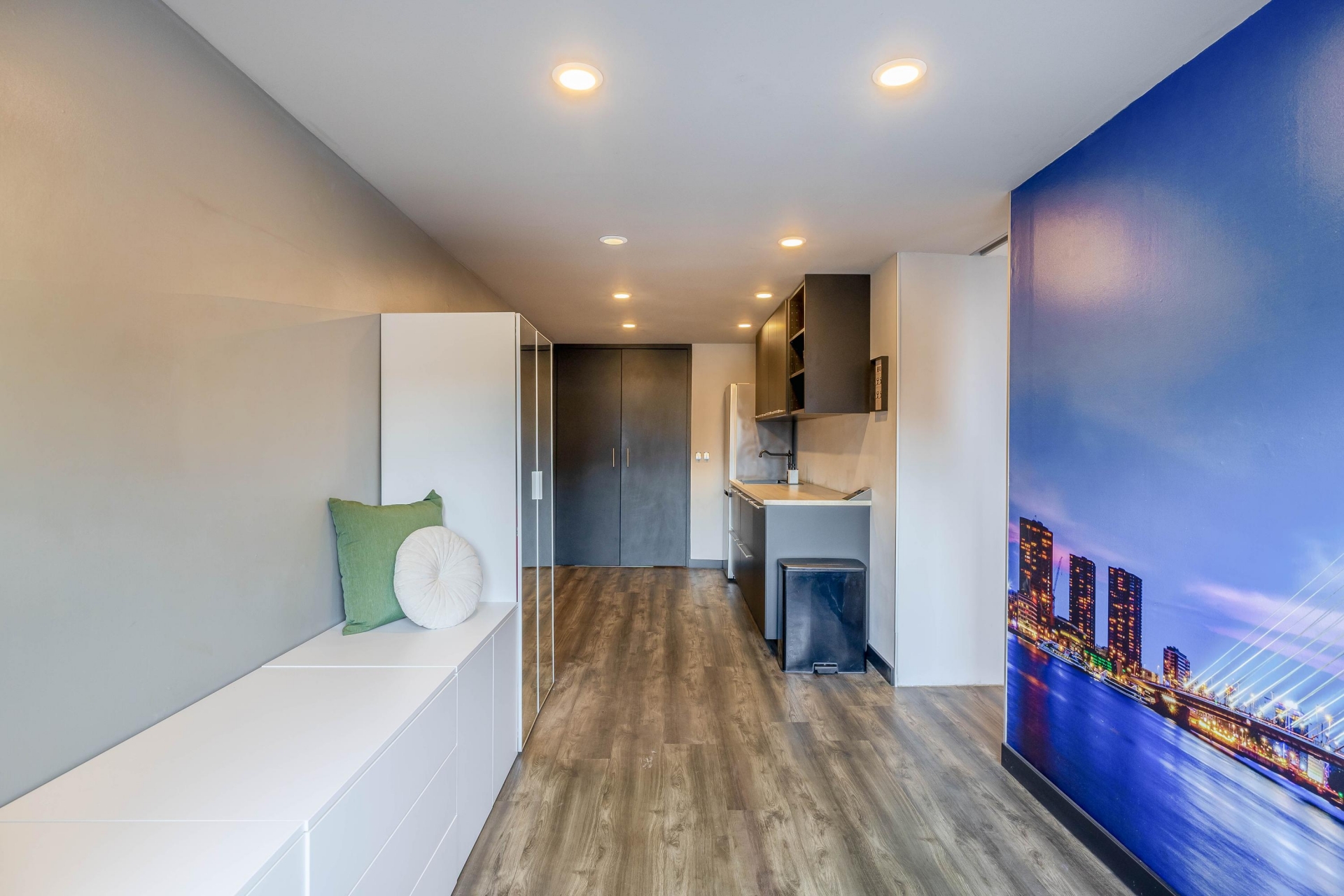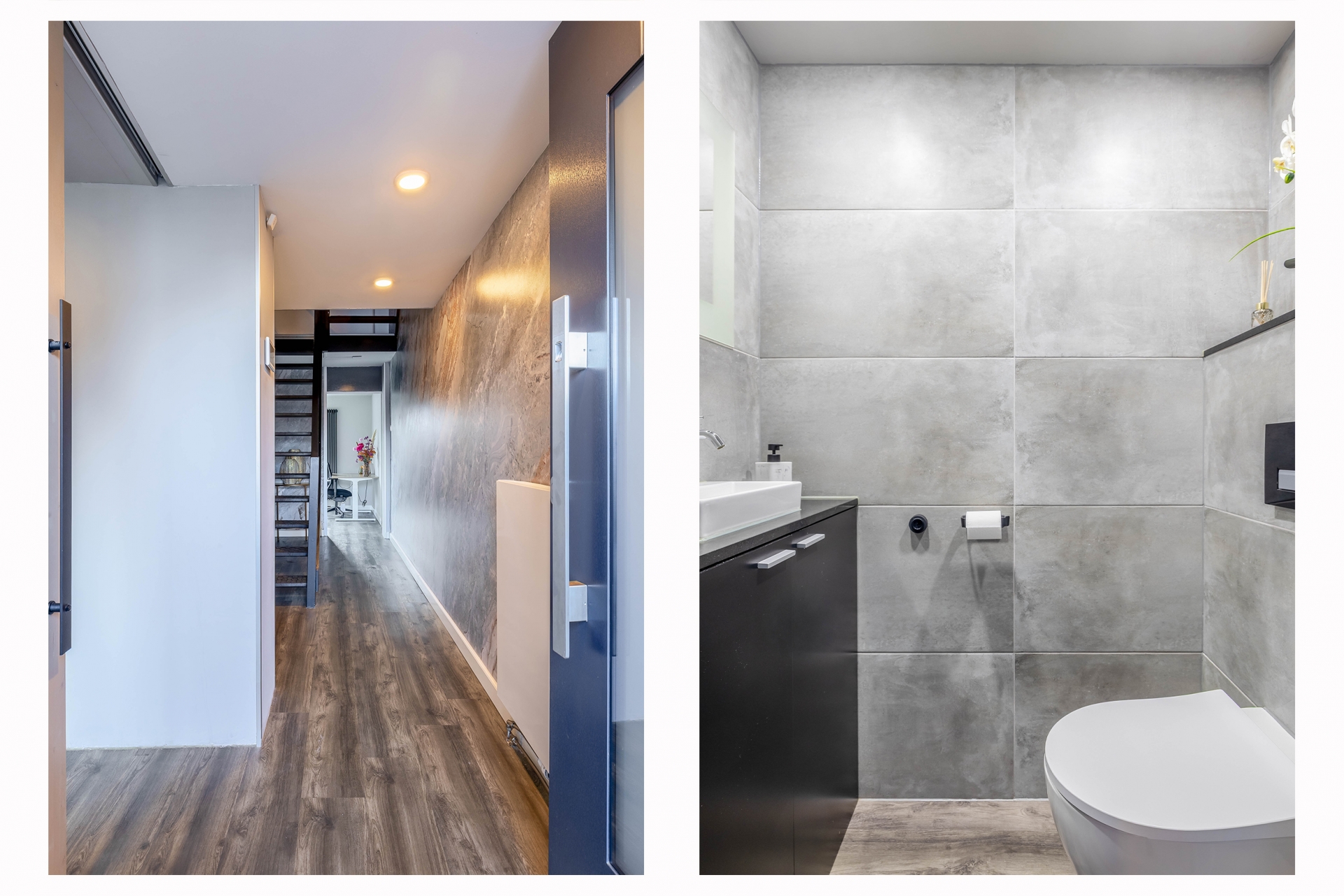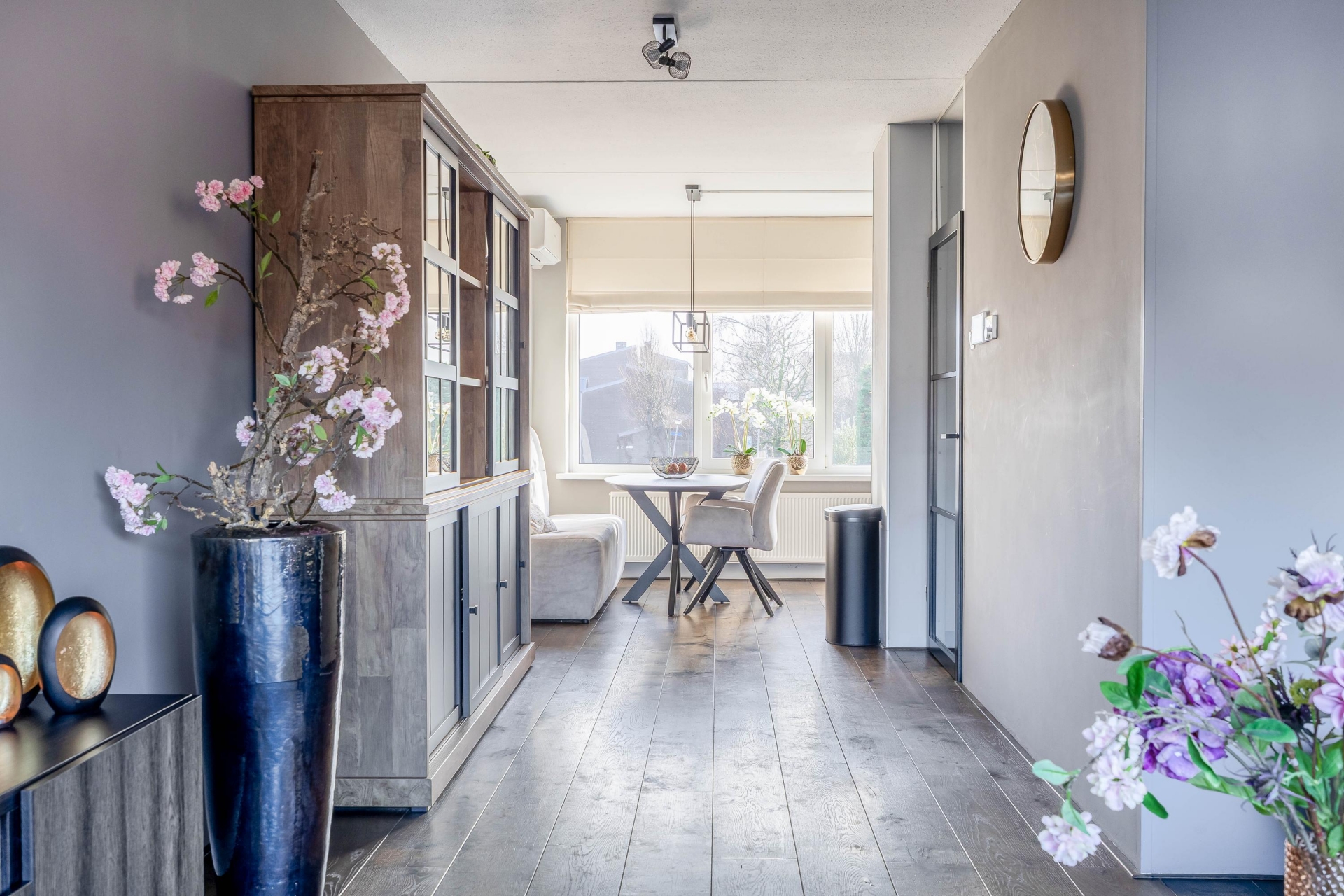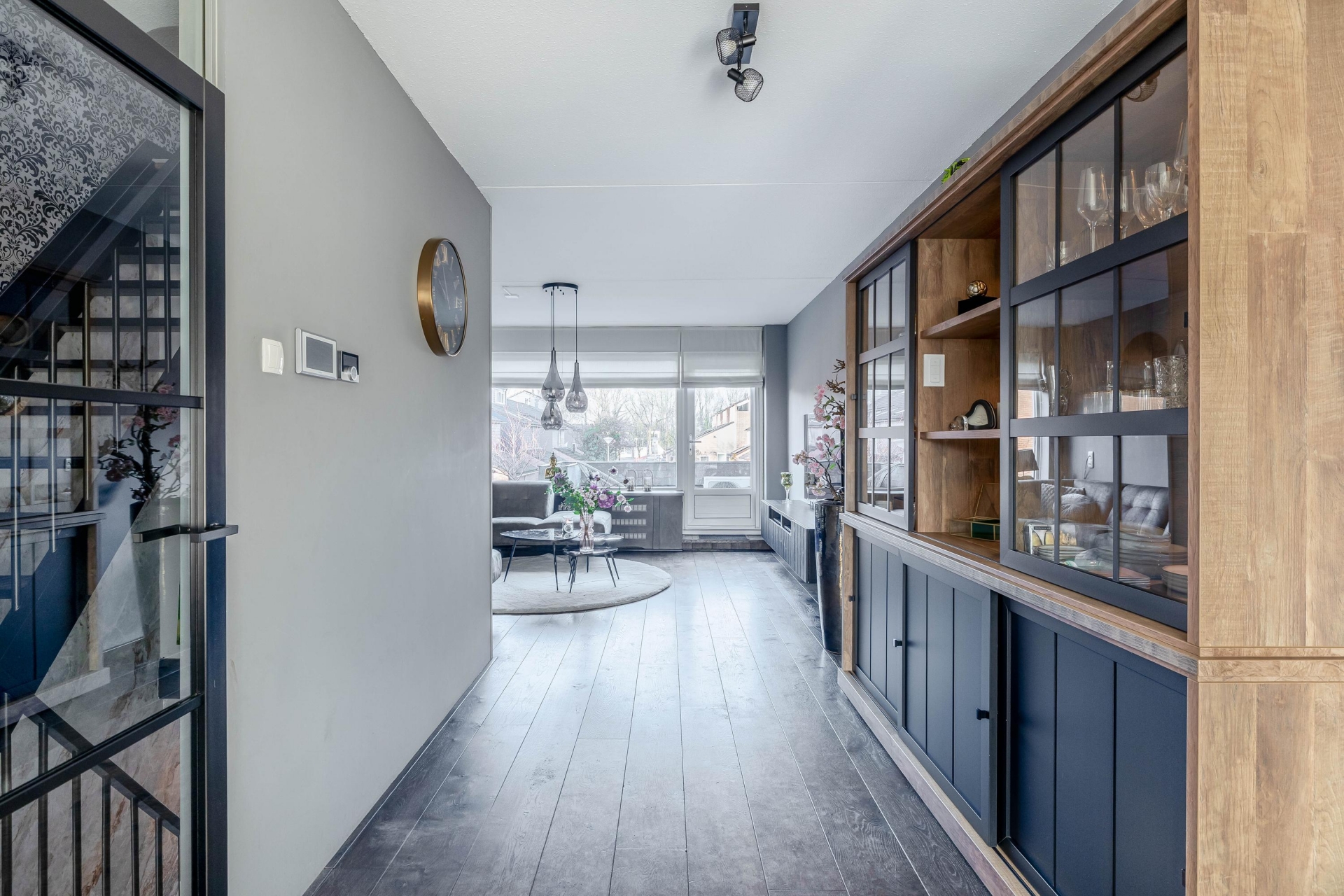 Dit huis is oorspronkelijk gebouwd als drive-in woning en dat merk je aan de praktische en veelzijdige indeling. Op de begane grond kom je binnen in een ruime hal met modern toilet. Aan de voorzijde bevindt zich een grote kamer met een eigen entree. Deze ruimte is voorzien van een praktisch keukenblok en leent zich perfect als thuiskantoor, praktijkruimte of salon aan huis, maar kan net zo goed worden gebruikt als woon- of slaapkamer. Aan de achterzijde ligt de tuinkamer met een brede schuifpui naar de achtertuin. Dankzij de strakke wandafwerking, inbouwverlichting en pvc vloer voelt deze verdieping direct verzorgd aan.
