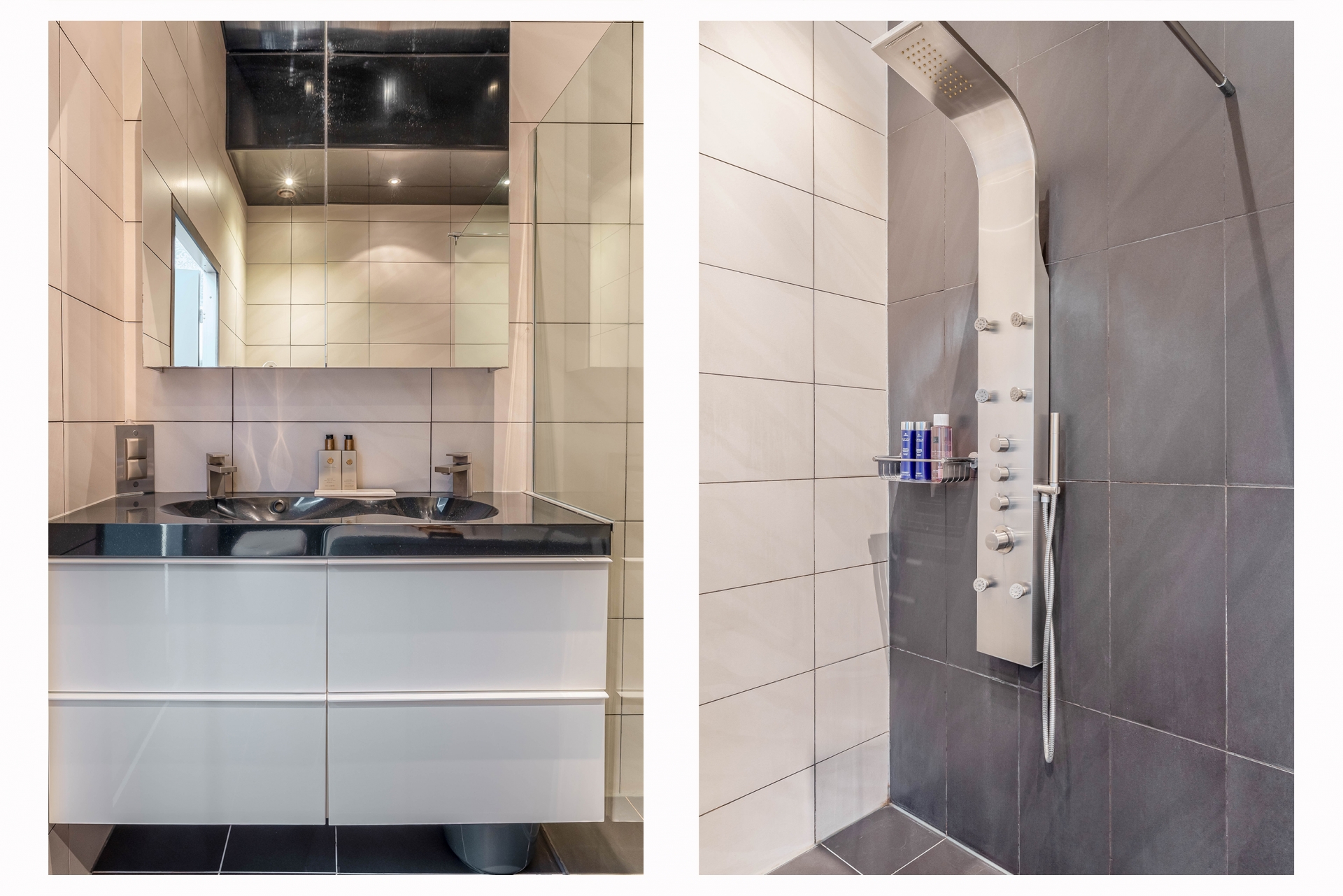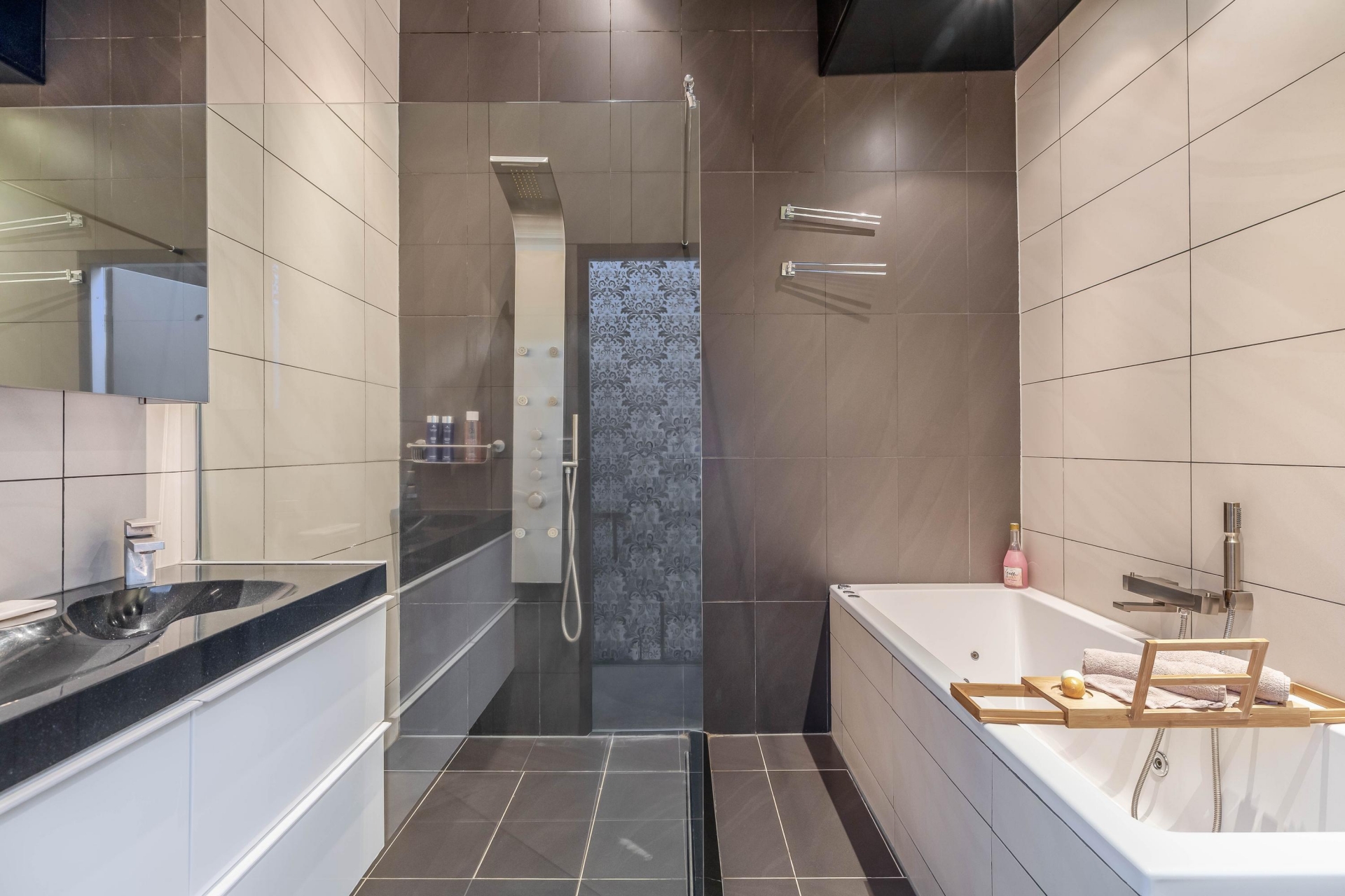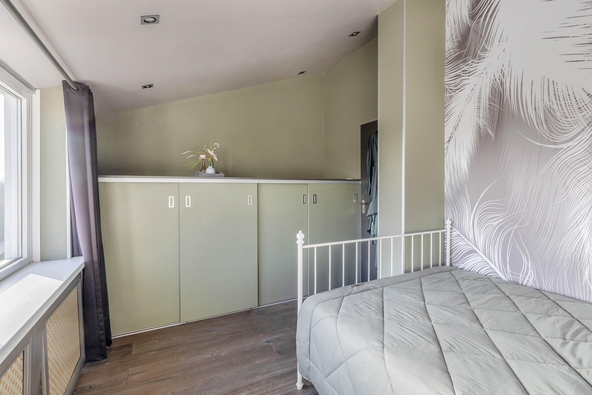 Op de tweede verdieping bevinden zich twee ruime slaapkamers, beide netjes afgewerkt en voorzien van praktische vaste kasten en horren. De hoofdslaapkamer ligt aan de voorzijde en biedt volop ruimte. De badkamer is compleet uitgevoerd met een dubbele wastafel, een ruime inloopdouche, een ligbad met whirlpool en een tweede toilet. Dankzij het hoge plafond en de nette afwerking voelt deze ruimte extra ruim en comfortabel aan.