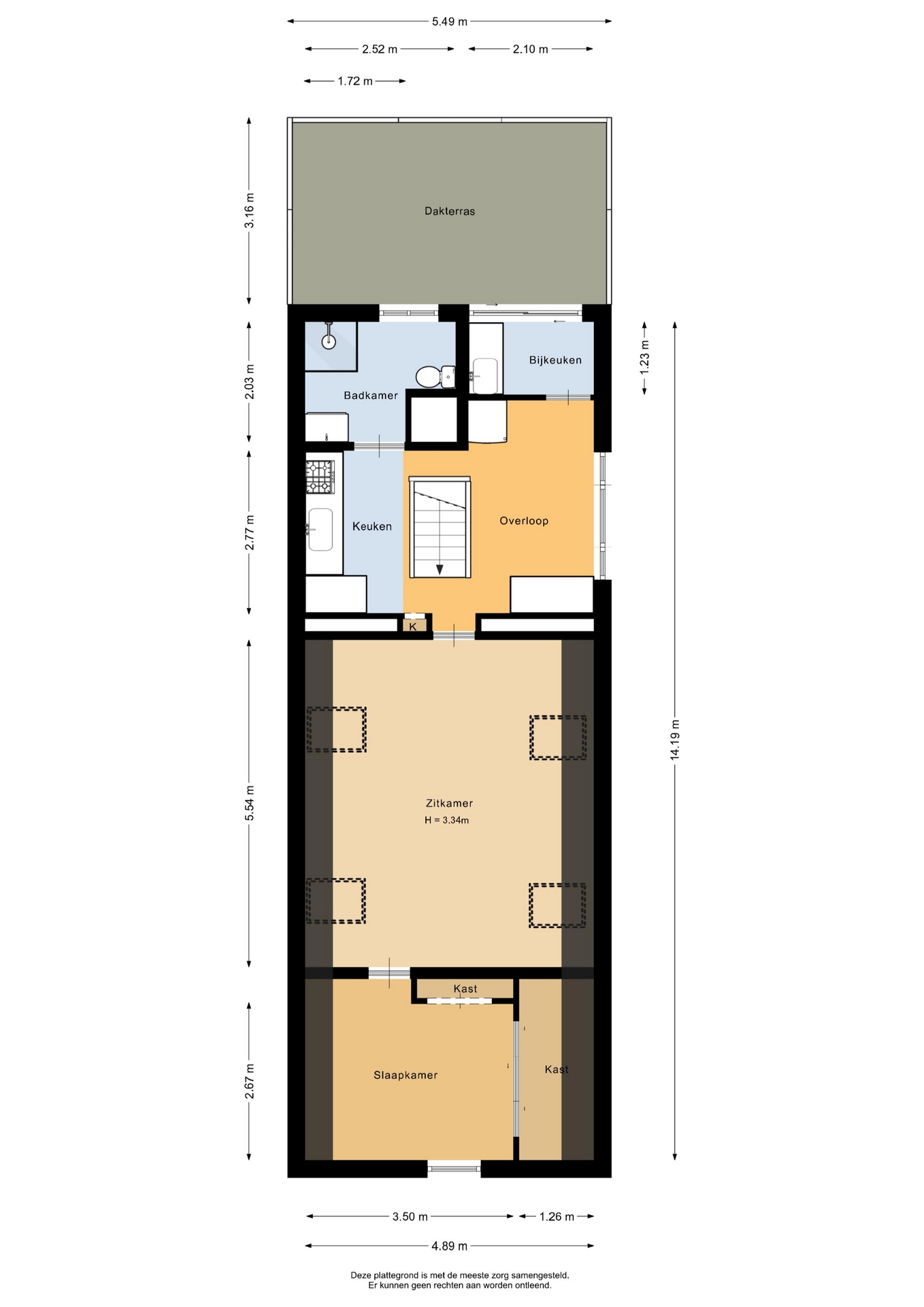 “Deze informatie is door ons met de nodige zorgvuldigheid samengesteld. Onzerzijds wordt echter geen enkele aansprakelijkheid aanvaard voor enige onvolledigheid, onjuistheid of anderszins, dan wel de gevolgen daarvan. Alle opgegeven maten en oppervlakten zijn indicatief.”