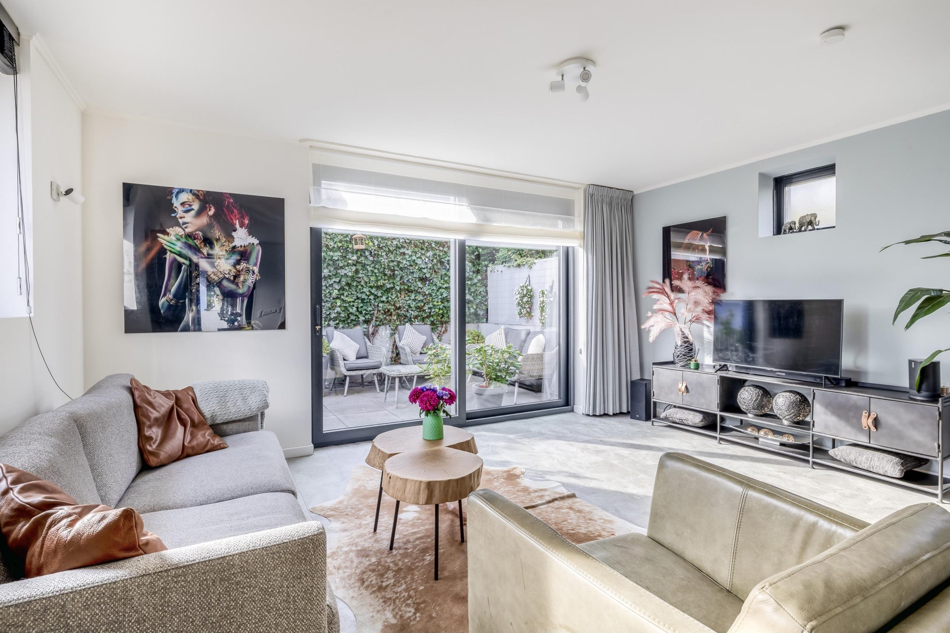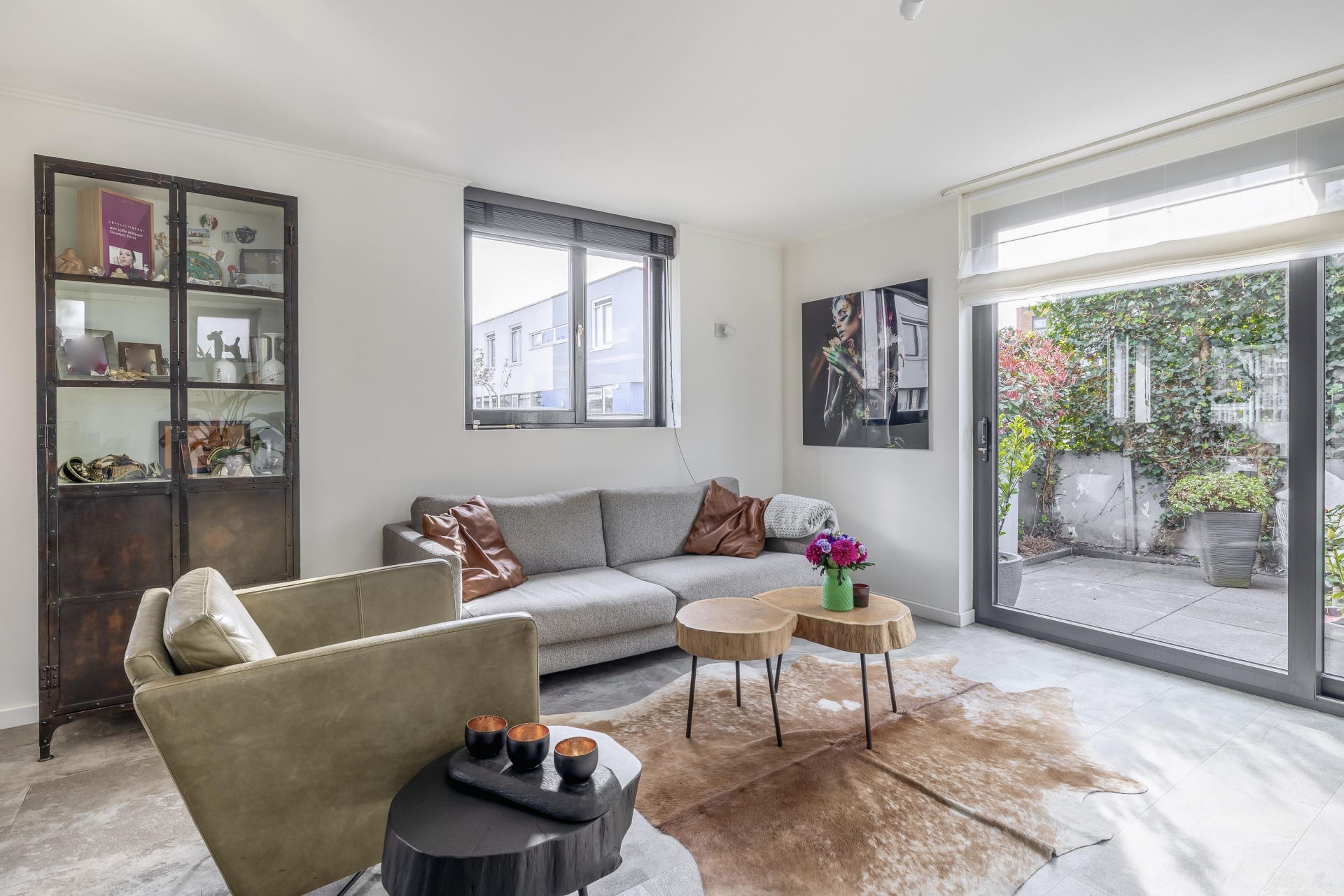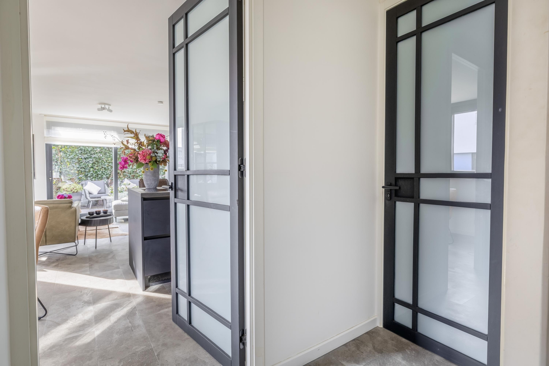 Vanuit de living is er via een schuifpui toegang tot de tuin:
