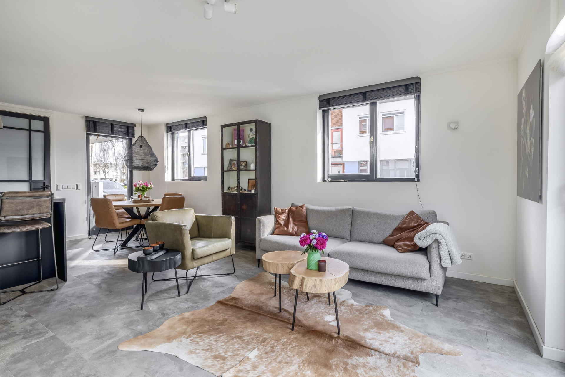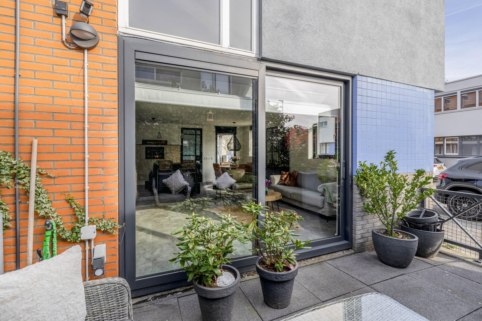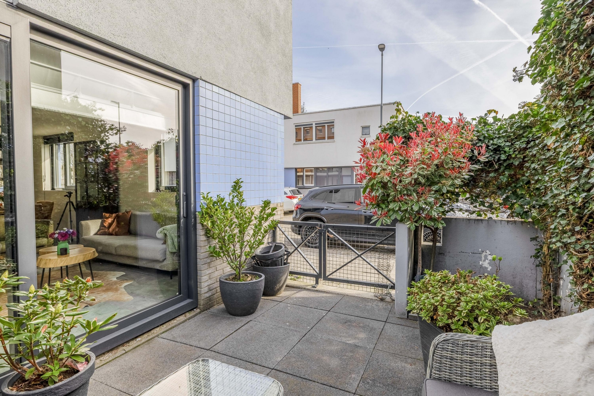 Vanuit de living is er via een schuifpui toegang tot de tuin: