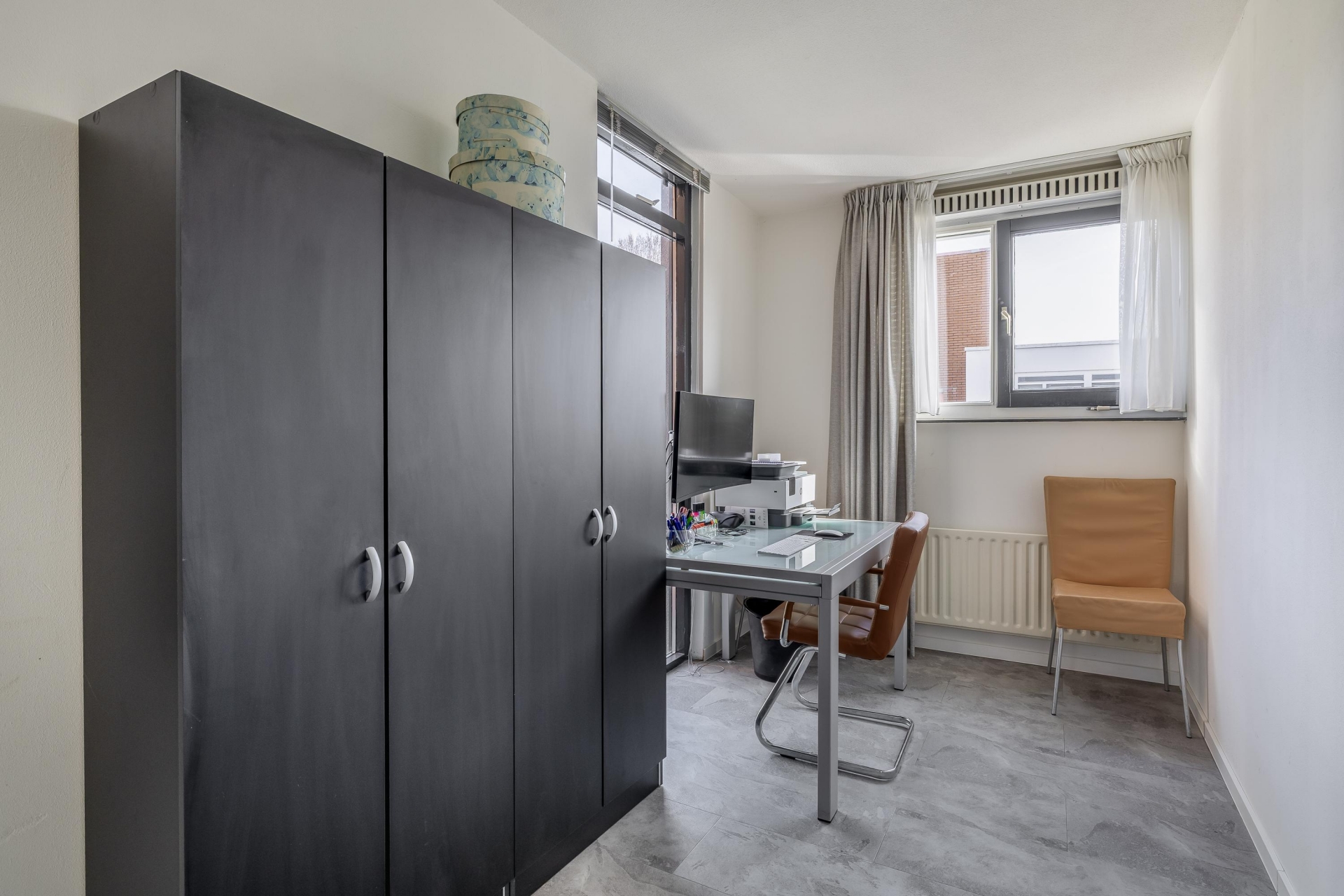 De derde kamer meet 8.1m² en is momenteel ingericht als werkruimte / kantoor.