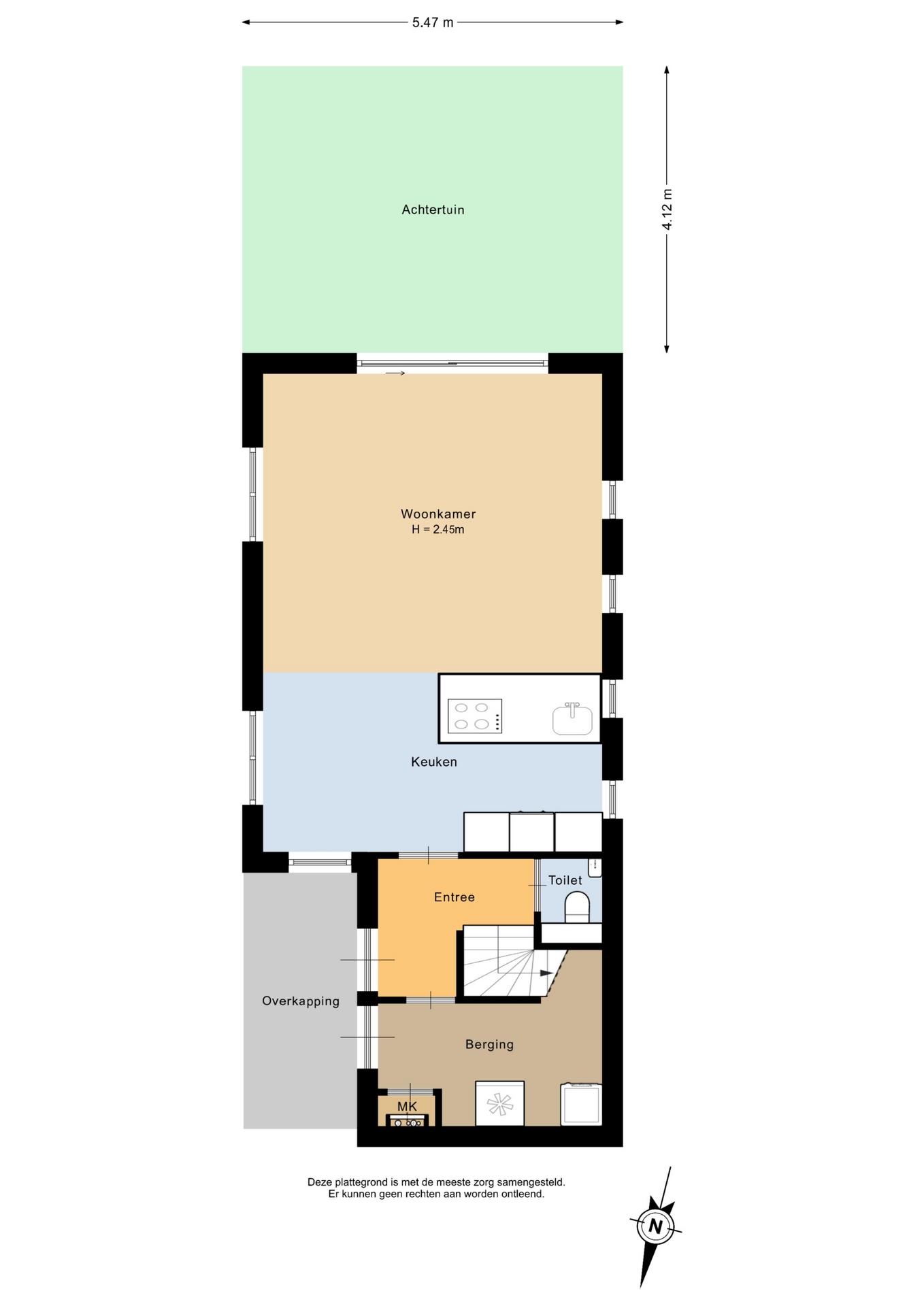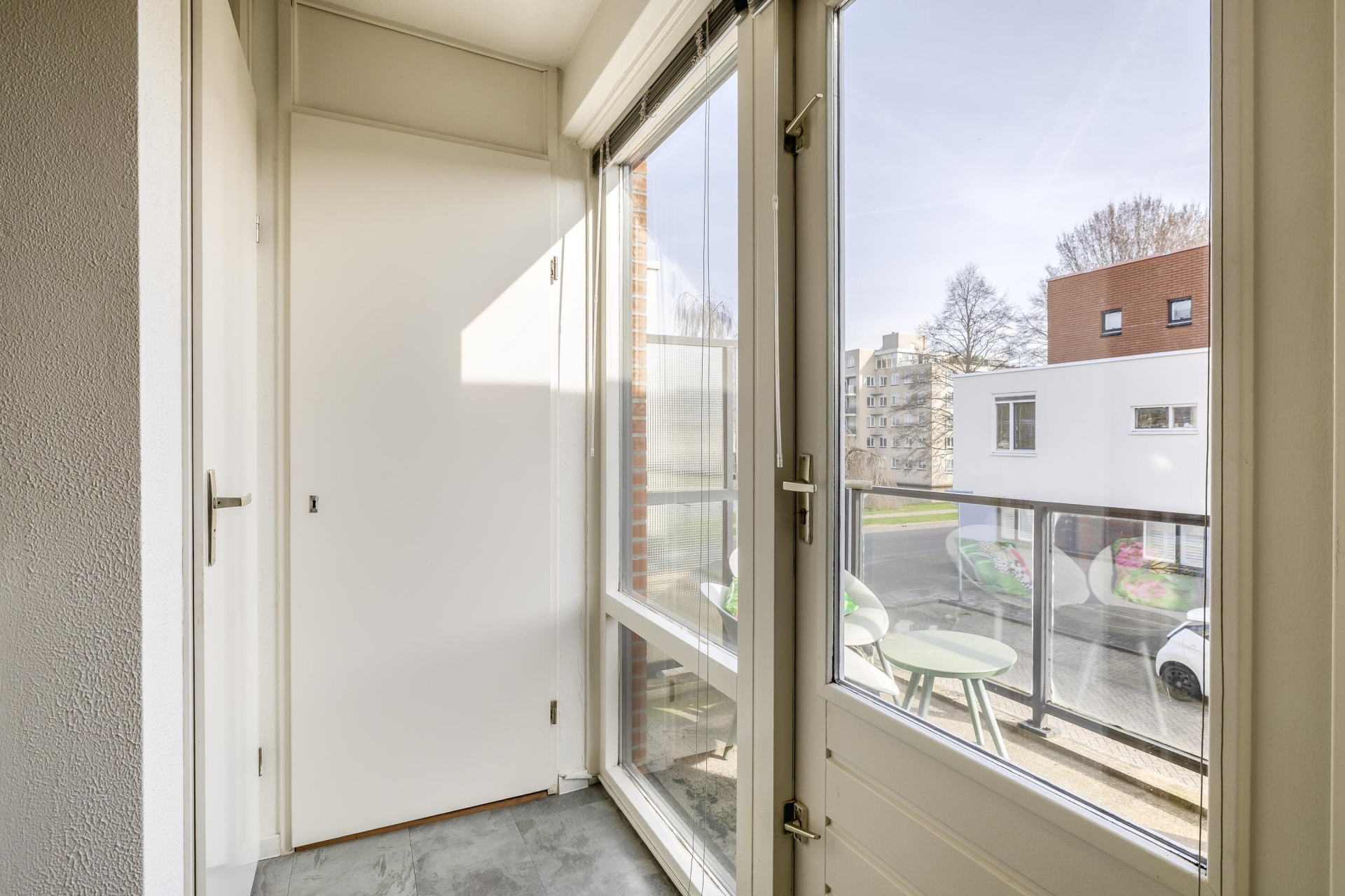 Overdekte entree (6m²) met voordeur en deur naar de inpandige berging.