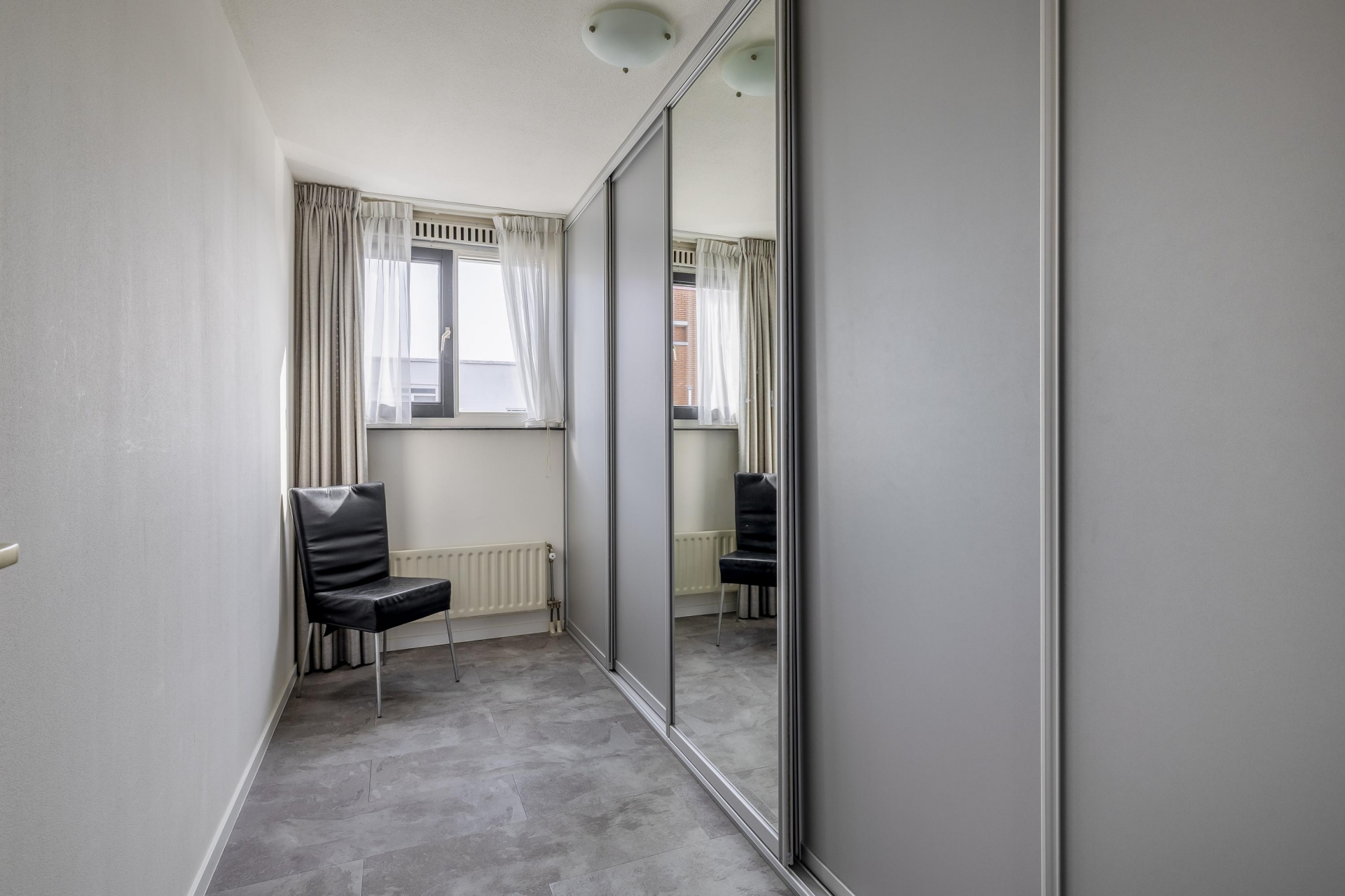 De naastgelegen kamer is over de hele lengte voorzien van een grote schuifwandenkast en meet 8.6m².