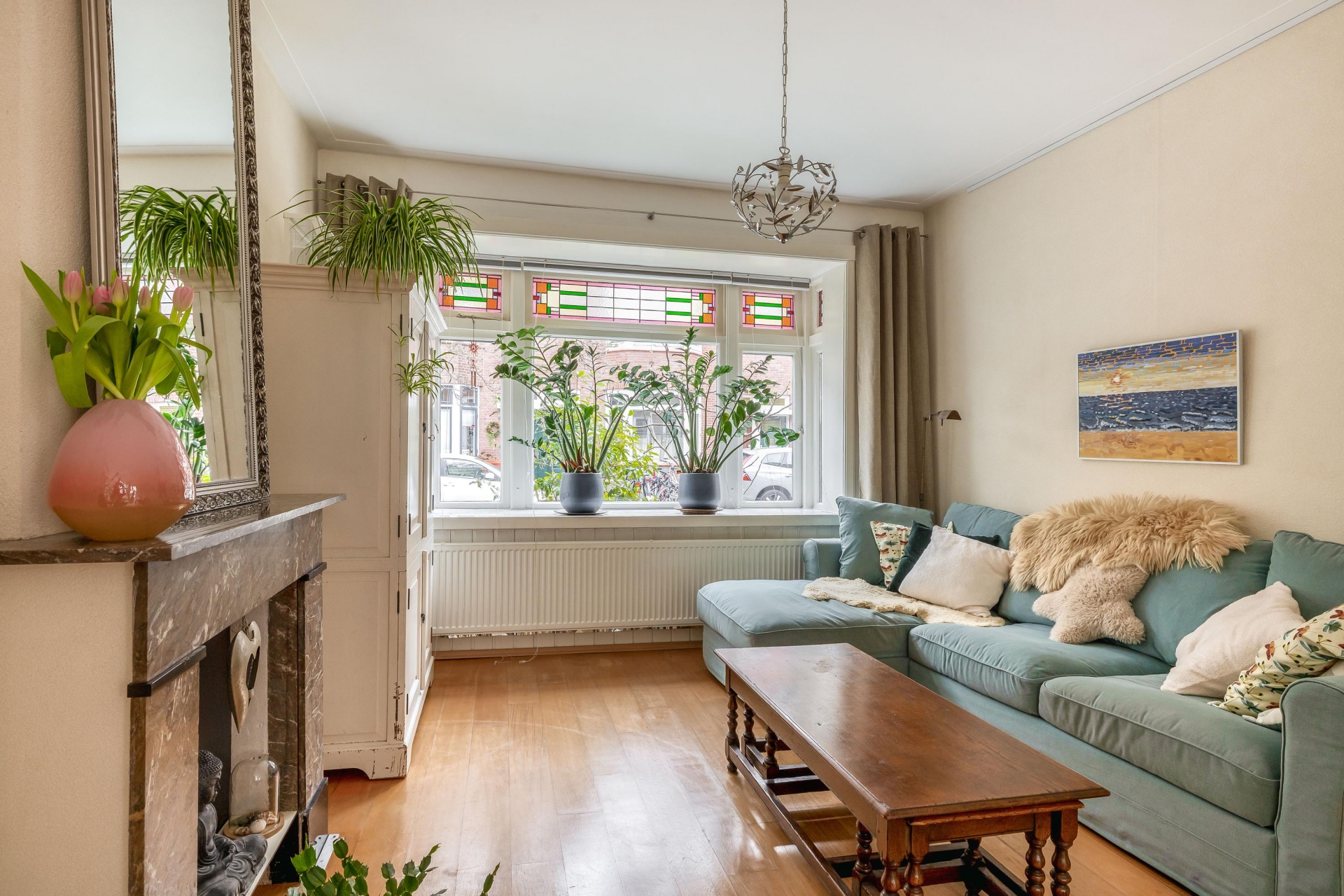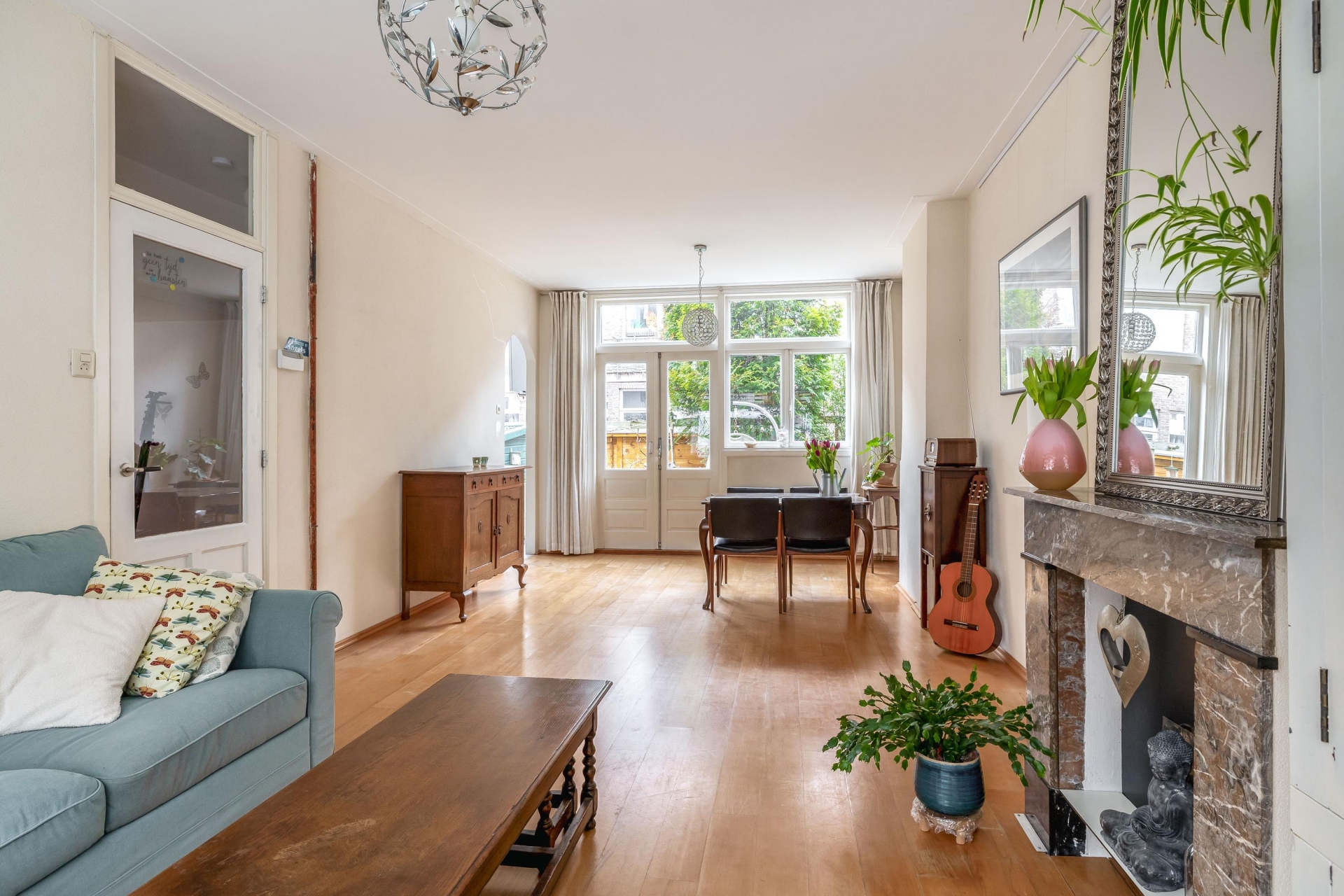 Toen ik 19 jaar geleden dit huis zag, was ik op slag verliefd op de erker met het glas in lood, de lichtinval, de openslaande deuren. Met heel veel plezier heb ik geleefd in dit fijne huis, in deze rustige straat. Meesjes en merels heb ik hun vleugeltjes zien uitslaan in mijn achtertuin. Rust in huis en tuin of in 10 minuten in de reuring van de stad, de keuze is aan jou/jullie.