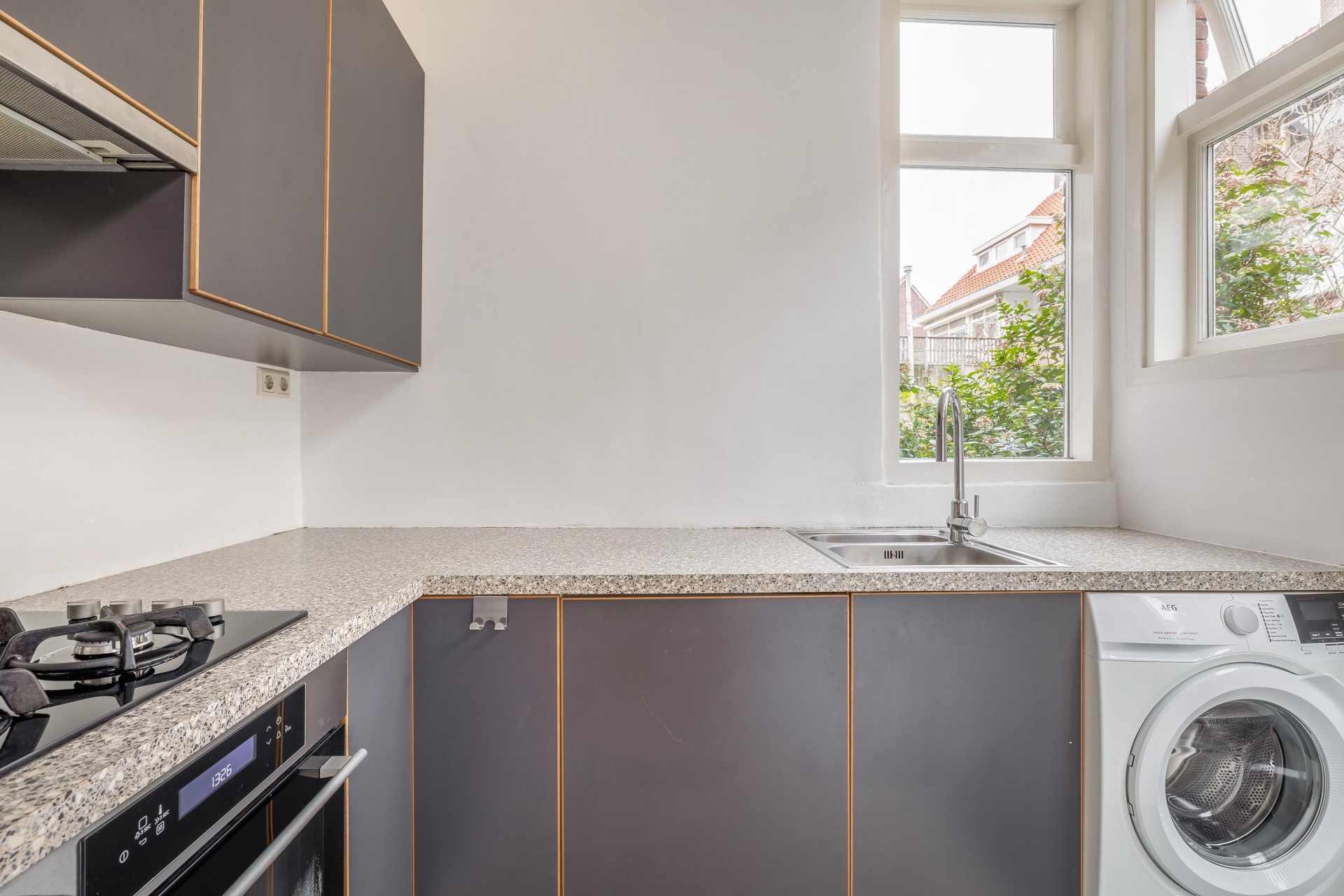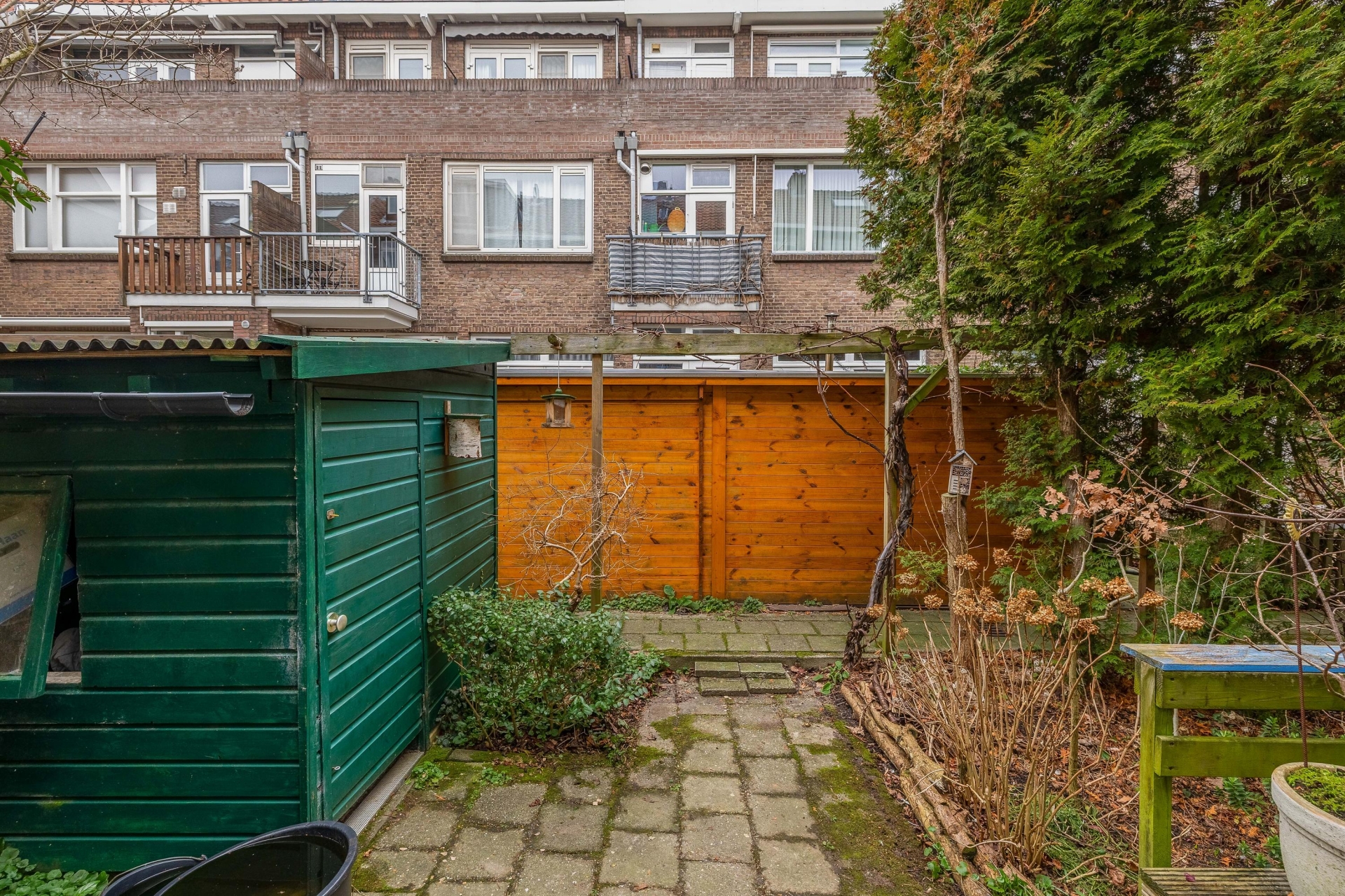 Aan de voorzijde van het huis ligt een nette voortuin die zorgt voor een prettige entree en extra privacy. De achtertuin op het noordwesten is een echte bonus in de stad: hier geniet je van middag- en avondzon. Perfect voor een borrel na werk of ontspannen barbecue met vrienden.