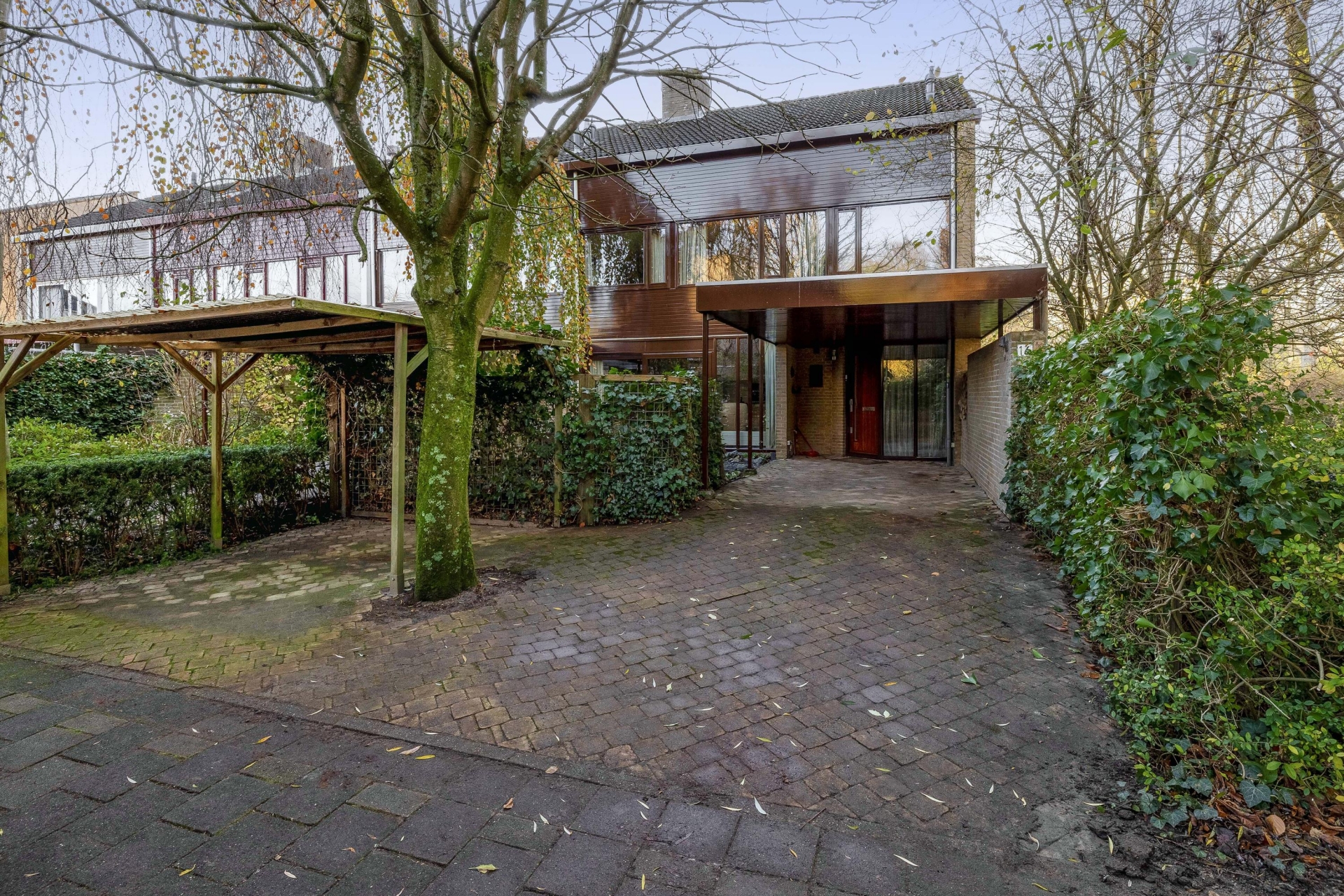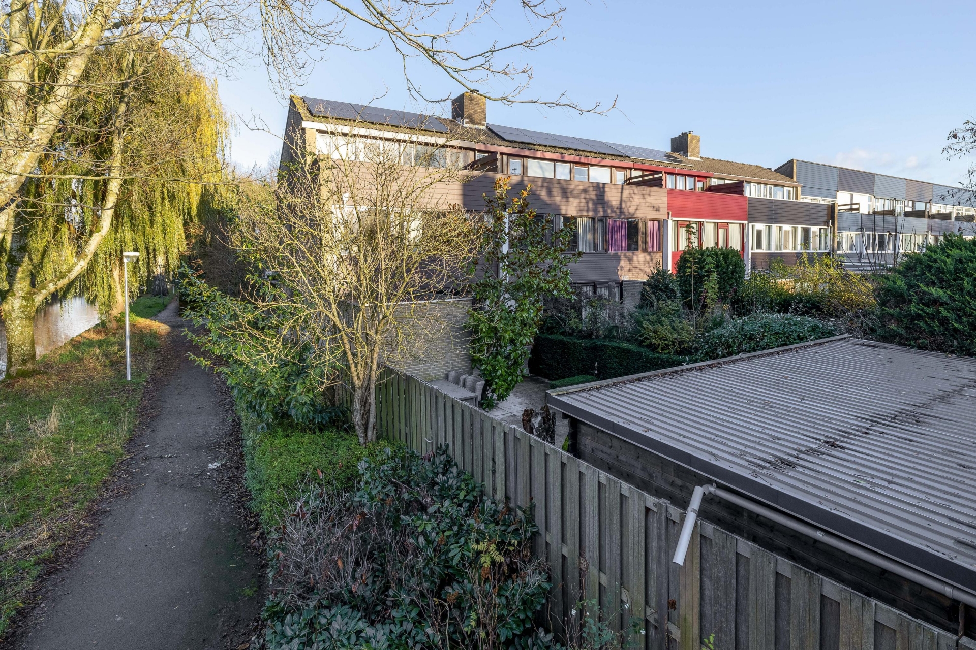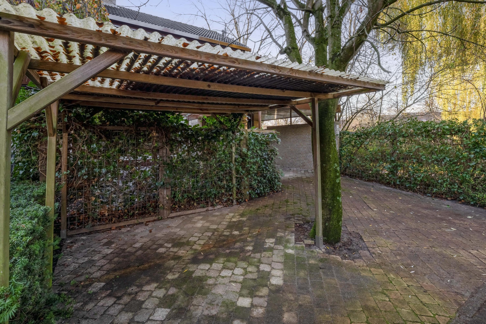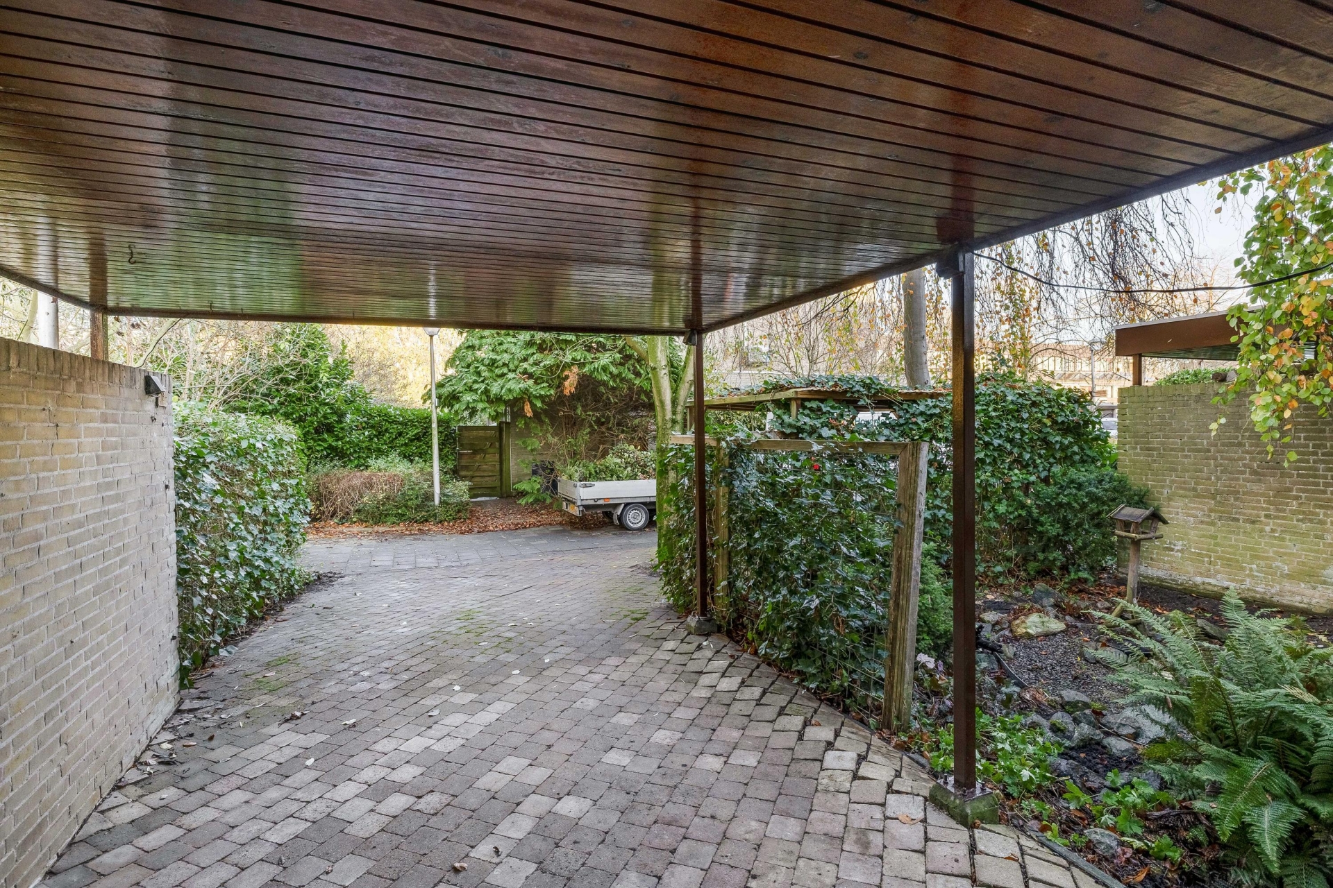 De achtertuin is onderhoudsvriendelijk aangelegd en biedt meerdere fijne zitplekken. Een van de highlights is de gezellige overkapping met zithoek achterin de tuin – een heerlijke plek om te ontspannen of borrelen met vrienden. De achtertuin is voorzien van een berging en de ligging is op het zonnige zuidwesten. De voortuin is eveneens royaal en voorzien van een ruime oprit waar je met gemak meerdere auto’s kwijt kunt, deels onder een carport.