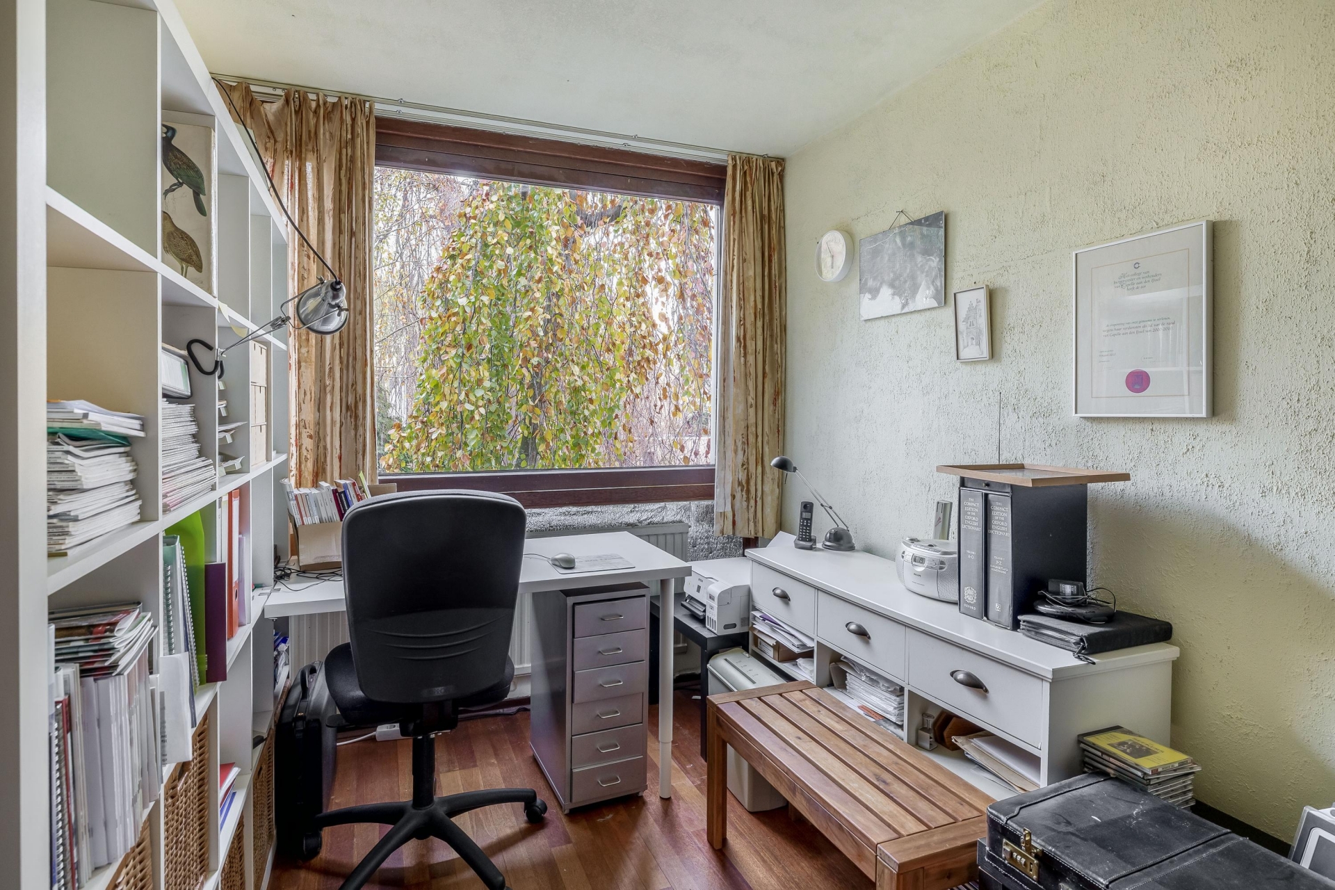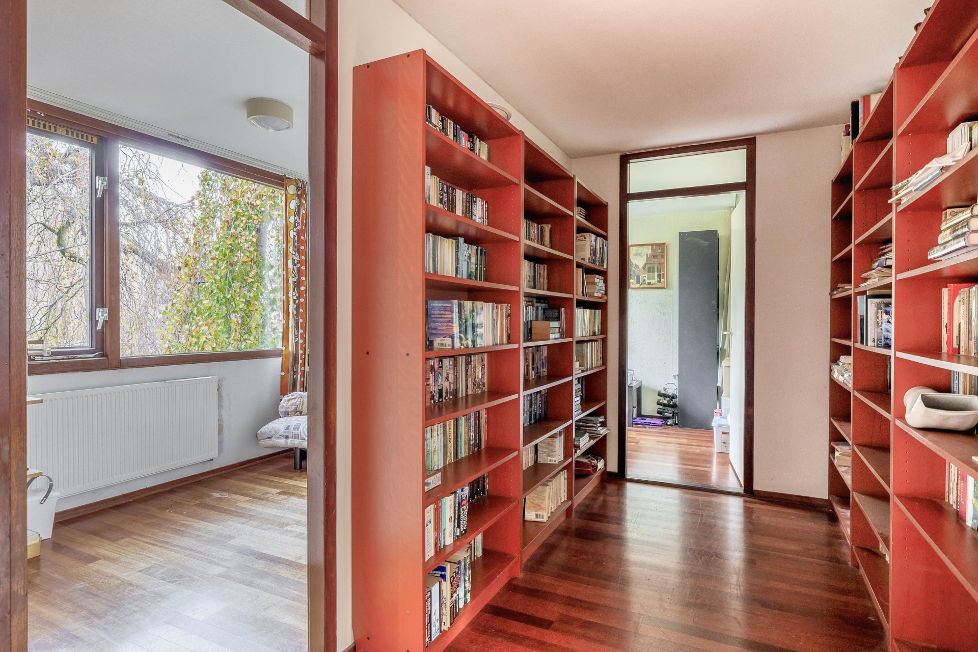 Op de eerste verdieping zijn vier goed bemeten slaapkamers te vinden, waarvan er een in gebruik is als werkkamer. Deze masterbedroom is ideaal in gebruik als ouderslaapkamer. De twee badkamers maken het ochtendritueel een stuk efficiënter – geen wachtrijen meer voor de douche! Op de tweede verdieping vindt u nog een royale kamer welke thans in gebruik is als bibliotheek en werkkamer. Hier zijn met enkele eenvoudige aanpassingen twee slaapkamers te realiseren. Op deze verdieping is er tevens toegang tot een kleine bergvliering.