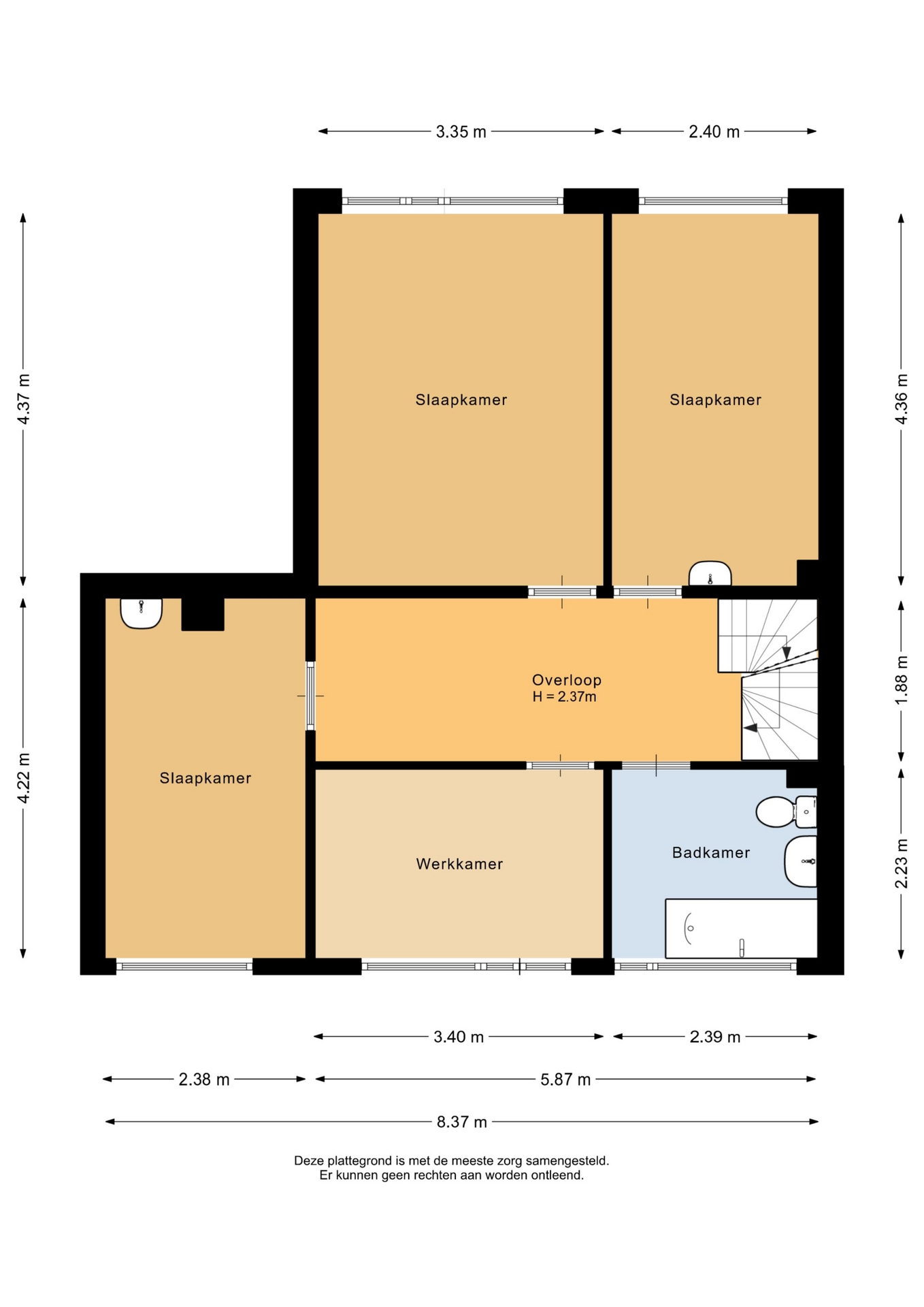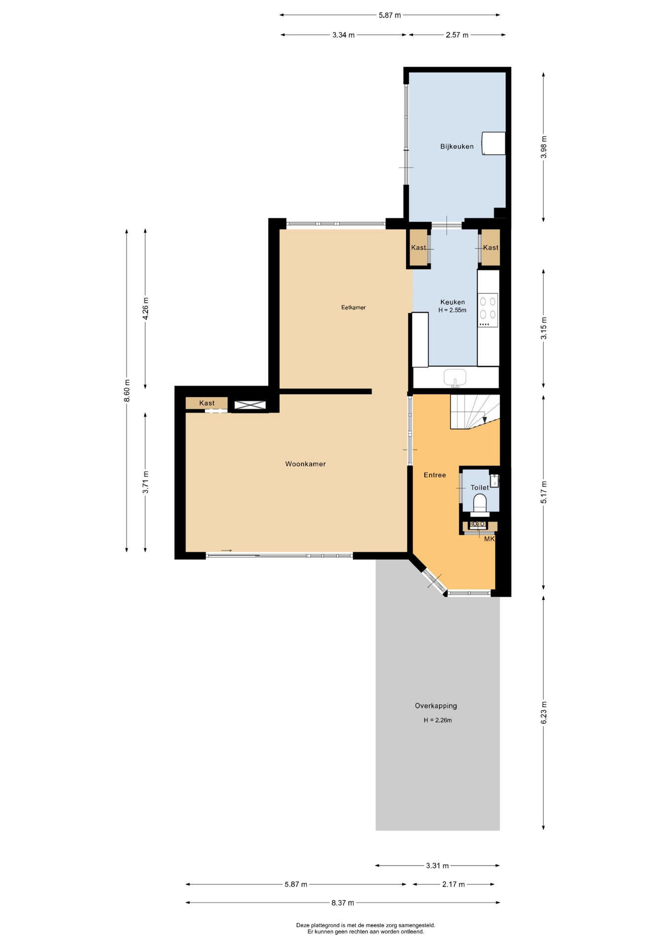 “Deze informatie is door ons met de nodige zorgvuldigheid samengesteld. Onzerzijds wordt echter geen enkele aansprakelijkheid aanvaard voor enige onvolledigheid, onjuistheid of anderszins, dan wel de gevolgen daarvan. Alle opgegeven maten en oppervlakten zijn indicatief.”