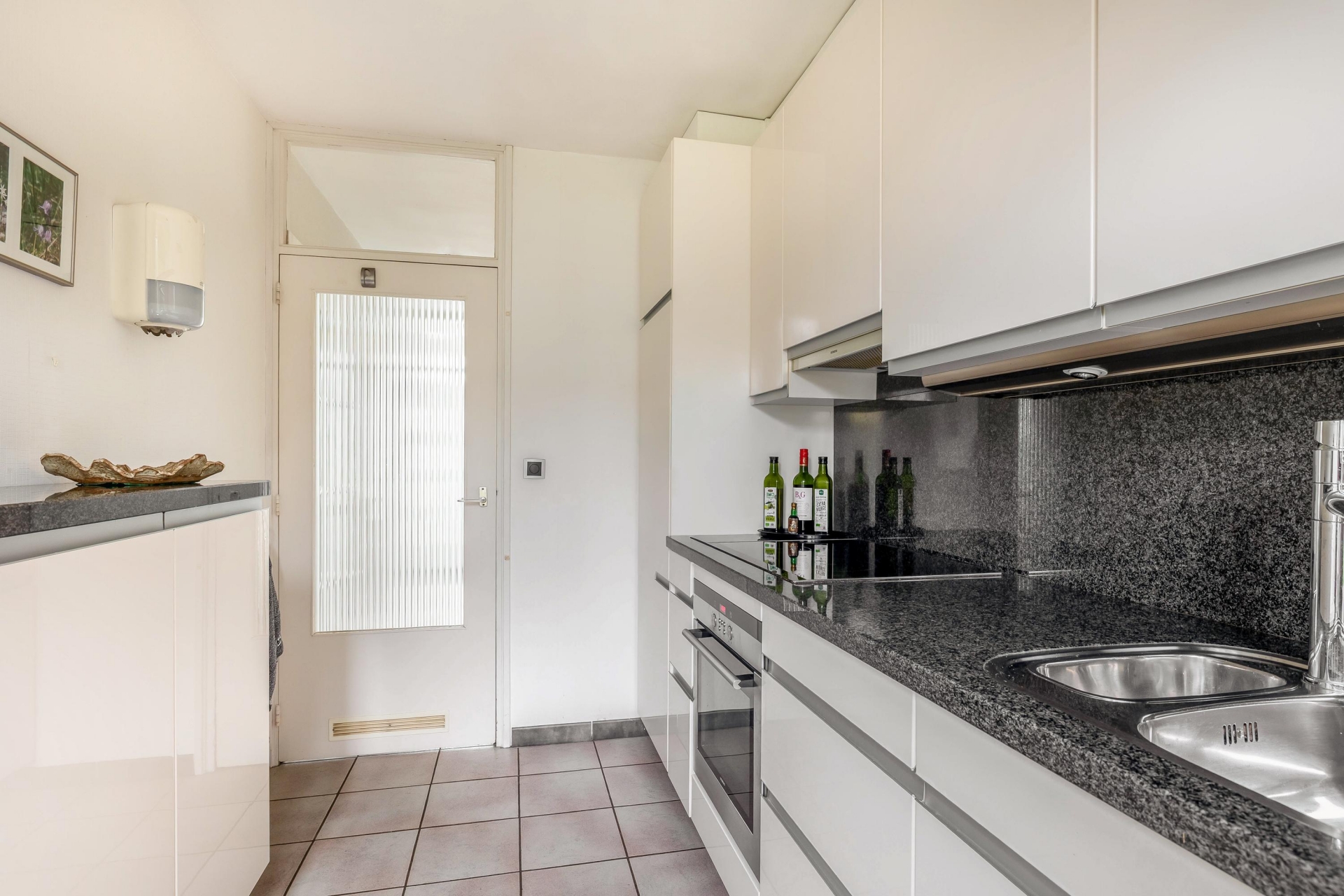 De dichte keuken, bereikbaar vanuit de gang, ligt aan de achterzijde van de woning. De keuken beschikt over de benodigde keuken apparatuur voorzien van o.a een nieuwe Liebher inbouwkoelkast.