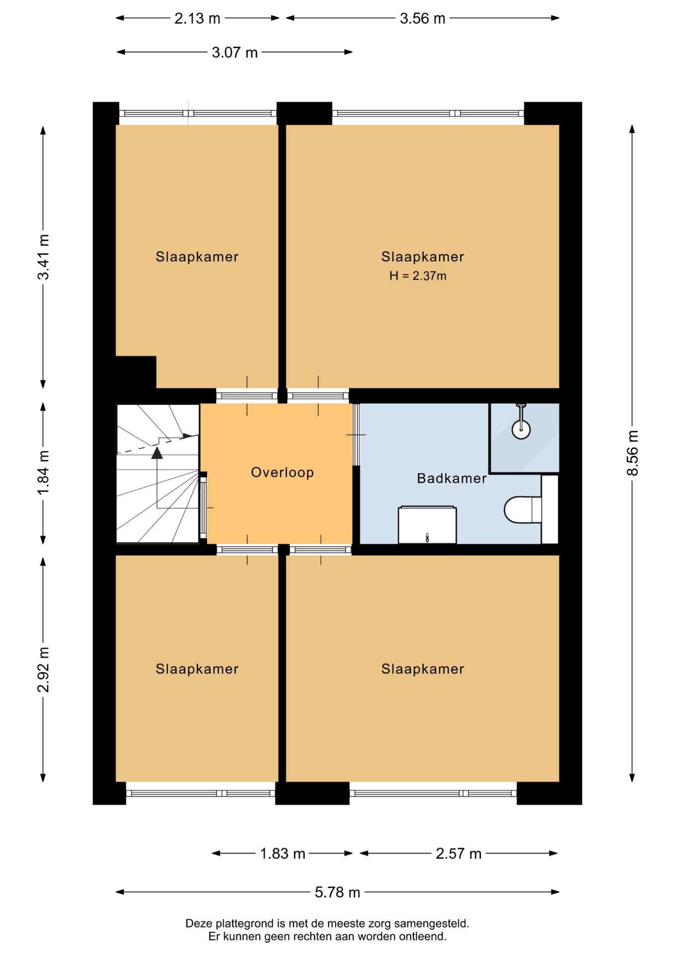 “Deze informatie is door ons met de nodige zorgvuldigheid samengesteld. Onzerzijds wordt echter geen enkele aansprakelijkheid aanvaard voor enige onvolledigheid, onjuistheid of anderszins, dan wel de gevolgen daarvan. Alle opgegeven maten en oppervlakten zijn indicatief.”