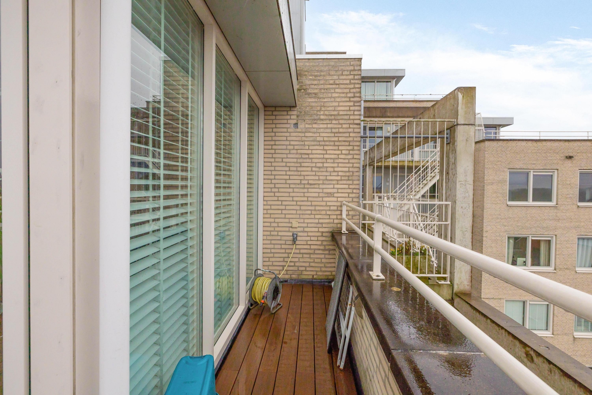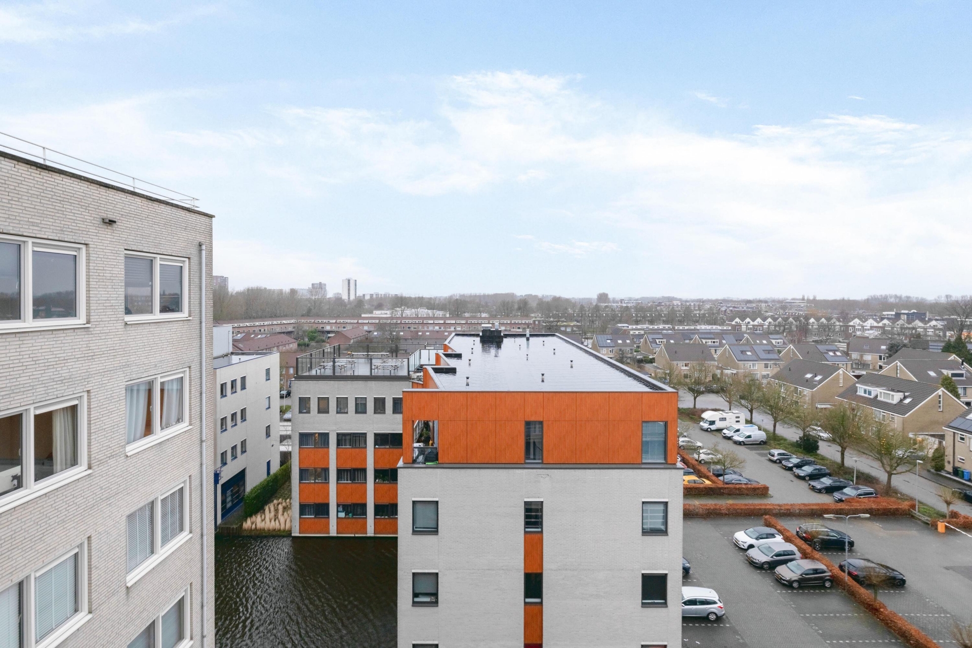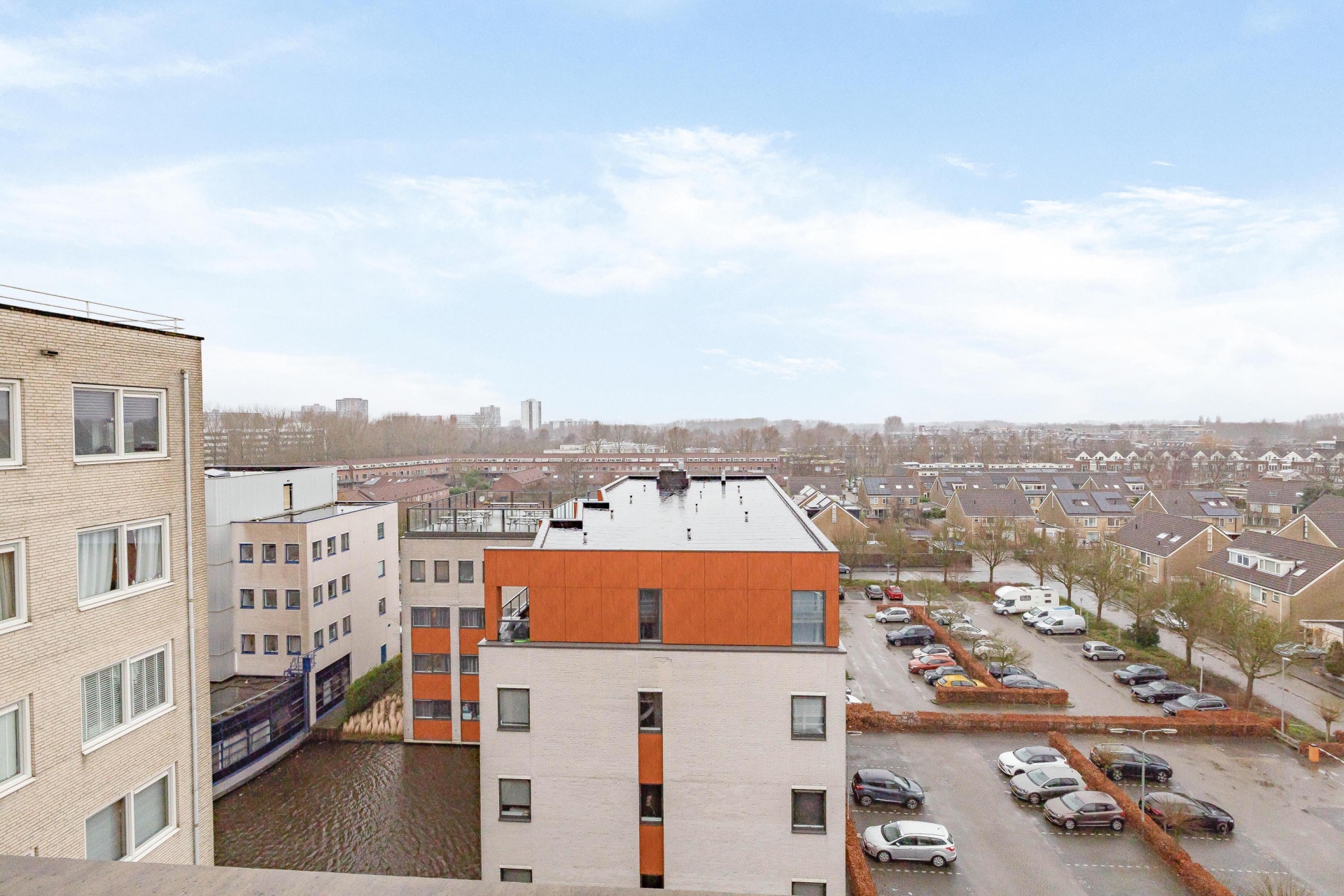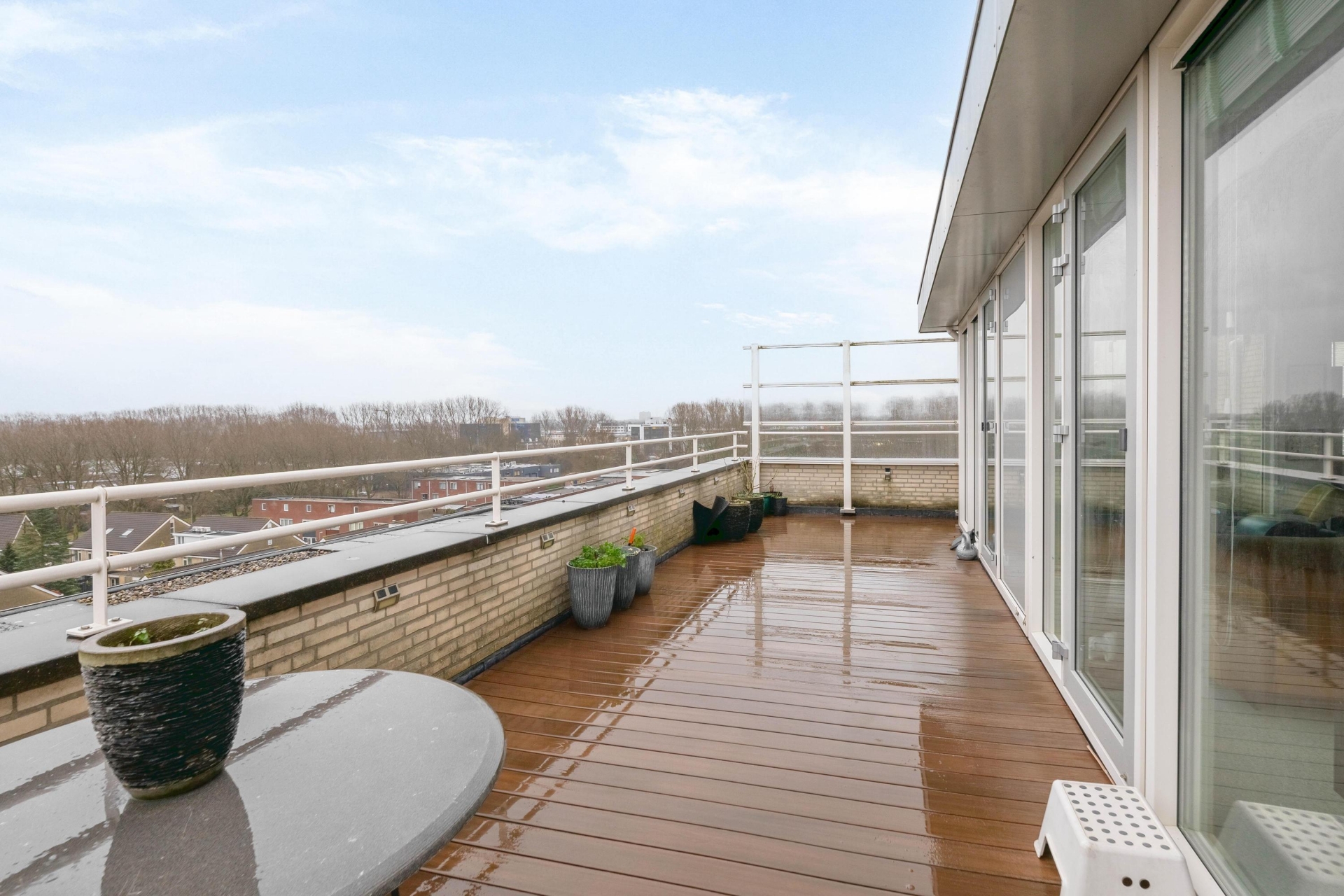 Het terras maakt het plaatje compleet. Gegarandeerd dat je hier gaat genieten van het geweldige panoramische uitzicht vanaf de 7e verdieping. Het terras heeft een oppervlakte van 38 m².  Hierdoor biedt het tal van mogelijkheden om in de zon of schaduw te zitten. Het hele terras beschikt over houten vlonderplanken en verder is er ook nog een buitenkraan aanwezig. Het complex heeft verder een rustige locatie in de kindvriendelijke woonwijk Zevenkamp. Het is gelegen aan een waterpartij en biedt voldoende privacy.