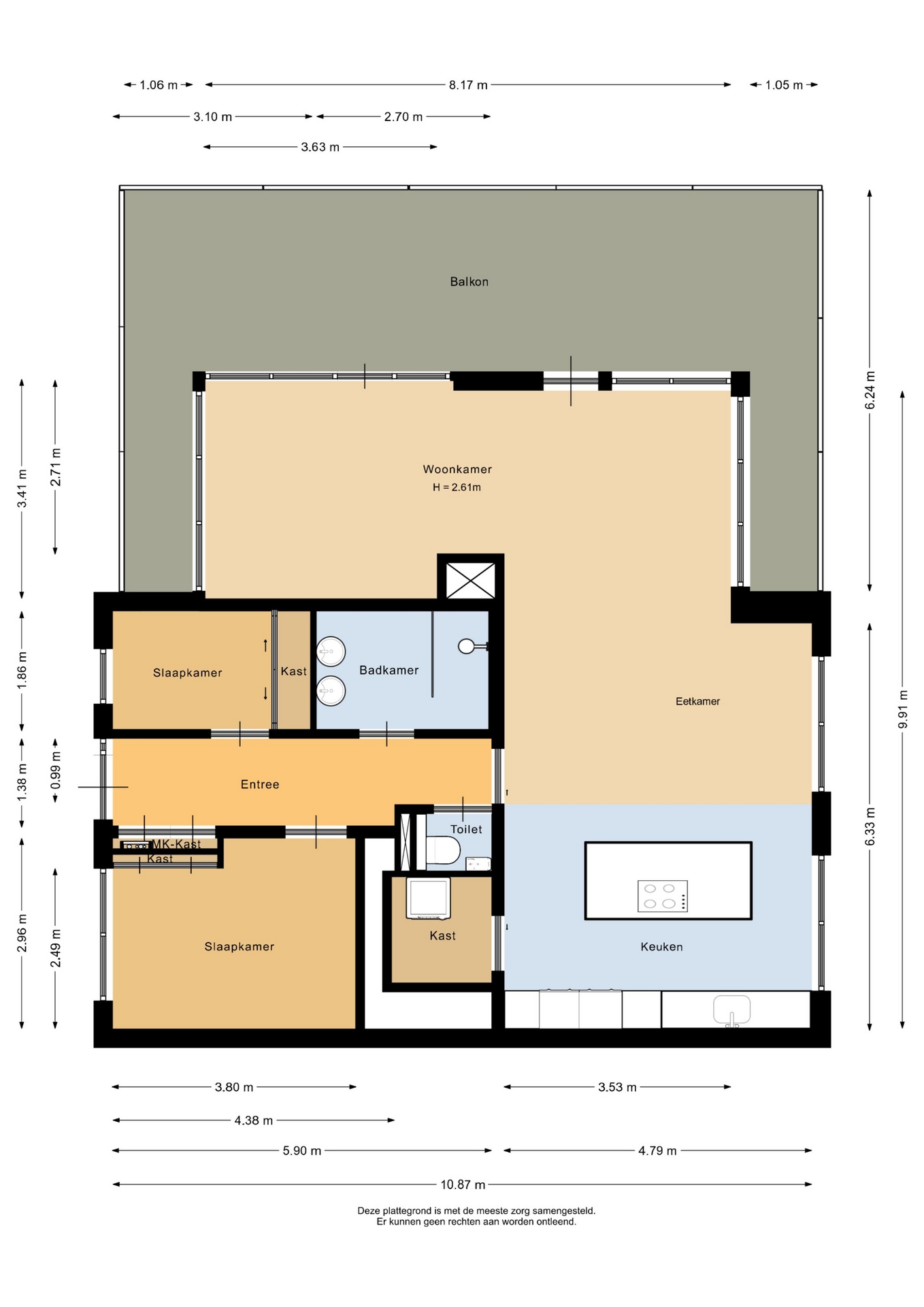 “Deze informatie is door ons met de nodige zorgvuldigheid samengesteld. Onzerzijds wordt echter geen enkele aansprakelijkheid aanvaard voor enige onvolledigheid, onjuistheid of anderszins, dan wel de gevolgen daarvan. Alle opgegeven maten en oppervlakten zijn indicatief.”