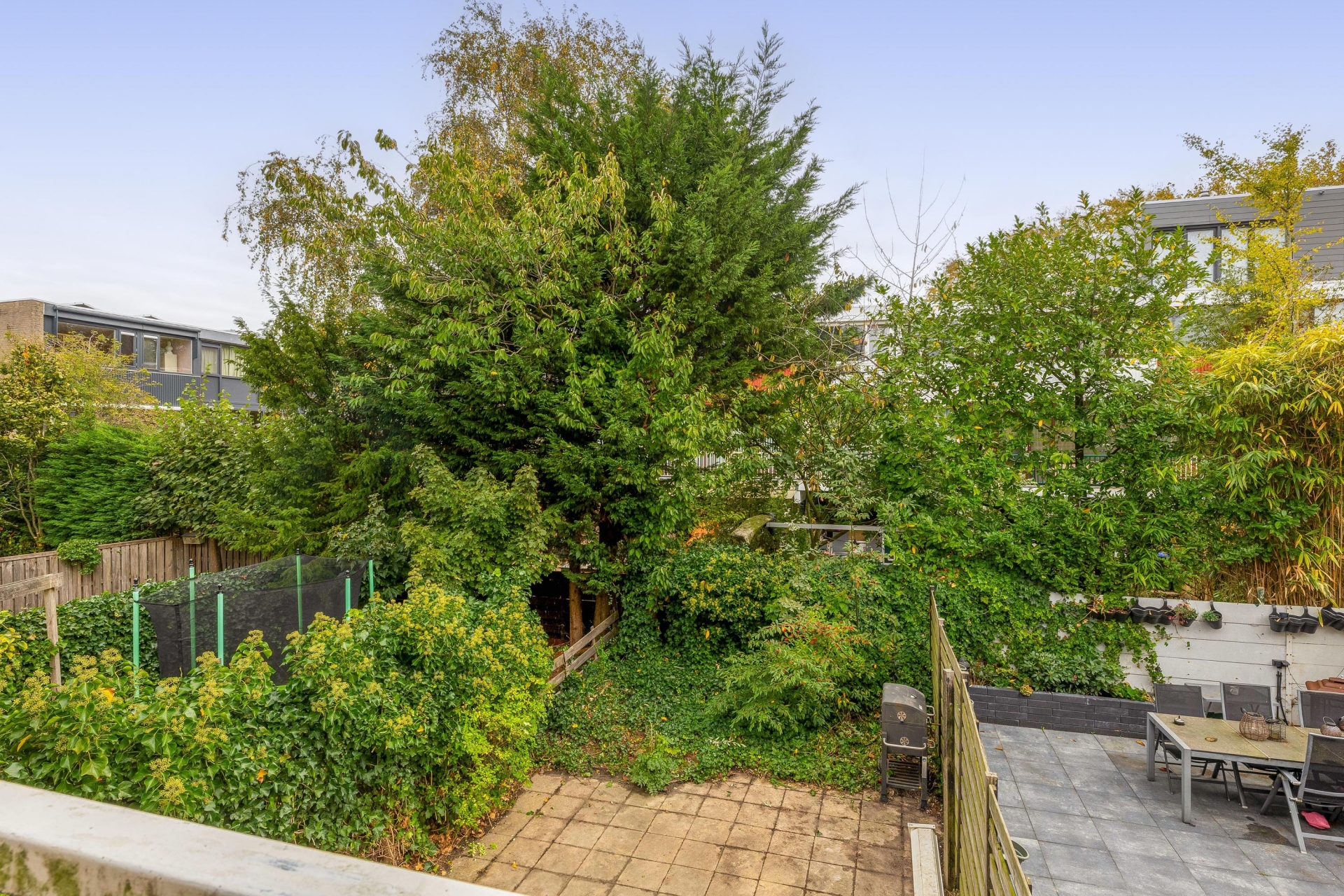 De achtertuin is misschien wel één van de grootste pluspunten van deze woning. Deze ligt op het zuidoosten en is diep genoeg om de hele dag van de zon te kunnen genieten. De tuin biedt volop privacy dankzij het vele groen rondom. Een heerlijke plek voor een barbecue, een loungeset of speelruimte voor de kinderen.