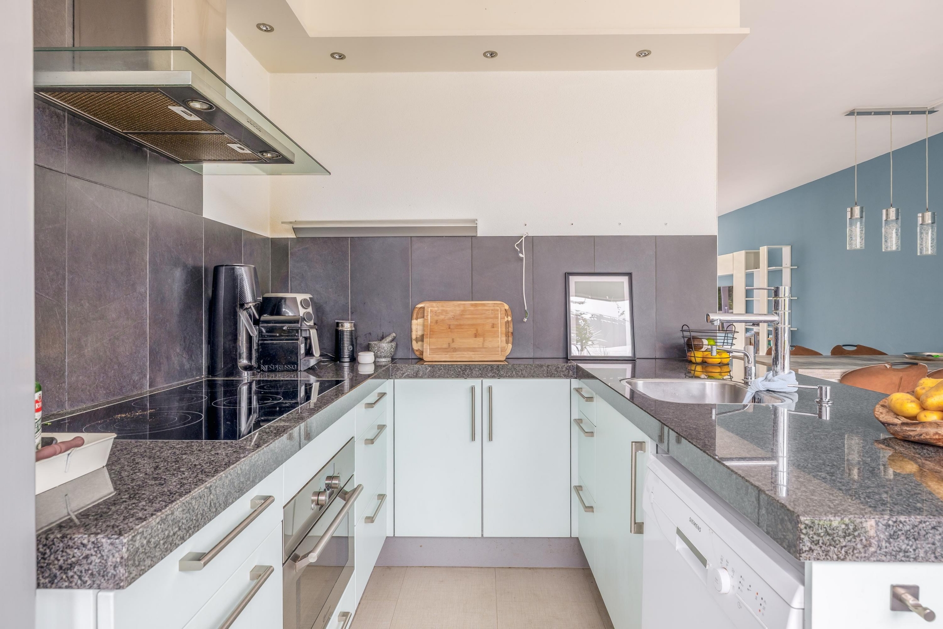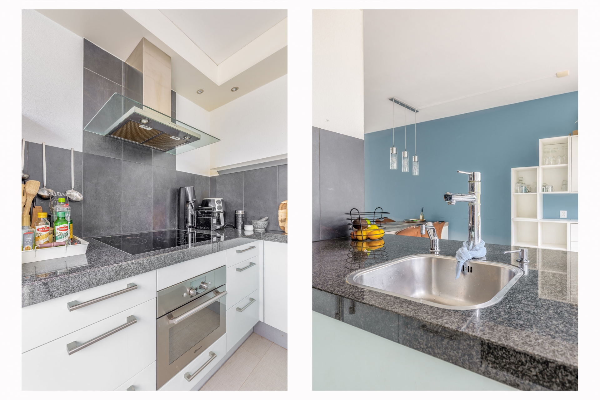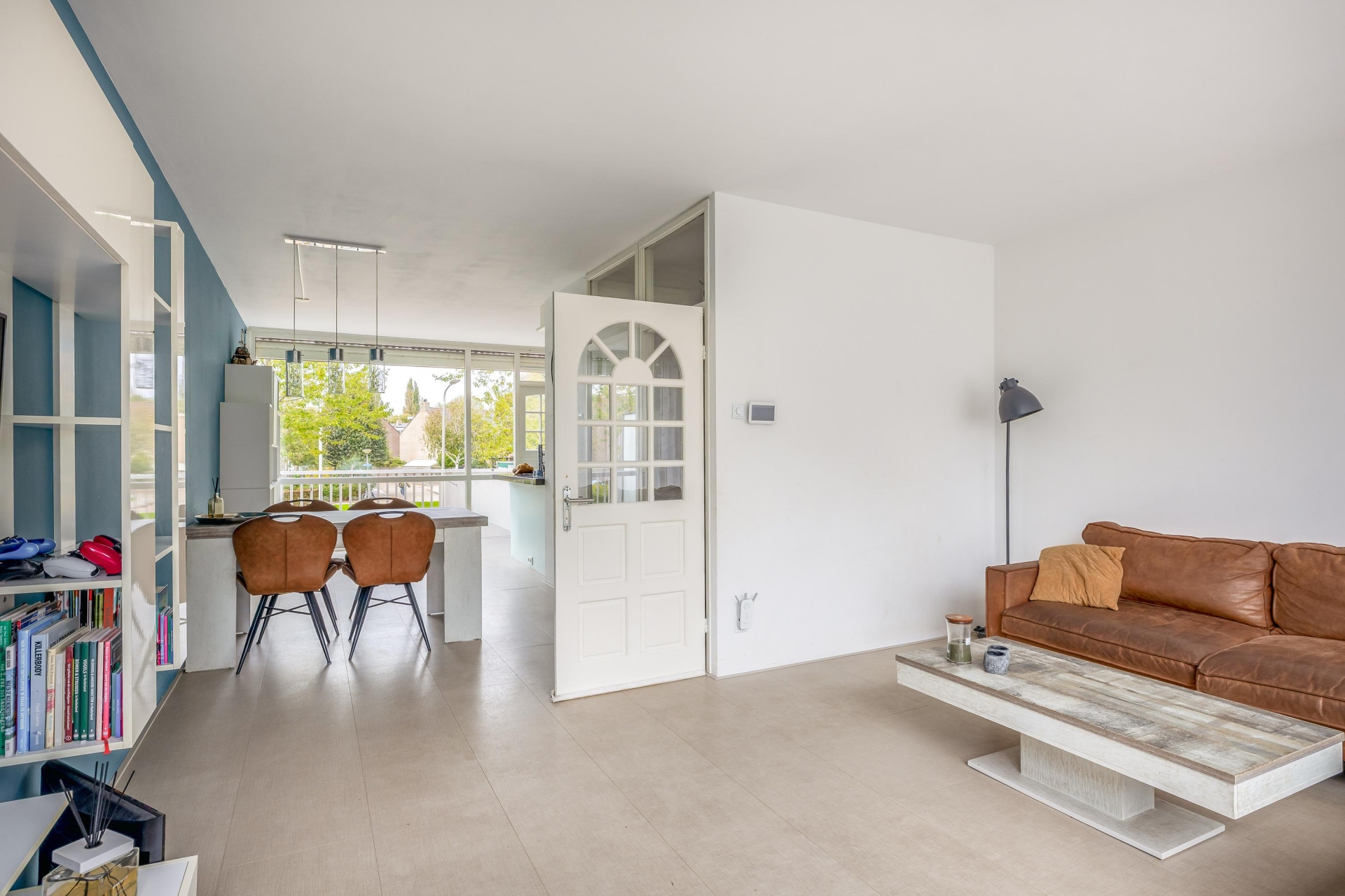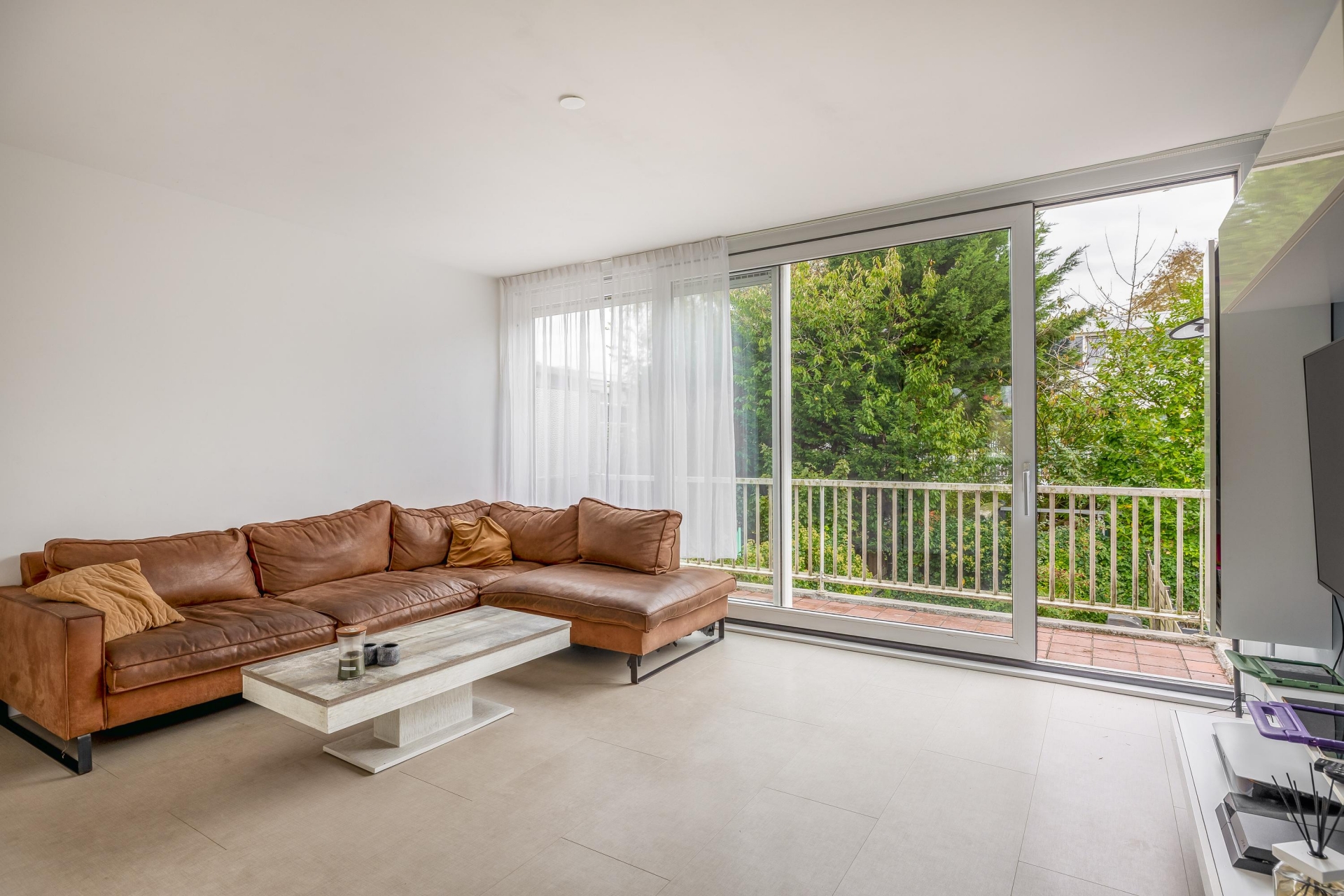 De woonverdieping is ruim opgezet en straalt dankzij de grote raampartijen een fijne lichtheid uit. De open keuken is strak en functioneel ingericht met een modern werkblad, inbouwapparatuur en genoeg kastruimte. Vanuit de keuken kijk je uit op het eetgedeelte, dat naadloos overloopt in de zithoek aan de achterzijde. De combinatie van openheid en veel licht maakt dit echt het leefhart van het huis.