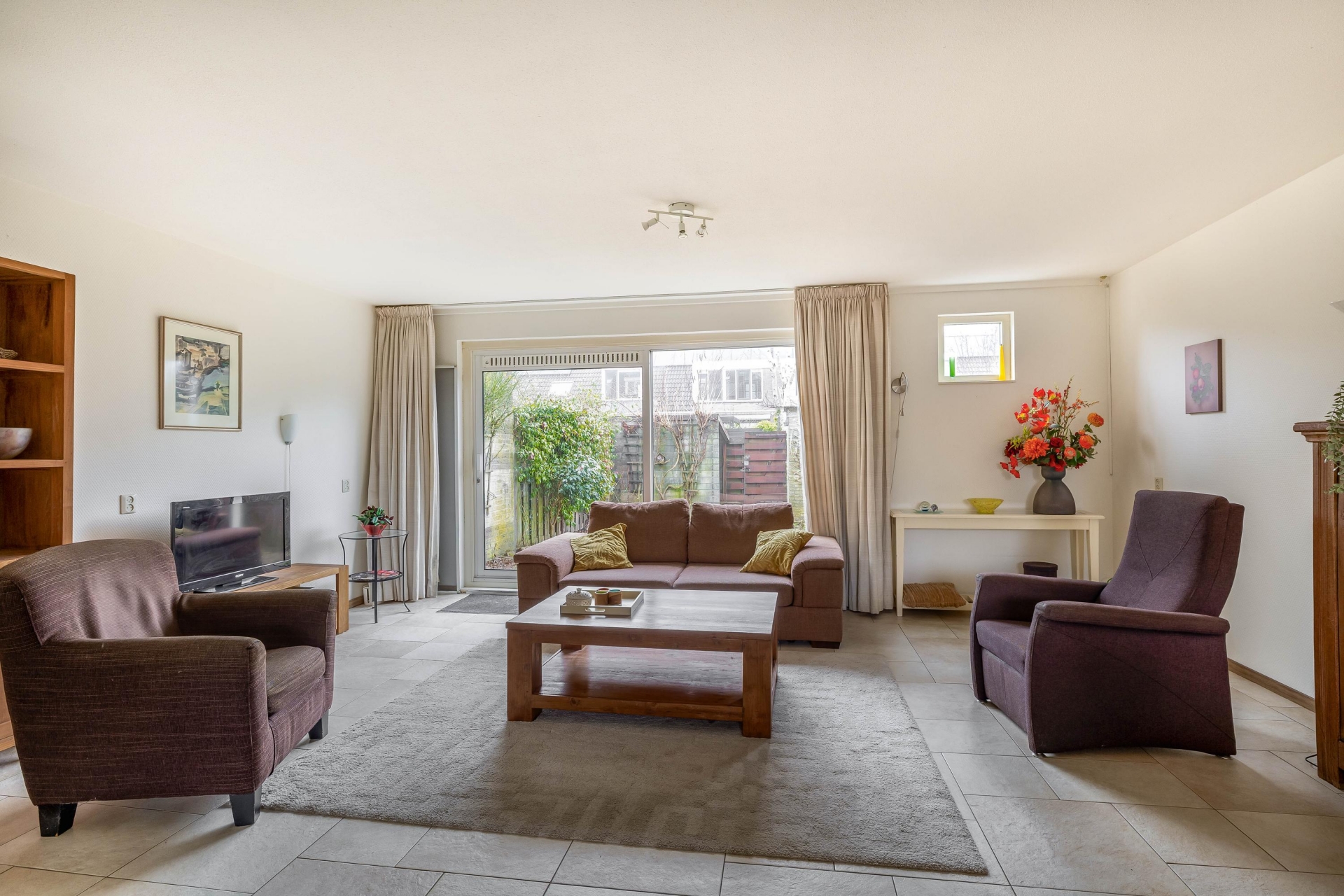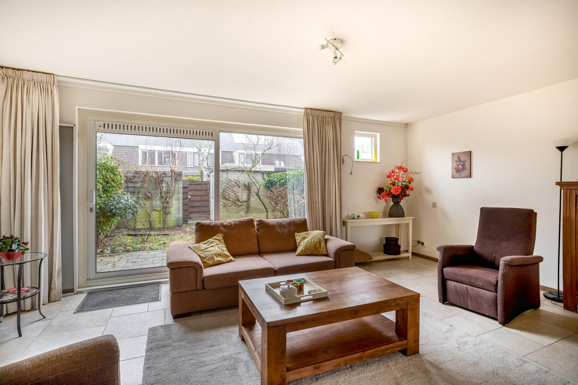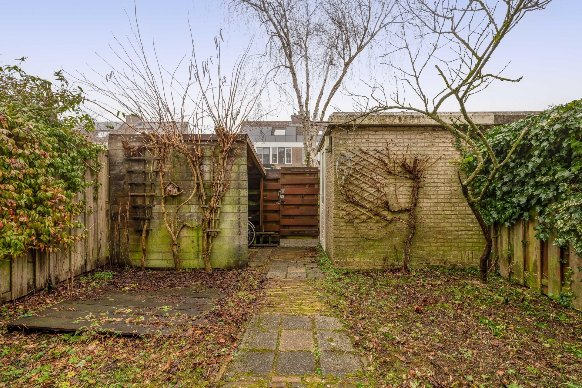 Aan de achterzijde van de woning is via een schuifpui toegang tot de achtertuin met een stenen berging.