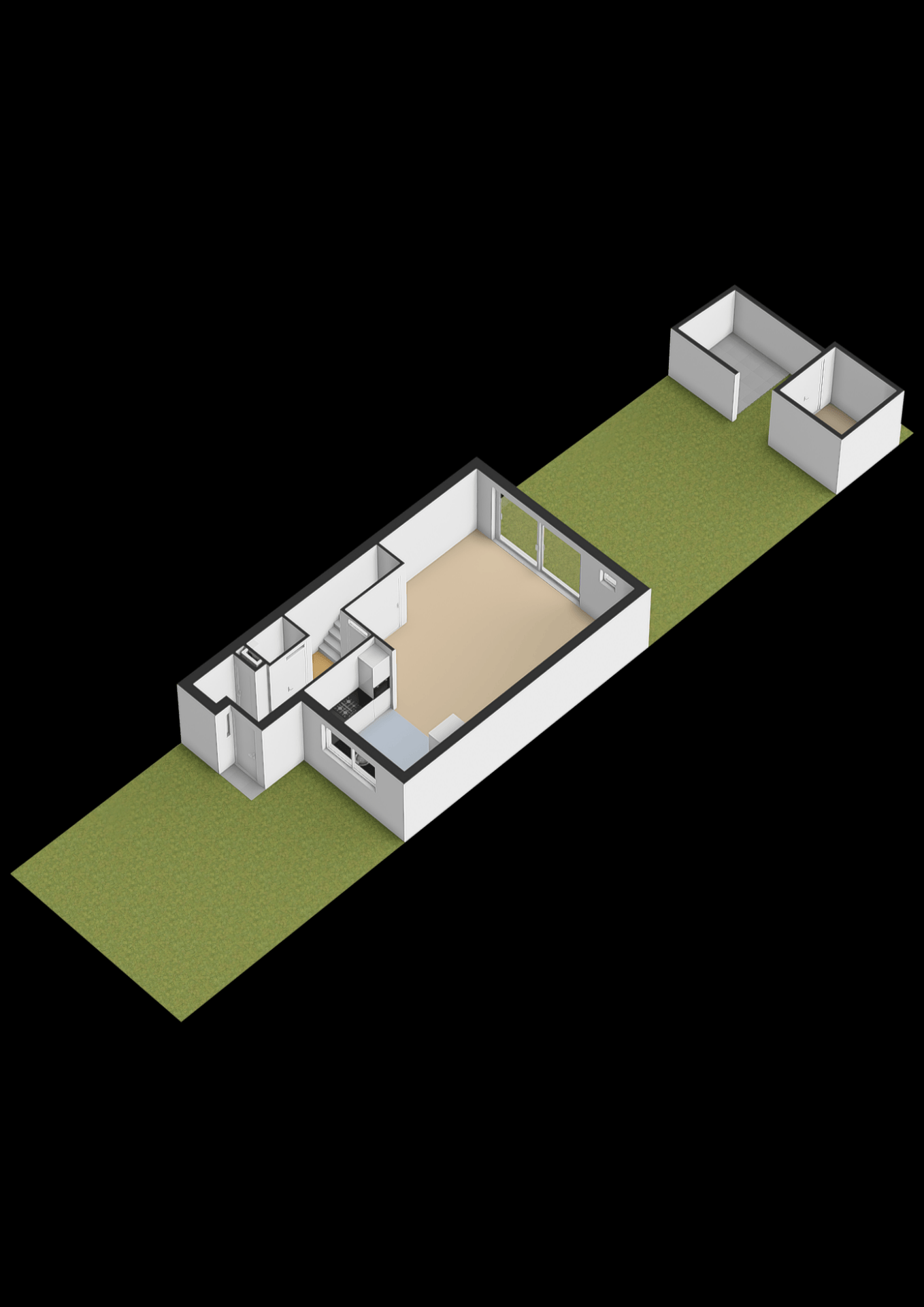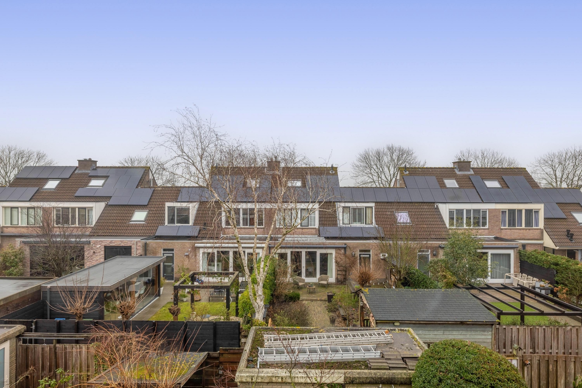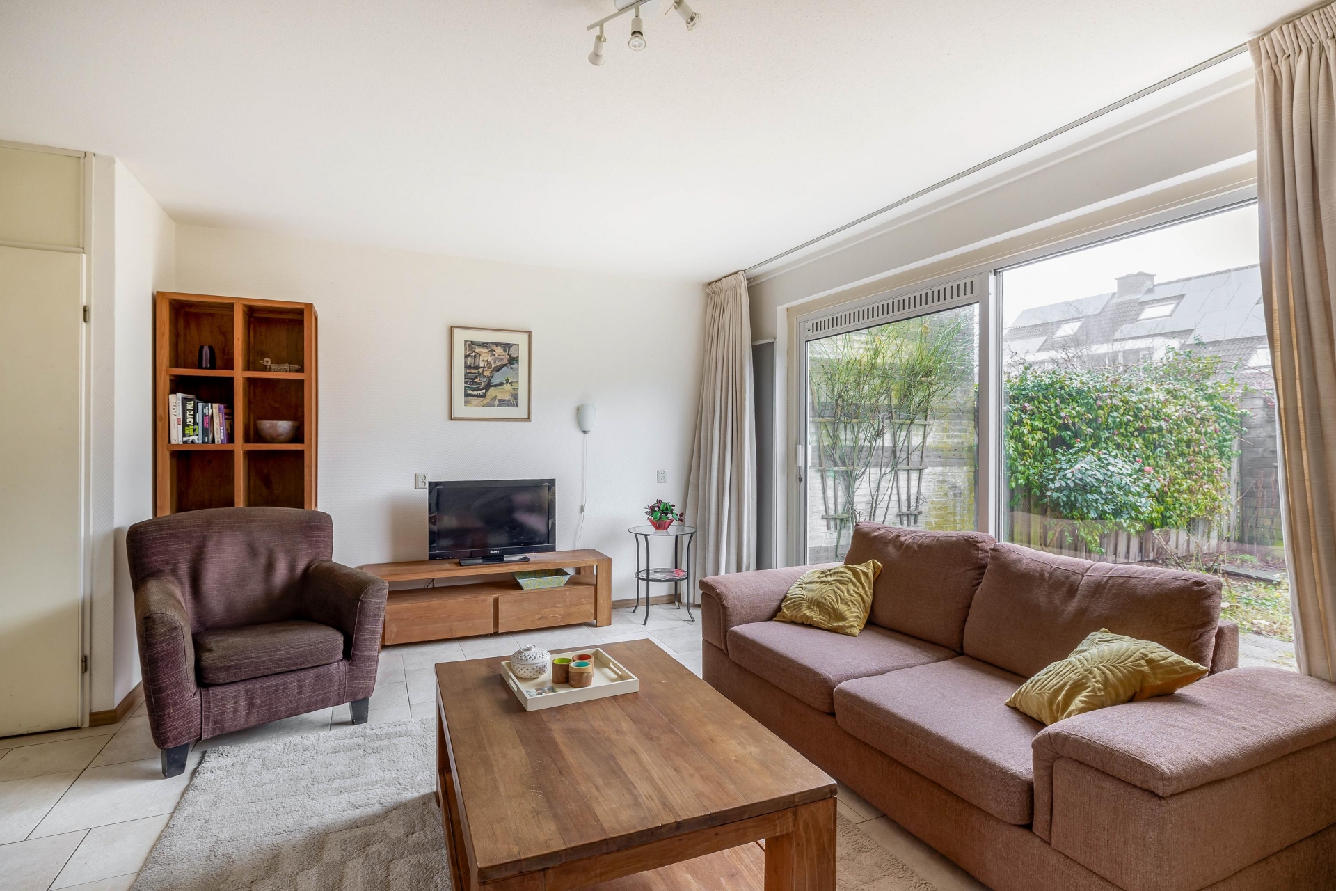 Aan de achterzijde van de woning is via een schuifpui toegang tot de achtertuin met een stenen berging.