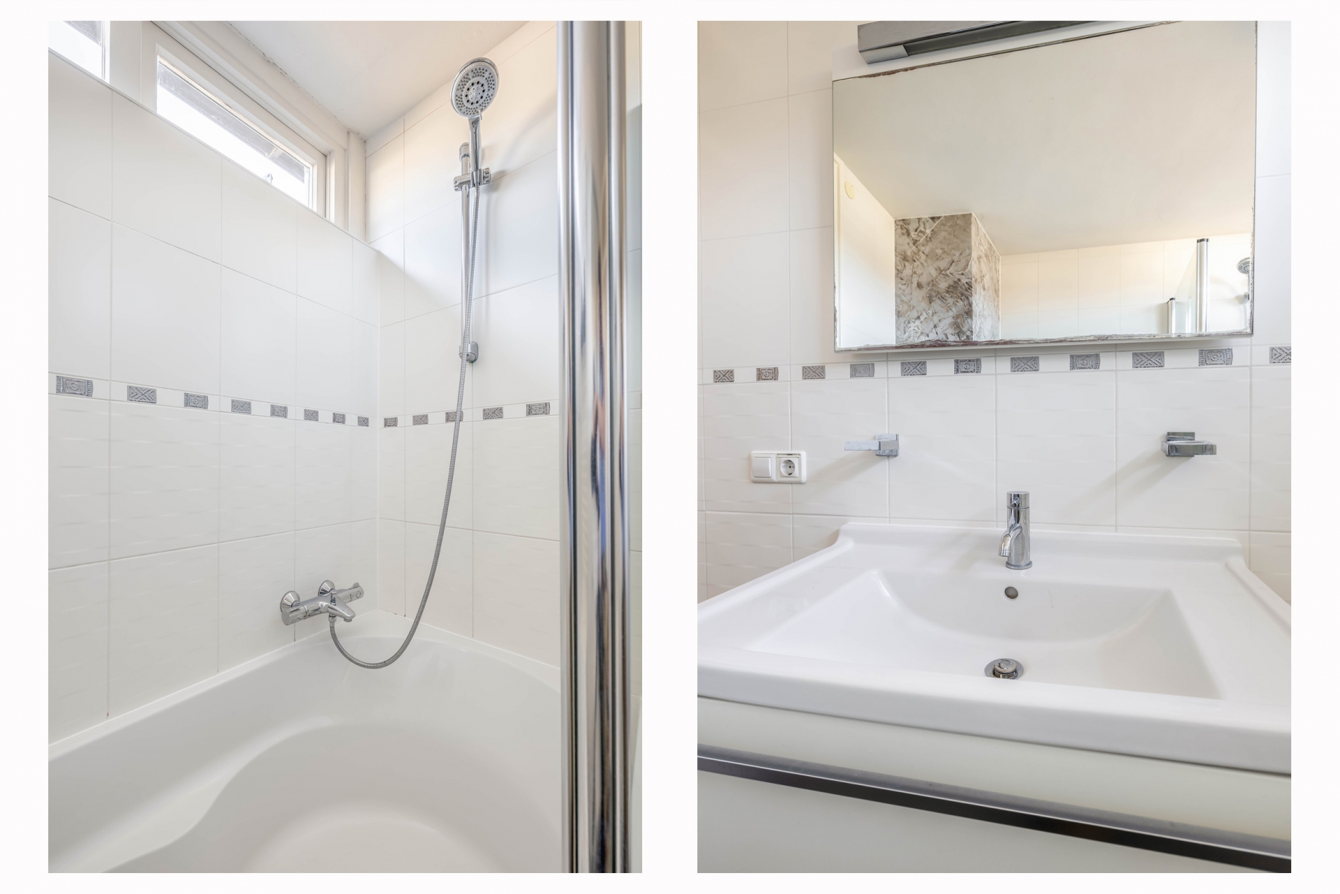 De badkamer is vernieuwd in 2017 en heeft een complete en verzorgde indeling. Hier vind je een ligbad, een toilet en een wastafelmeubel. De neutrale afwerking zorgt ervoor dat de ruimte tijdloos oogt en gemakkelijk naar eigen smaak aan te vullen is.