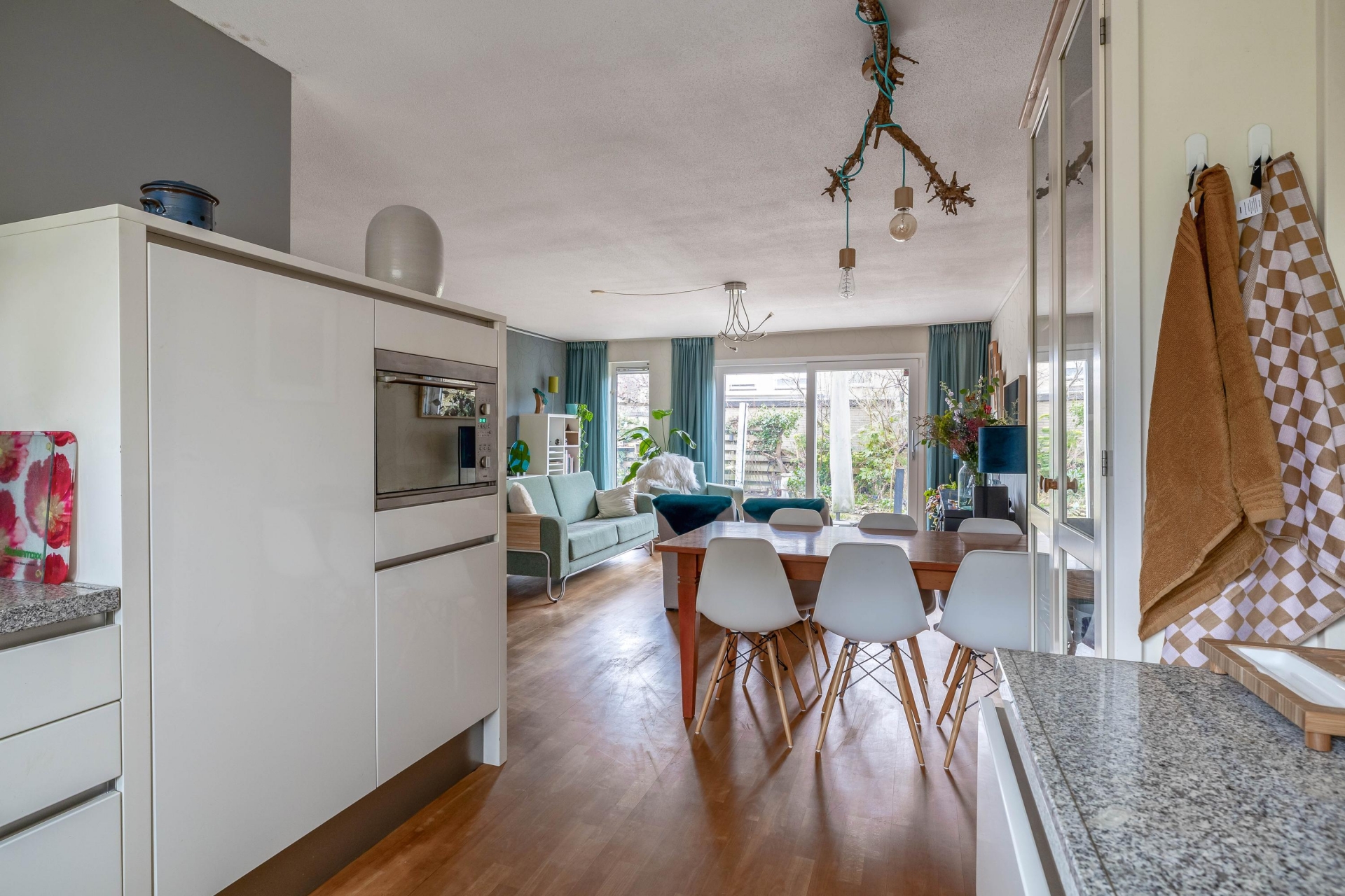Via de entree komt u in de hal met toilet, meterkast en trapopgang naar de eerste verdieping. Vanuit de hal betreedt u de ruime, tuingerichte woonkamer met grote raampartijen die zorgen voor veel lichtinval. Aan de voorzijde bevindt zich de open keuken in praktische L-opstelling, voorzien van diverse inbouwapparatuur: een vaatwasser, 5-pits gaskookplaat, combi-oven en koelkast. De gehele begane grond is afgewerkt met een fraaie parketvloer.