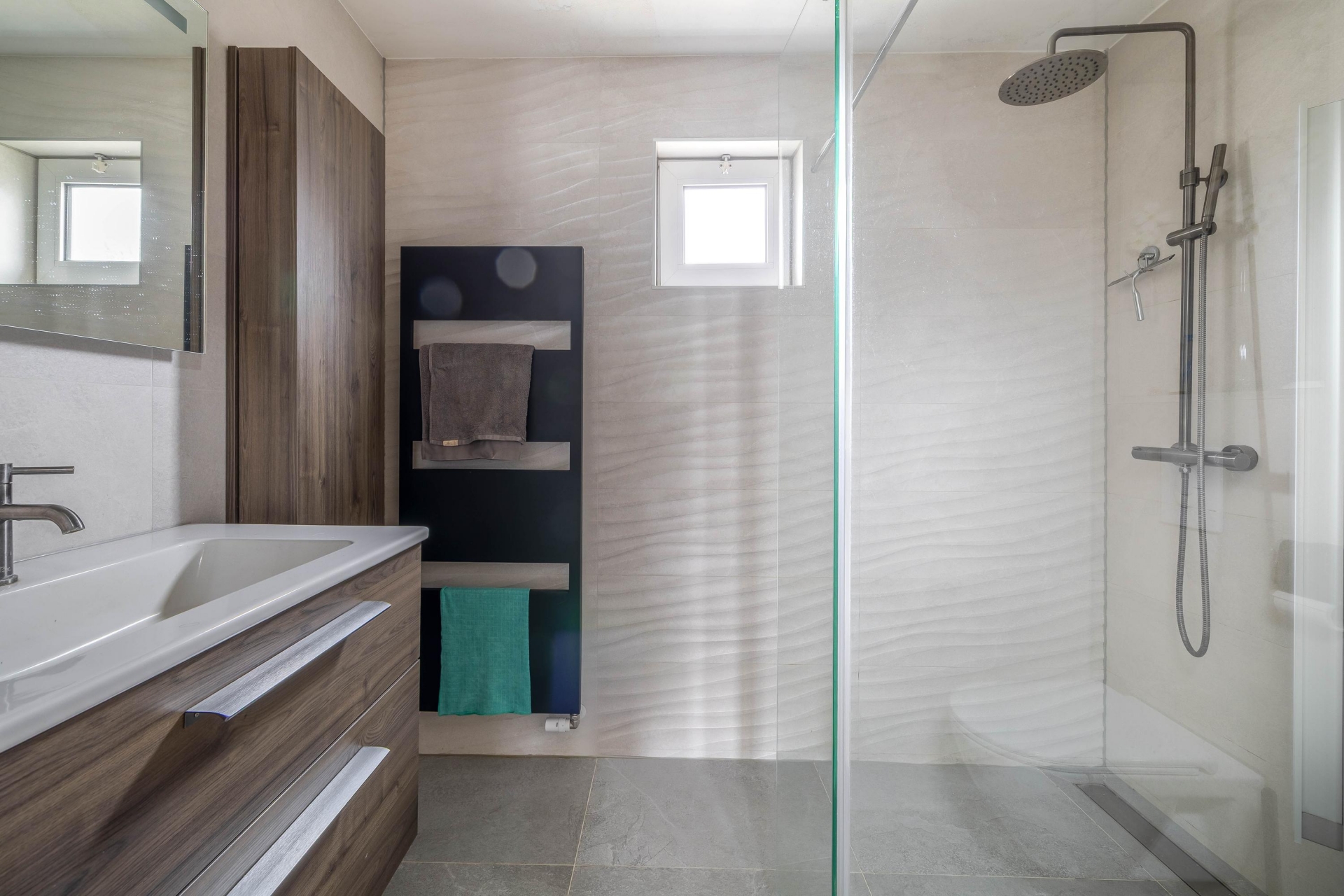 Op deze verdieping bevinden zich drie slaapkamers en de badkamer. Aan de voorzijde treft u een ruime slaapkamer en de badkamer, welke is uitgerust met een inloopdouche, sunshower, tweede toilet en een wastafel met meubel. Aan de achterzijde liggen nog twee slaapkamers, waaronder de royale master bedroom. Boven de (voormalige) garage bevindt zich een vierde slaapkamer – een volwaardige extra kamer met diverse gebruiksmogelijkheden.