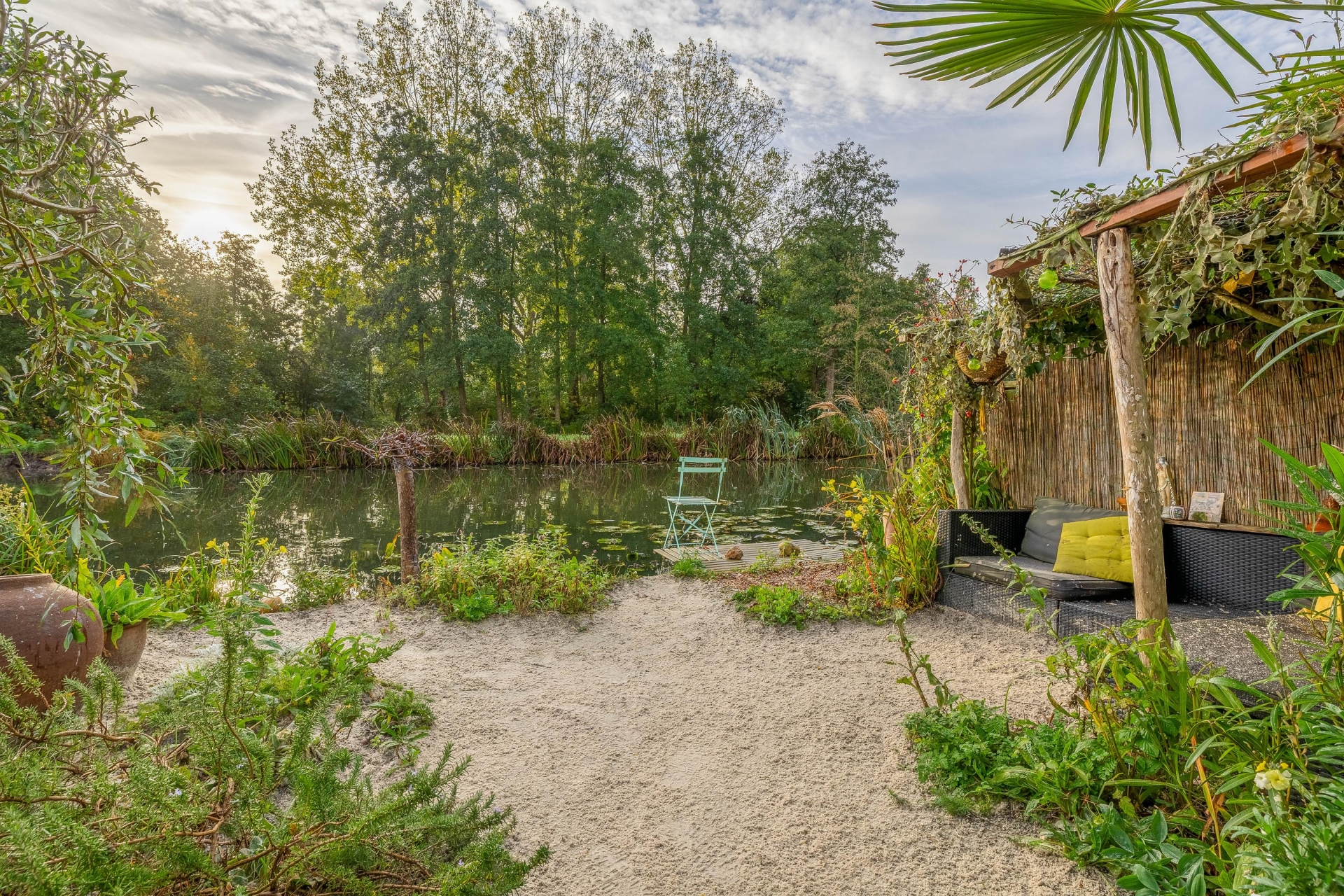 Het erf is middels een zelf aangebrachte loopbrug te betreden. Officieel heeft u ook recht van overpad via de buren. Via de groene voortuin is de woning te betreden.